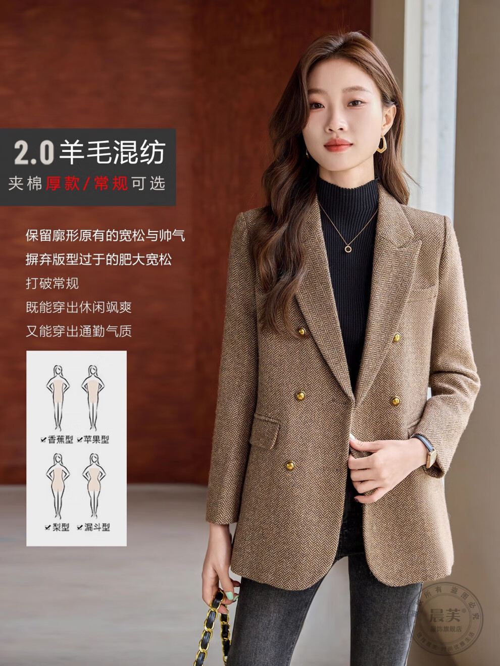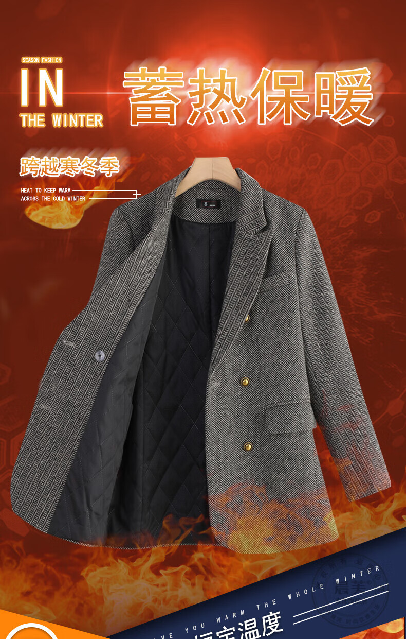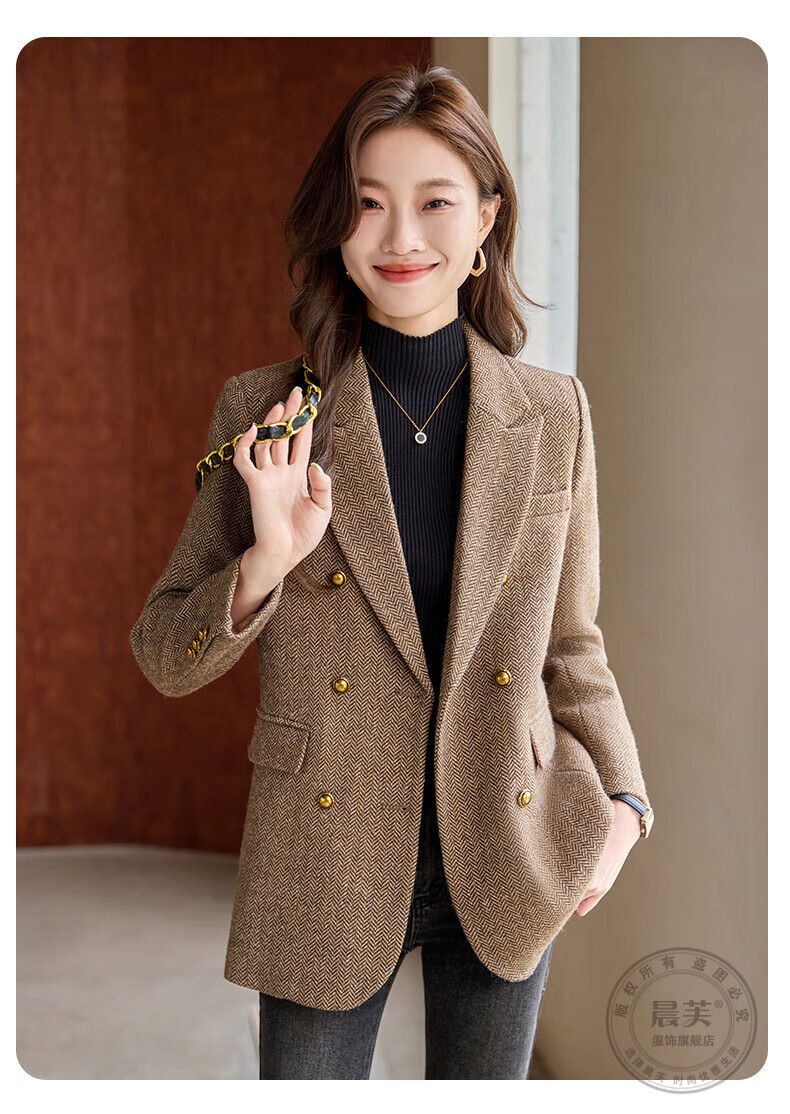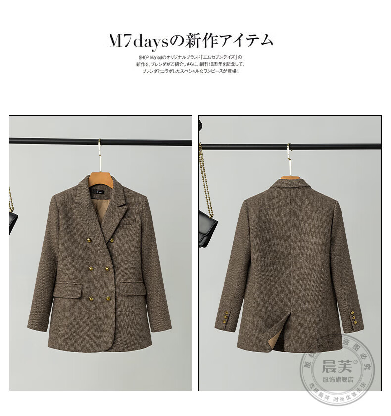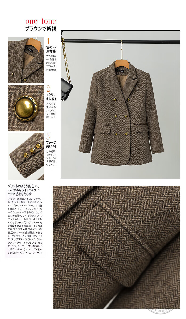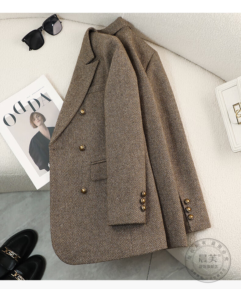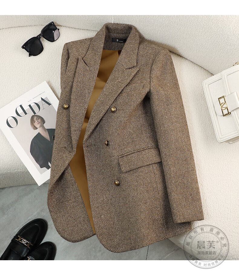 Chenfu woolen suit jacket for women spring and autumn new high-end wool small back slit casual fashion temperament suit regular style gray suit L recommended 105-114 Jin Jin equals 0.5 kg
