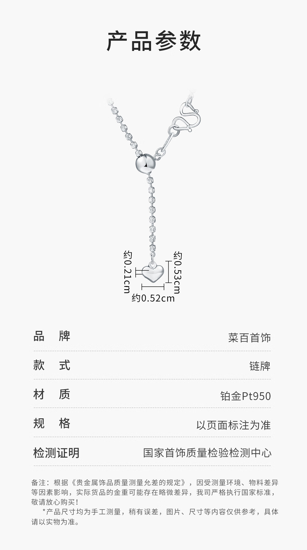 Cai Bai Jewelry Platinum Chain Tag PT950 Platinum Heart Tassel Clavicle Chain Chain Price Approximately 8.60 grams Approximately 45 cm