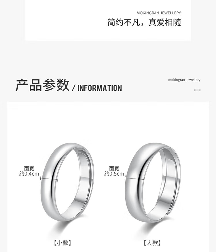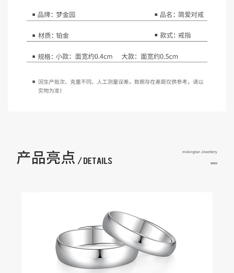 Mengjinyuan platinum ring PT950 platinum wide edge smooth plain ring couple wedding ring live/single piece