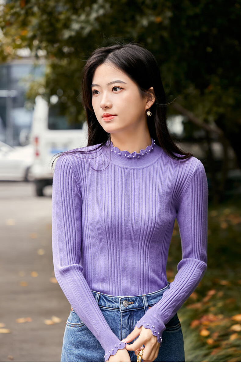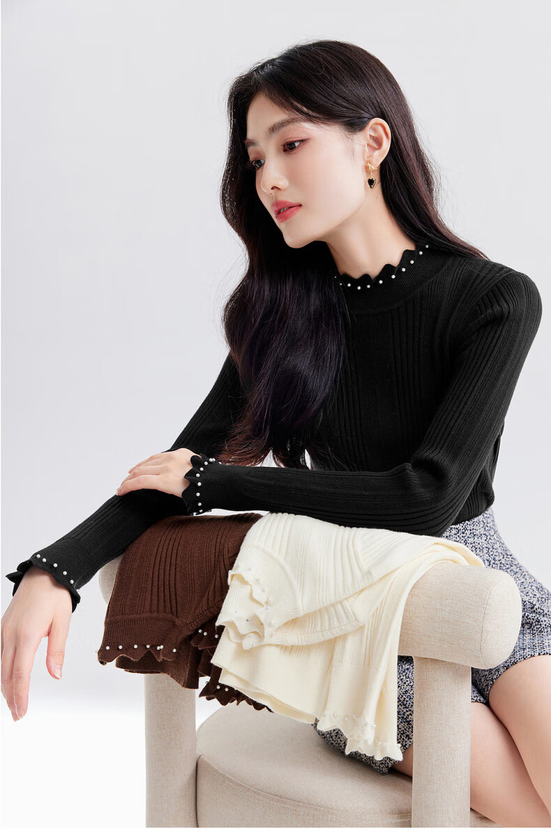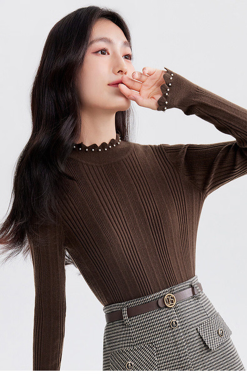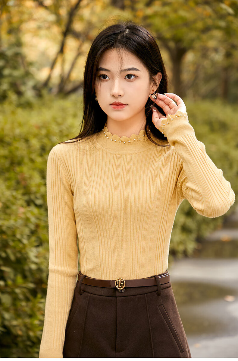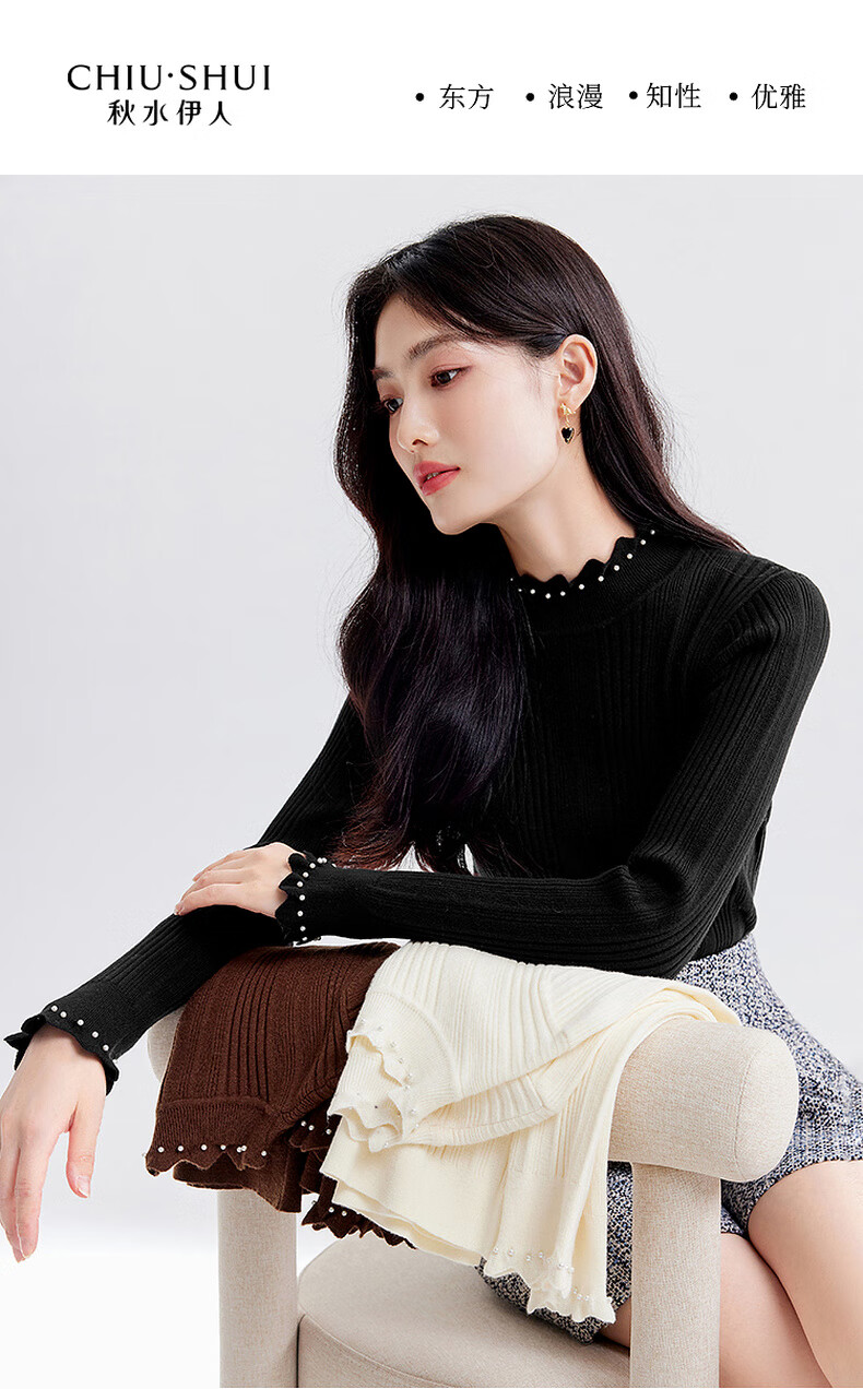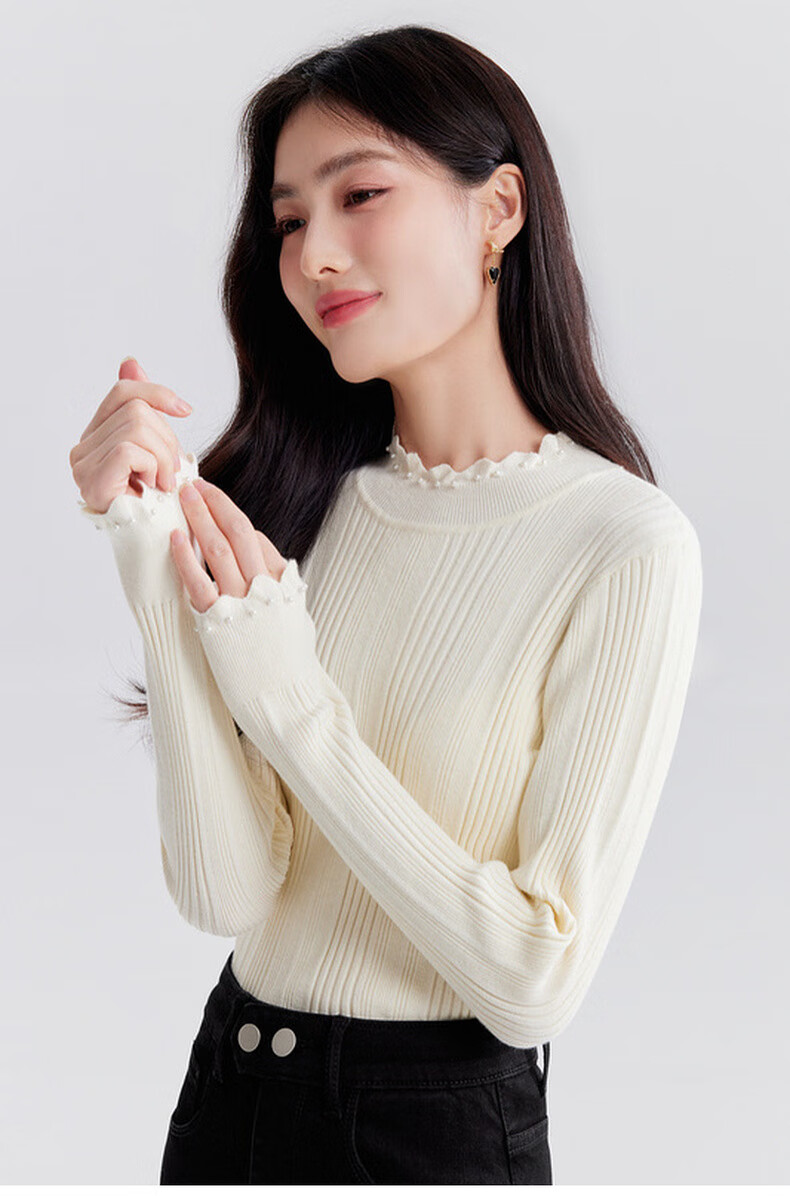 Qiushui Yiren's sweet and versatile wool sweater 2025 winter new style women's stretch top with temperament and inner sweater