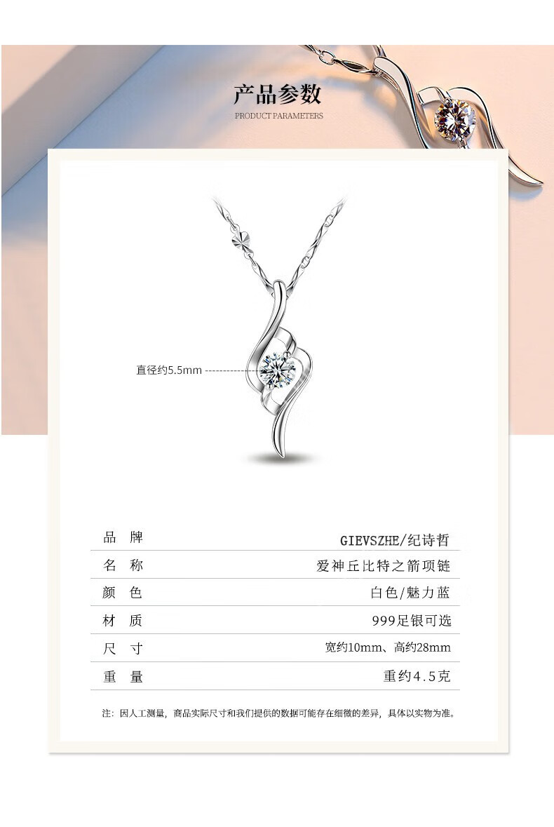 GIEVSZHE Cupid Necklace Women's Fashion Pendant Diamond Clavicle Chain for Girlfriend and Wife Birthday Gift Valentine's Day Cupid's Arrow Necklace + White Diamond Pendant