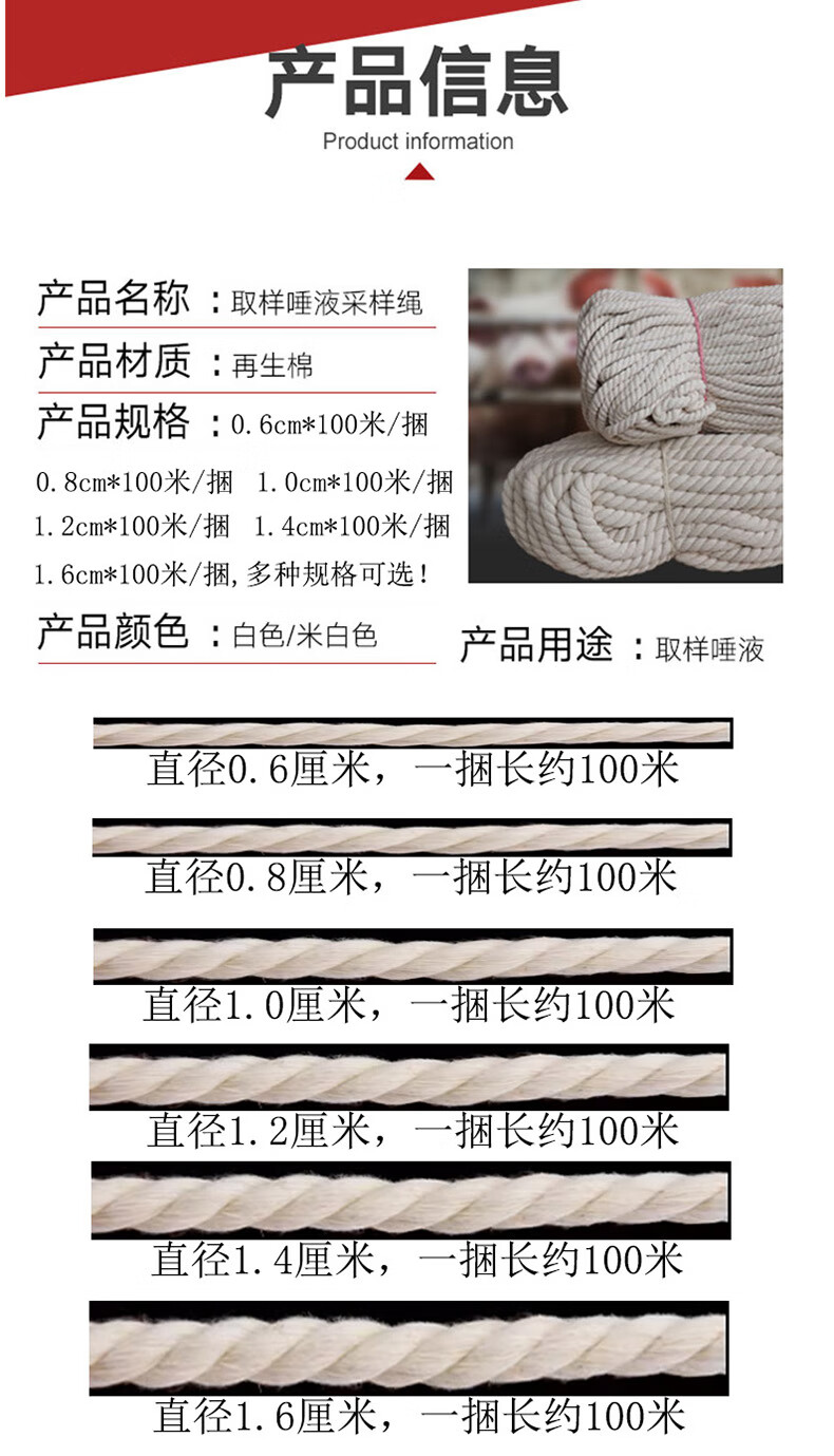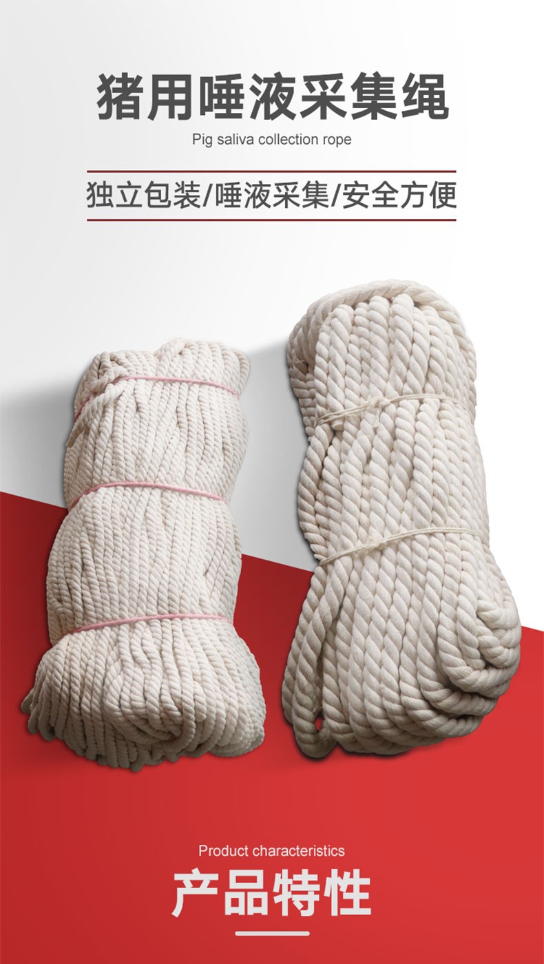 Mushide Saliva Collection Cotton Rope Sampling Rope for Pigs. Various Specifications. 100 meters long sampling rope for pigs. Disinfected and shipped. 0.6cm thick *100 meters/bundle.