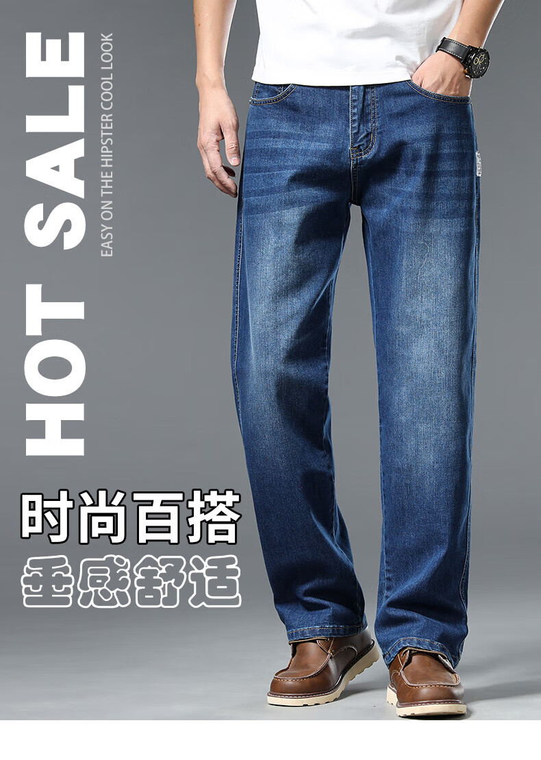 Джинсы Lomon мужские осенние повседневные свободные повседневные деловые универсальные эластичные прямые мужские длинные брюки синие 36