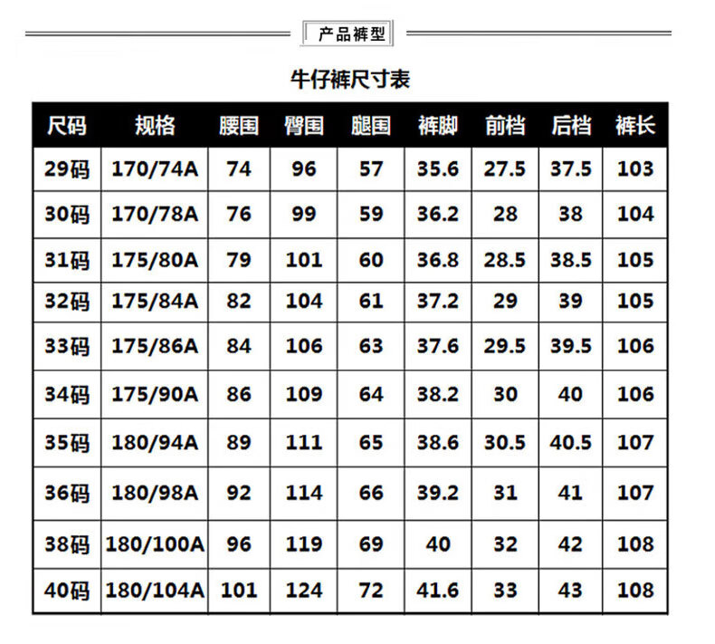 Outseam (cm) 99 cm 101.5 cm 104 cm 106.5 cm 109 cm