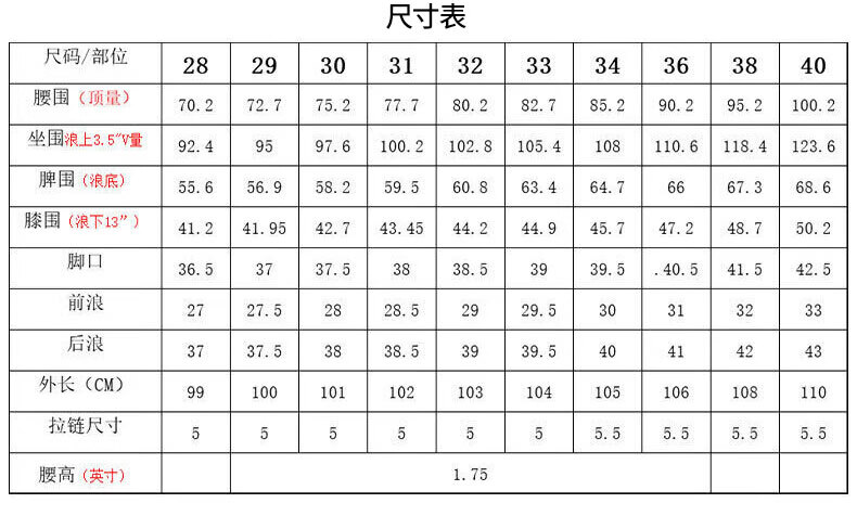 USA(inch) 28-30 30-32 32-34 34-38 38-42