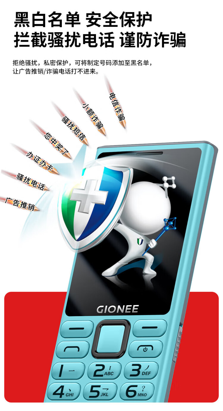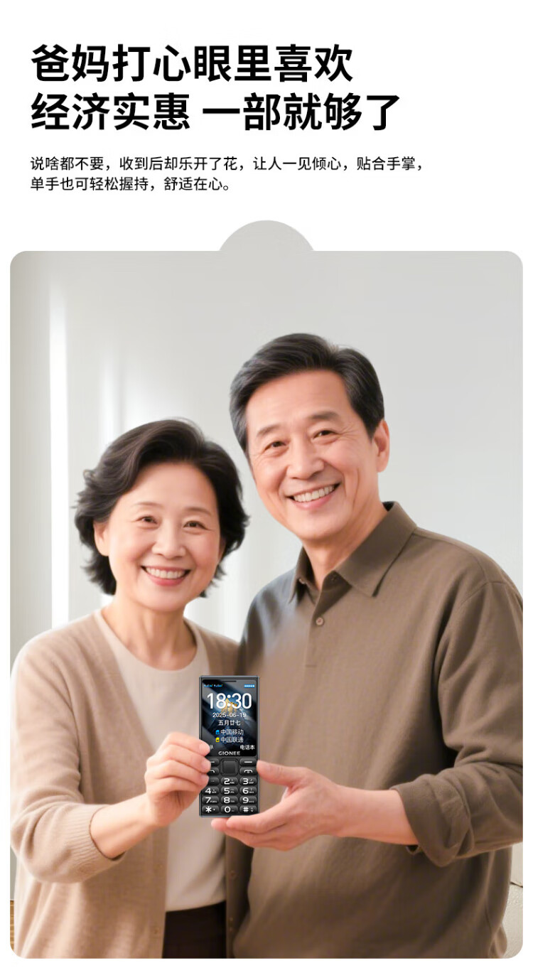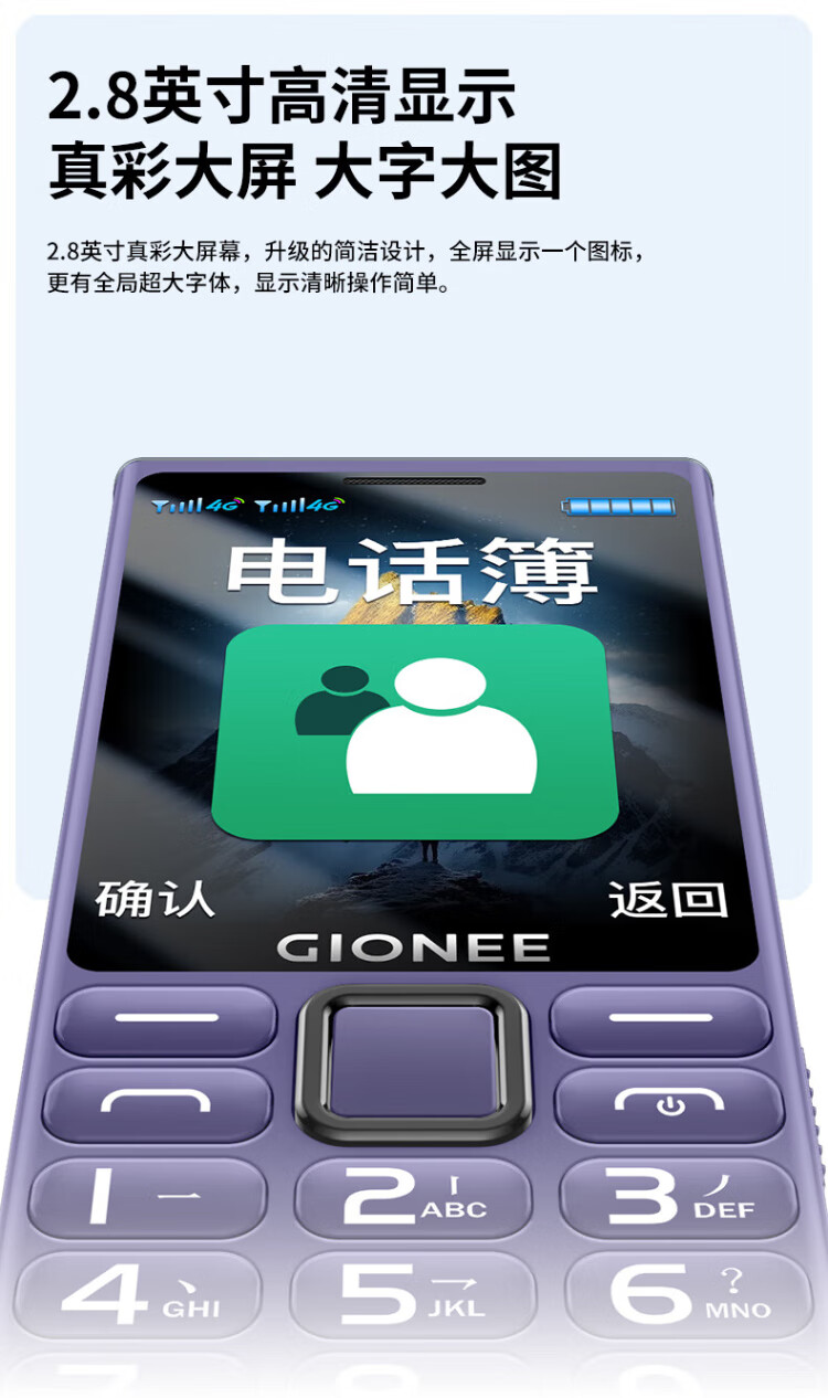 Gionee mobile phone for the elderly 4G full network for the elderly 2025 new upgraded version super long standby 2.8 large screen big characters loud big buttons special for the elderly and students G108 black