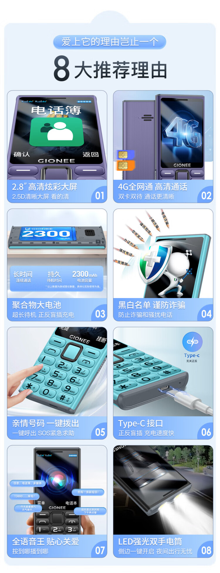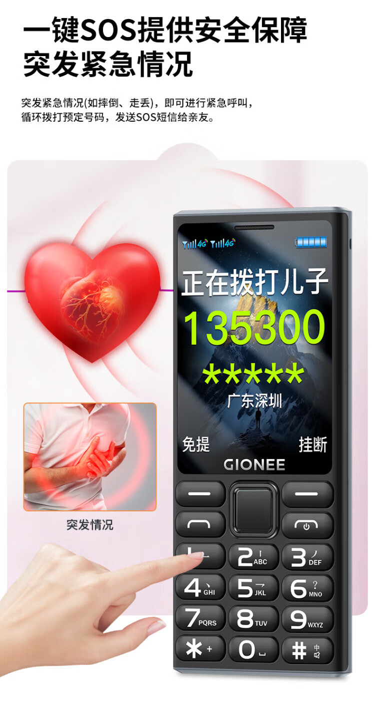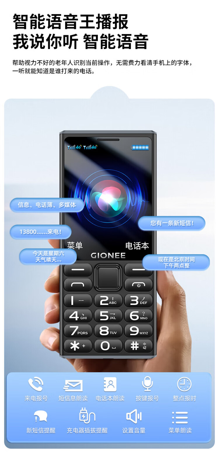 Gionee mobile phone for the elderly 4G full network for the elderly 2025 new upgraded version super long standby 2.8 large screen big characters loud big buttons special for the elderly and students G108 black