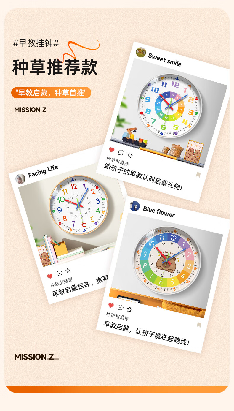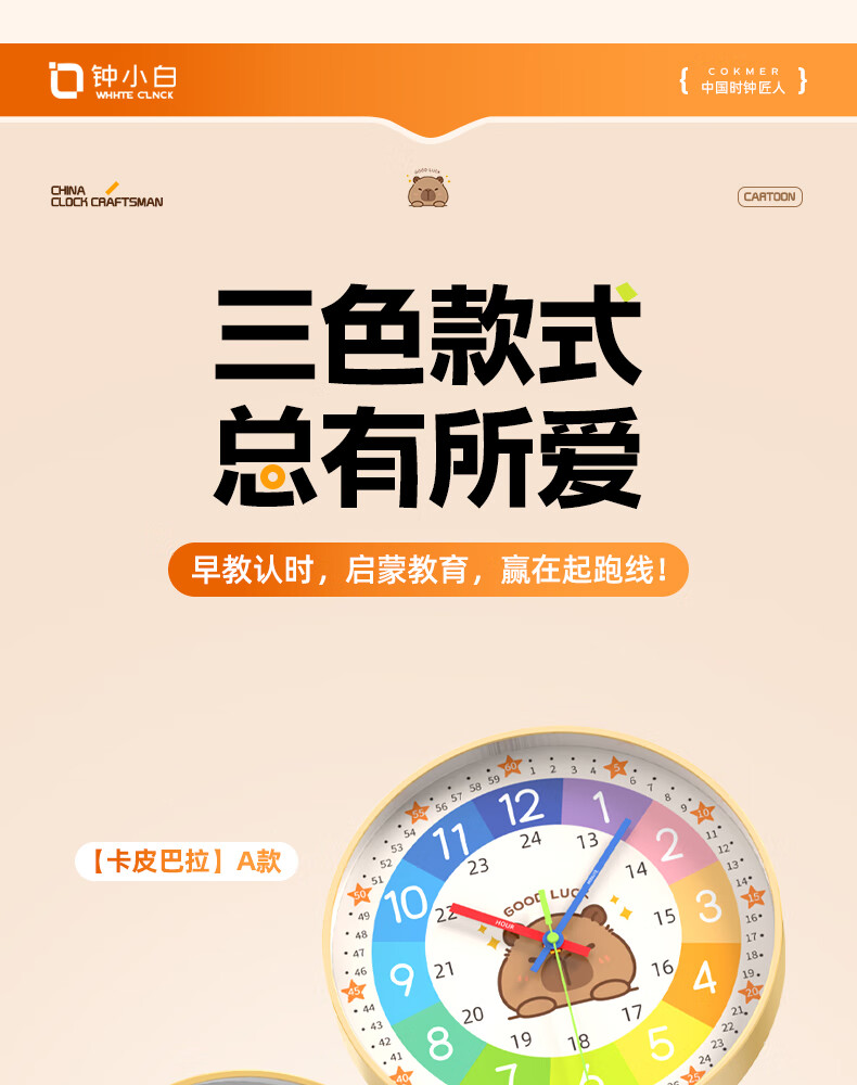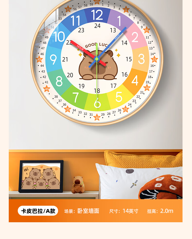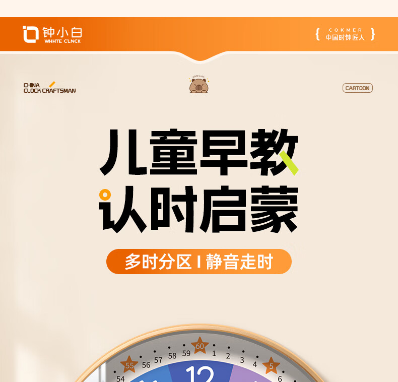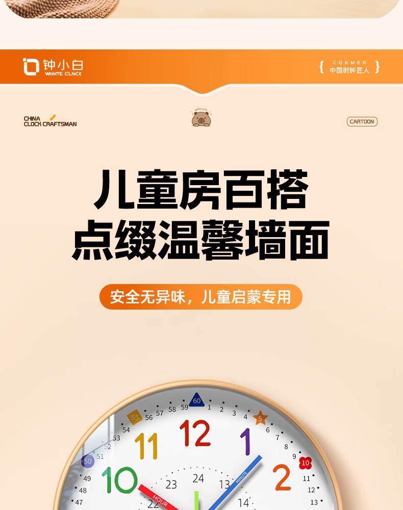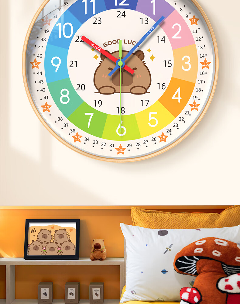 Zhong Xiaobai wall clock clock living room home 2025 new early education children's bedroom cartoon punch-free clock wall quartz clock