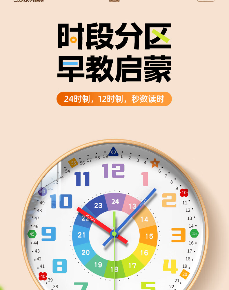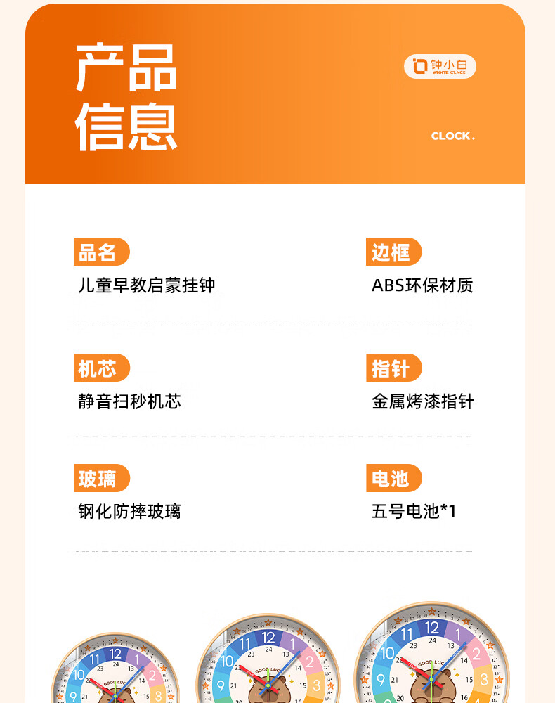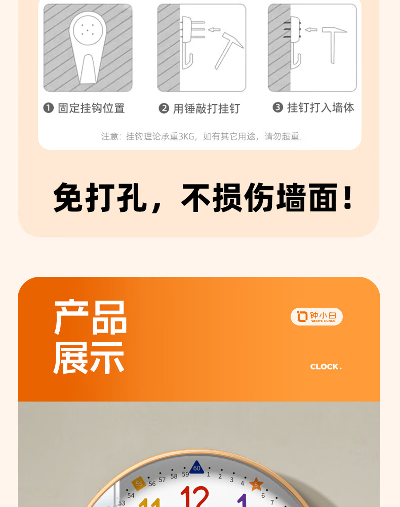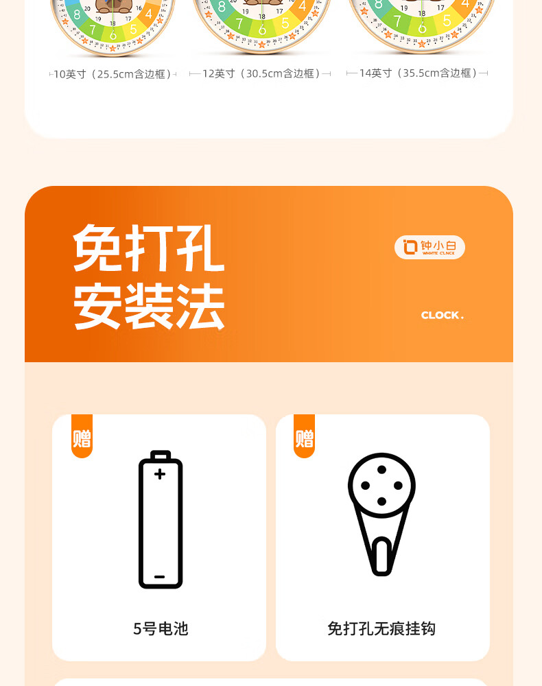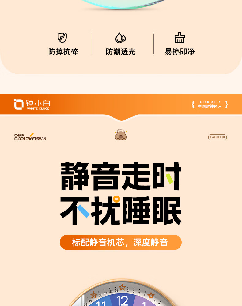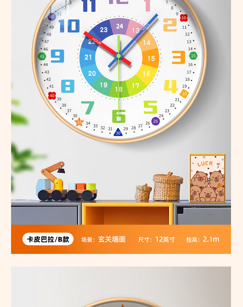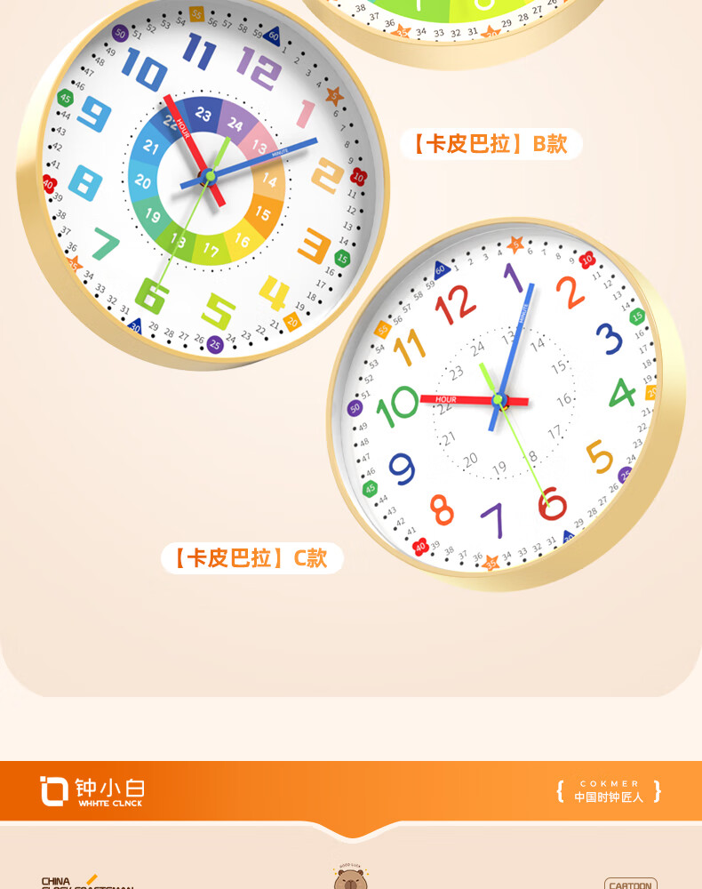 Zhong Xiaobai wall clock clock living room home 2025 new early education children's bedroom cartoon punch-free clock wall quartz clock