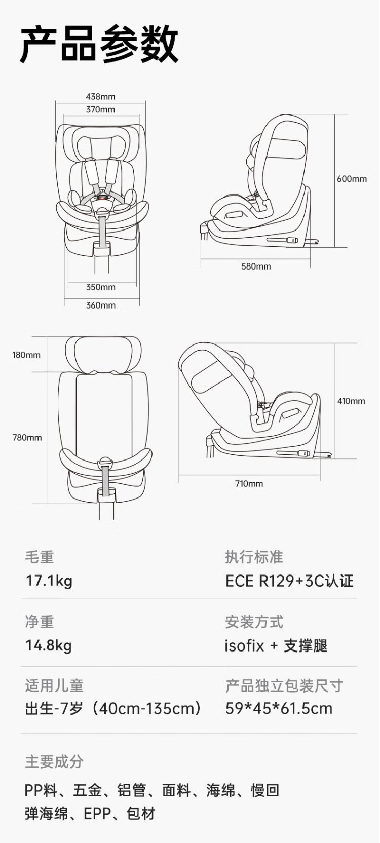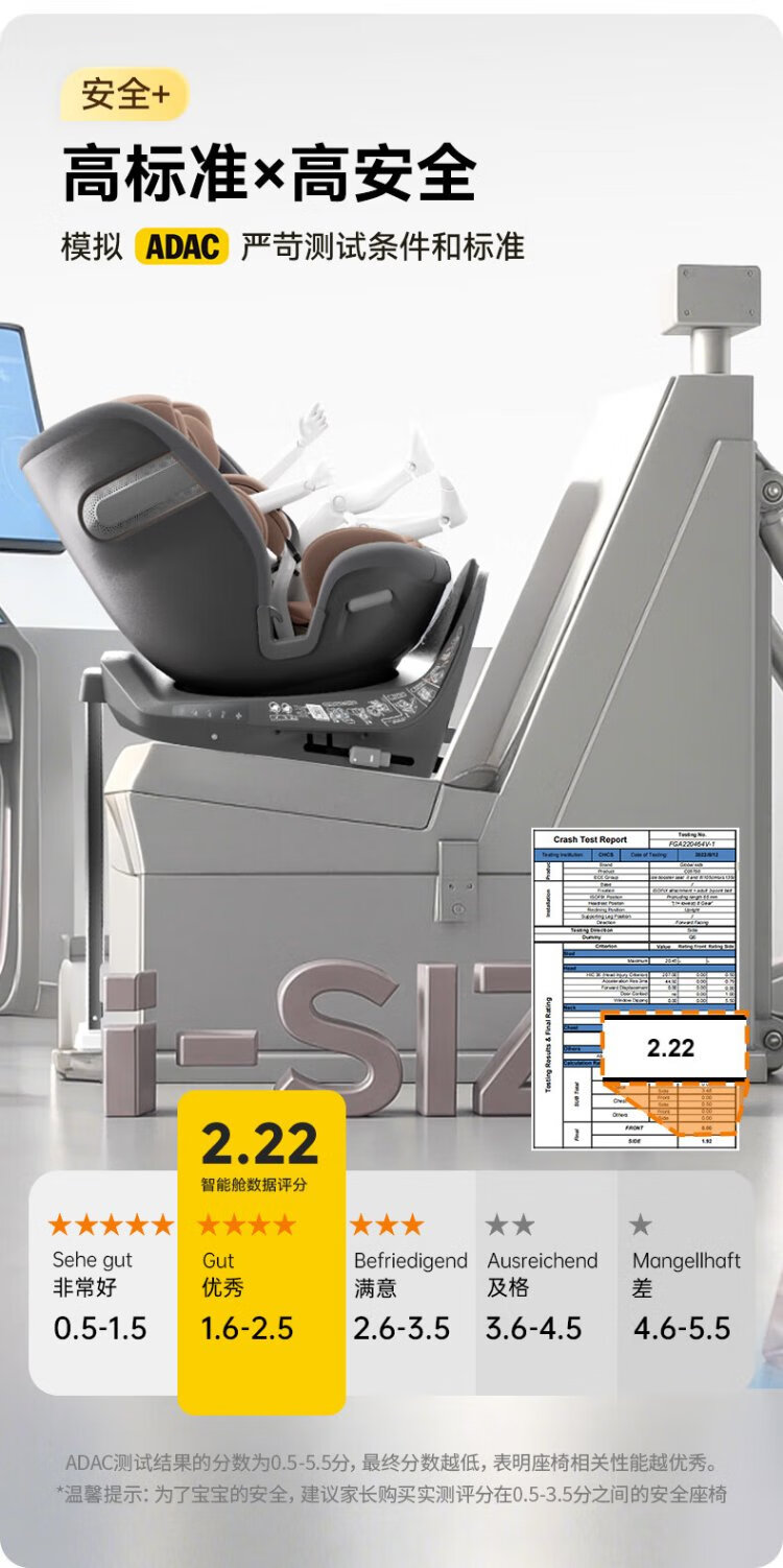 Jingjing Tokyo-made child safety seat 0-6-7 years old baby i-Size ADAC dual ventilation heating smart cabin pro brown