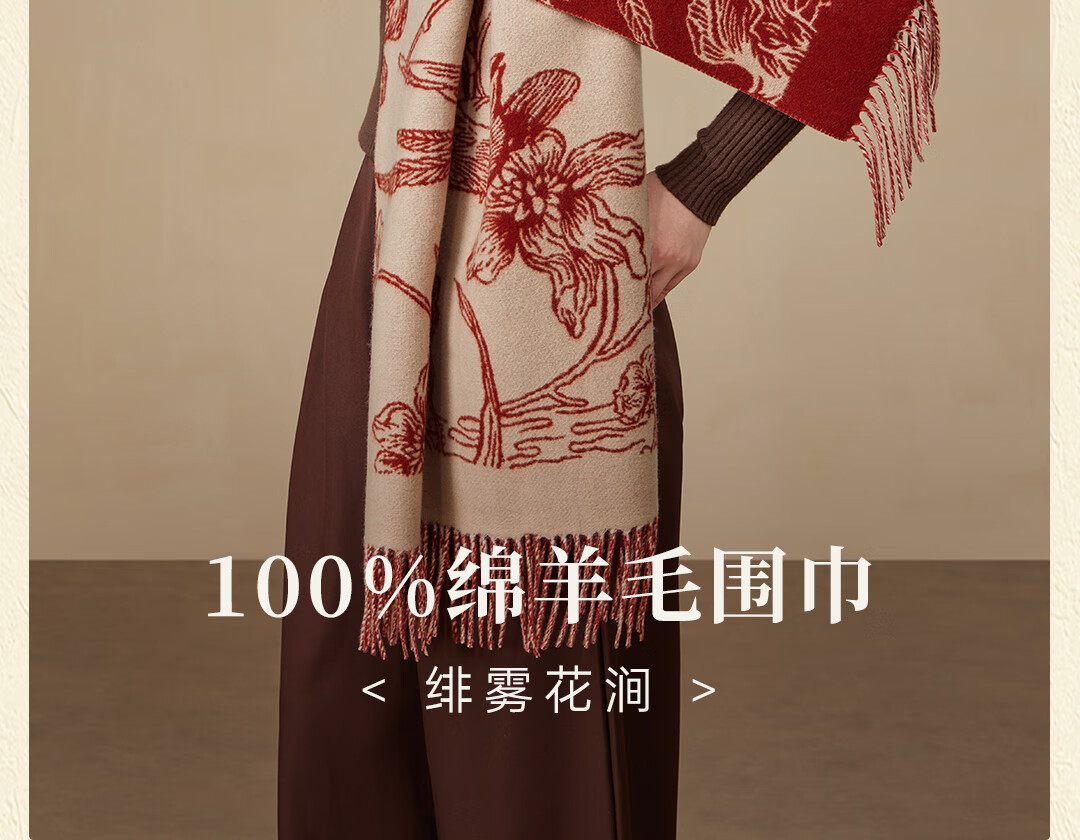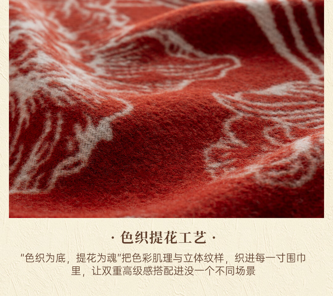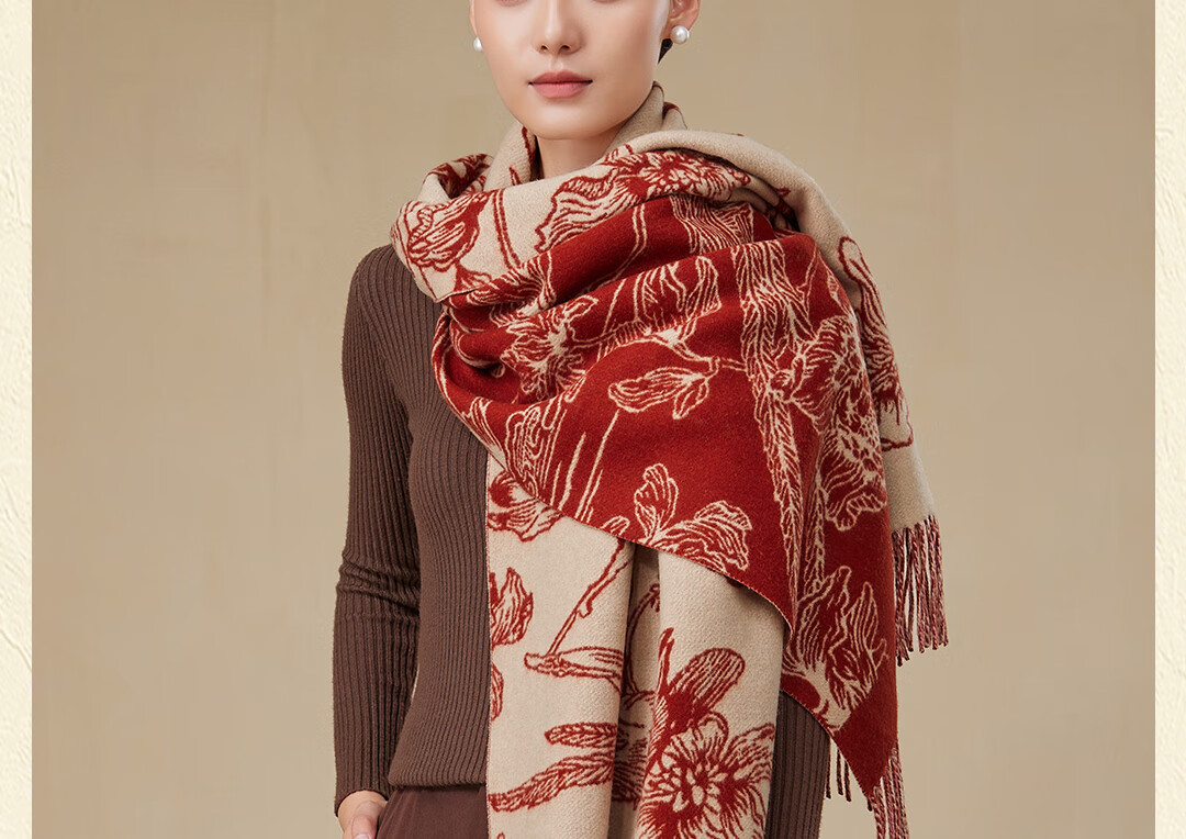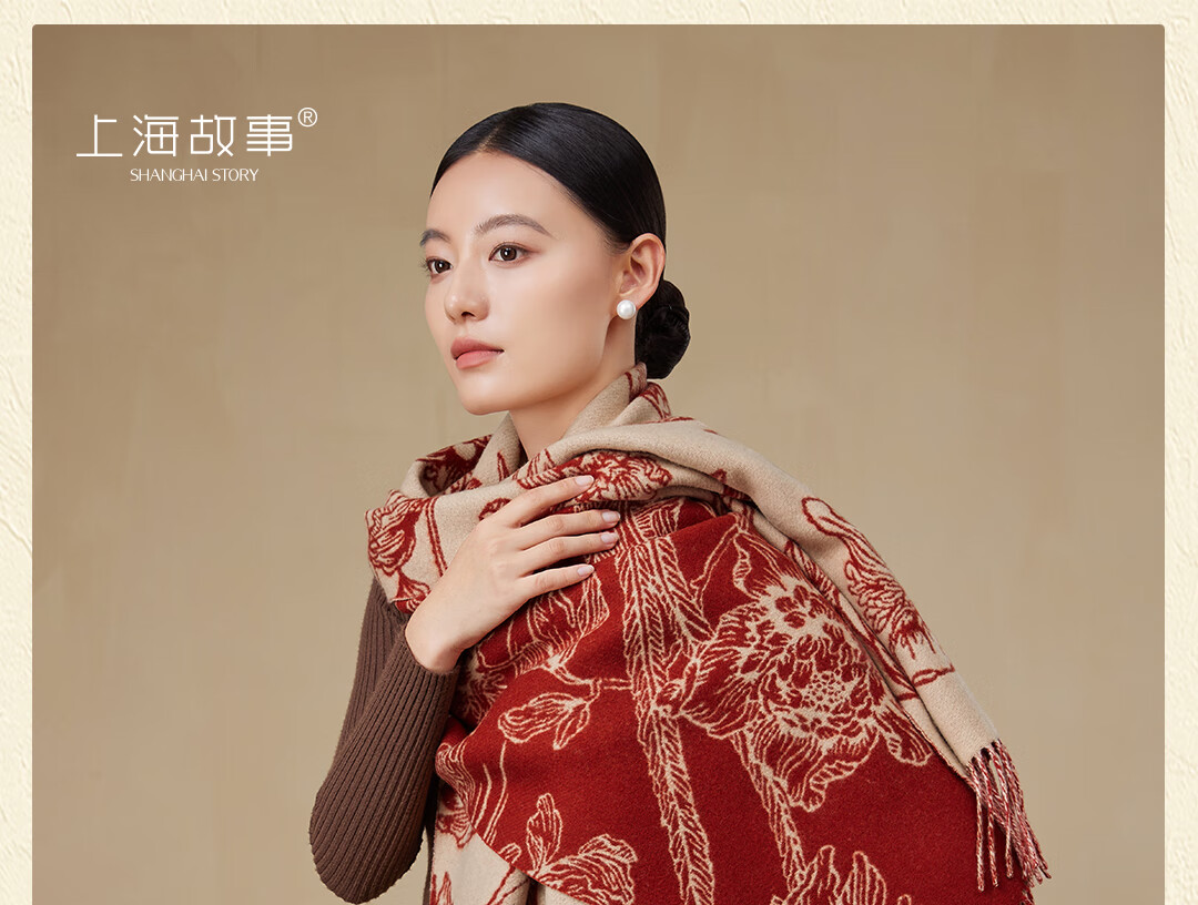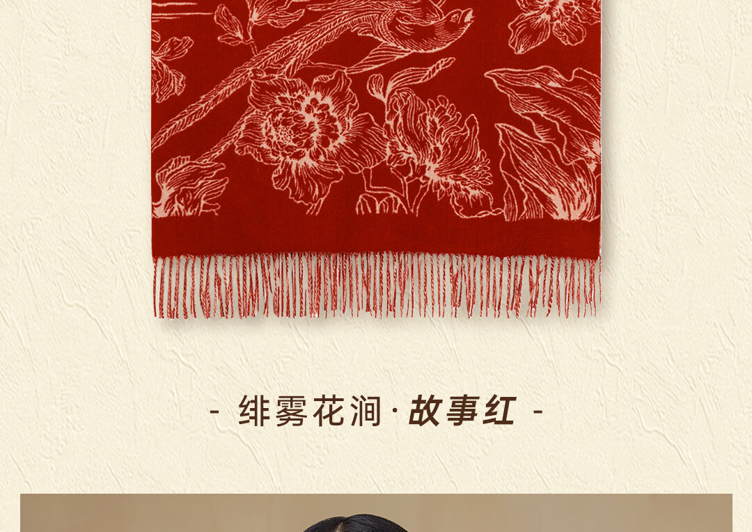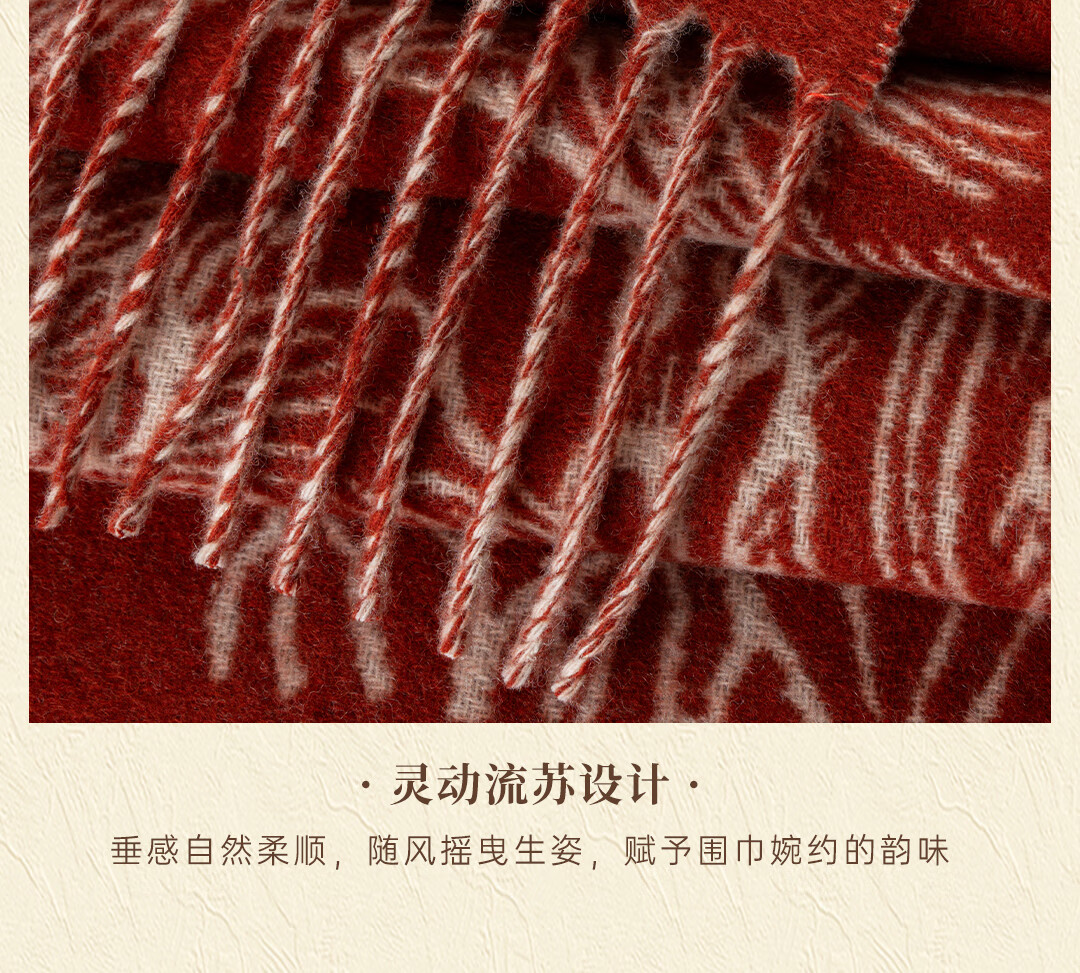 Shanghai Story Pure Wool Tassel Fashion Jacquard Red Scarf Women's Comfortable Wool Shawl Women's Day Gift Birthday Gift Box