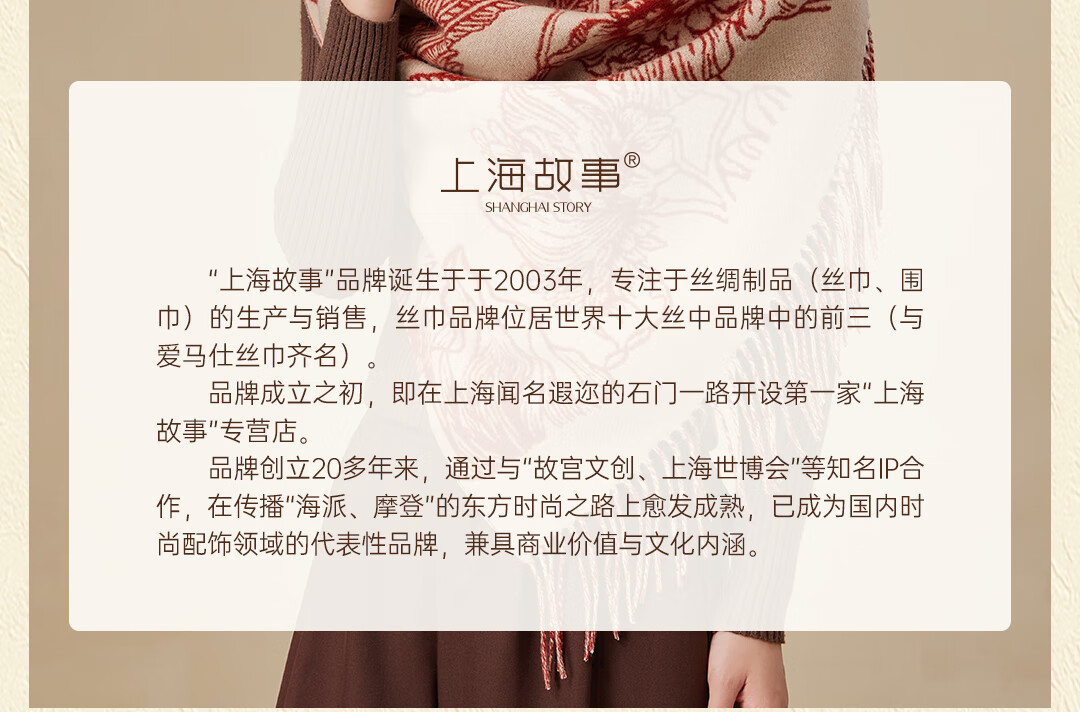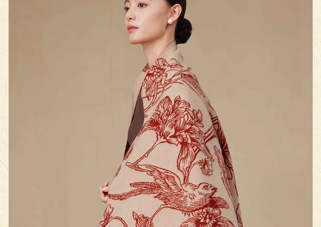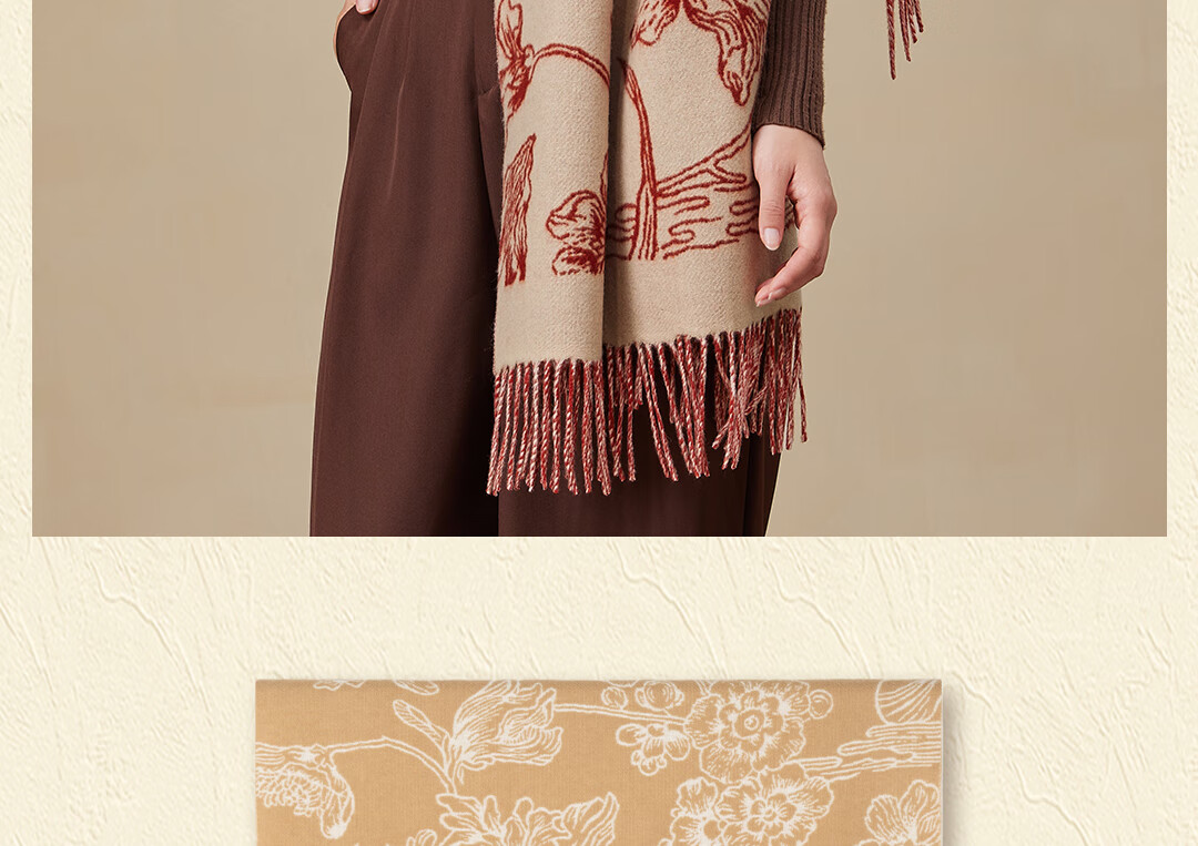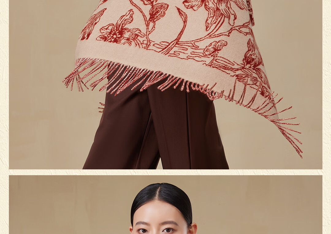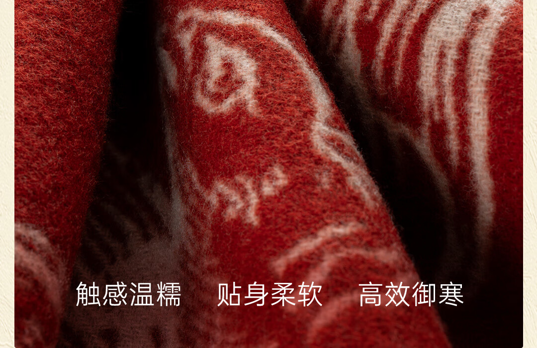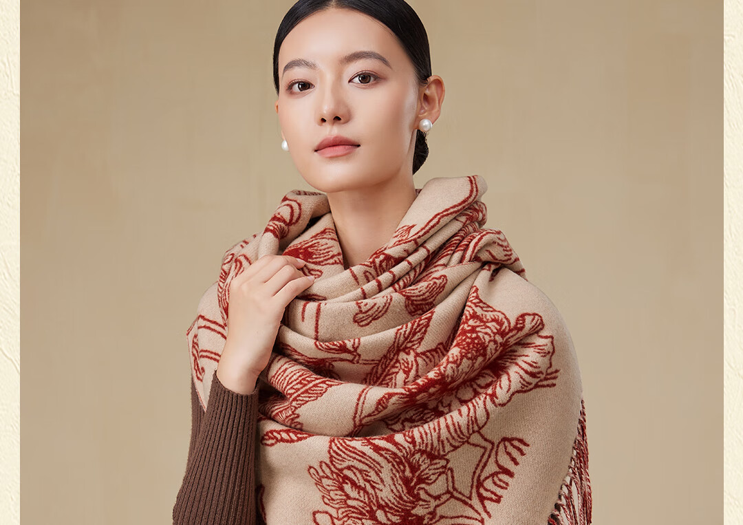 Shanghai Story Pure Wool Tassel Fashion Jacquard Red Scarf Women's Comfortable Wool Shawl Women's Day Gift Birthday Gift Box