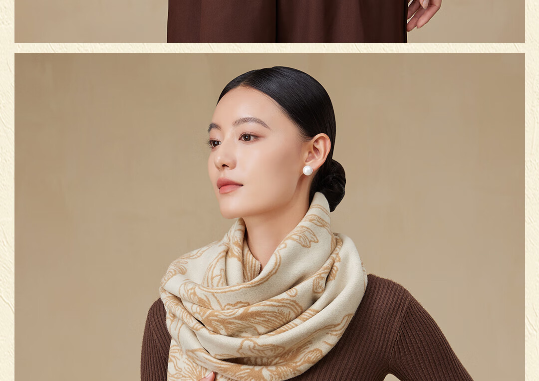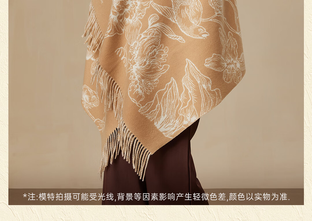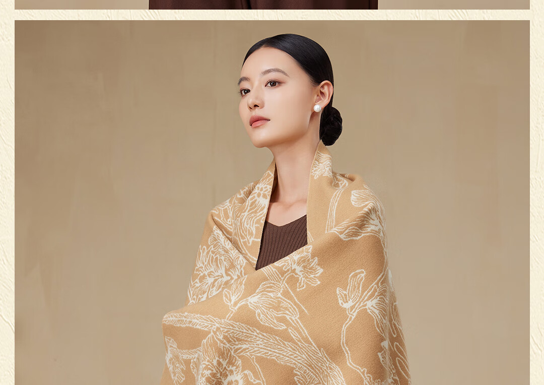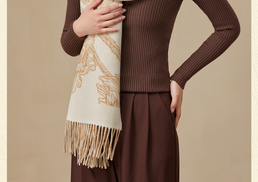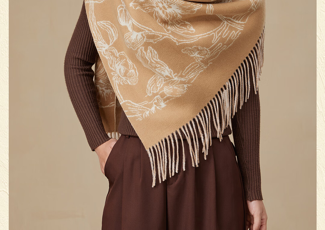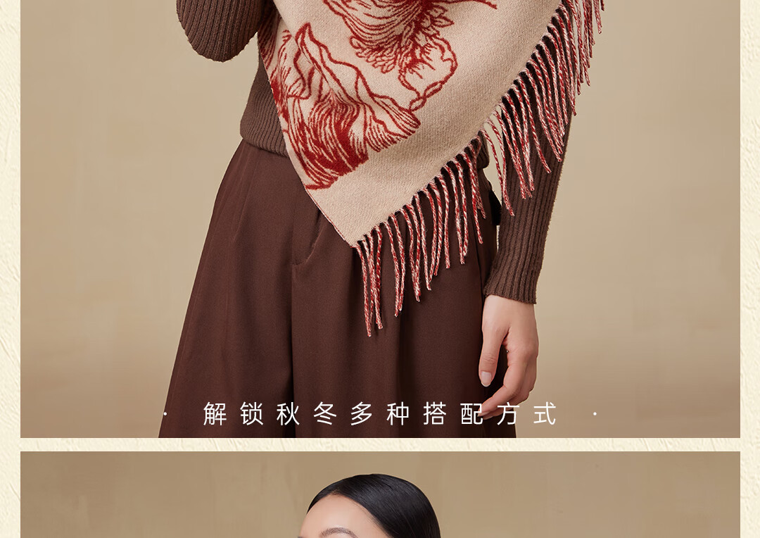 Shanghai Story Pure Wool Tassel Fashion Jacquard Red Scarf Women's Comfortable Wool Shawl Women's Day Gift Birthday Gift Box