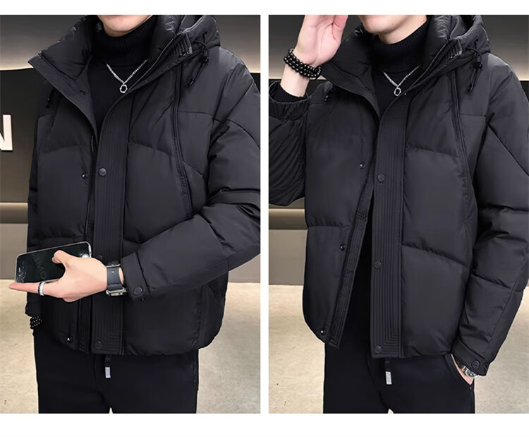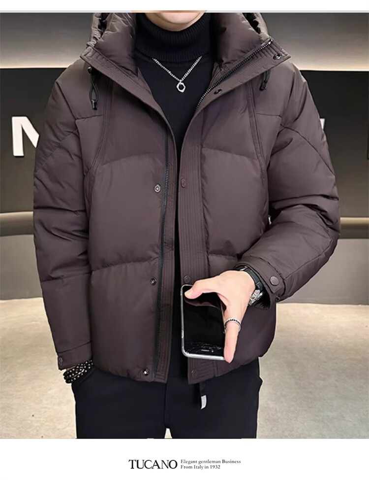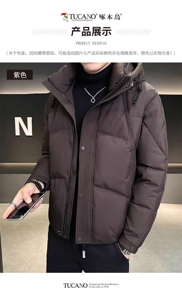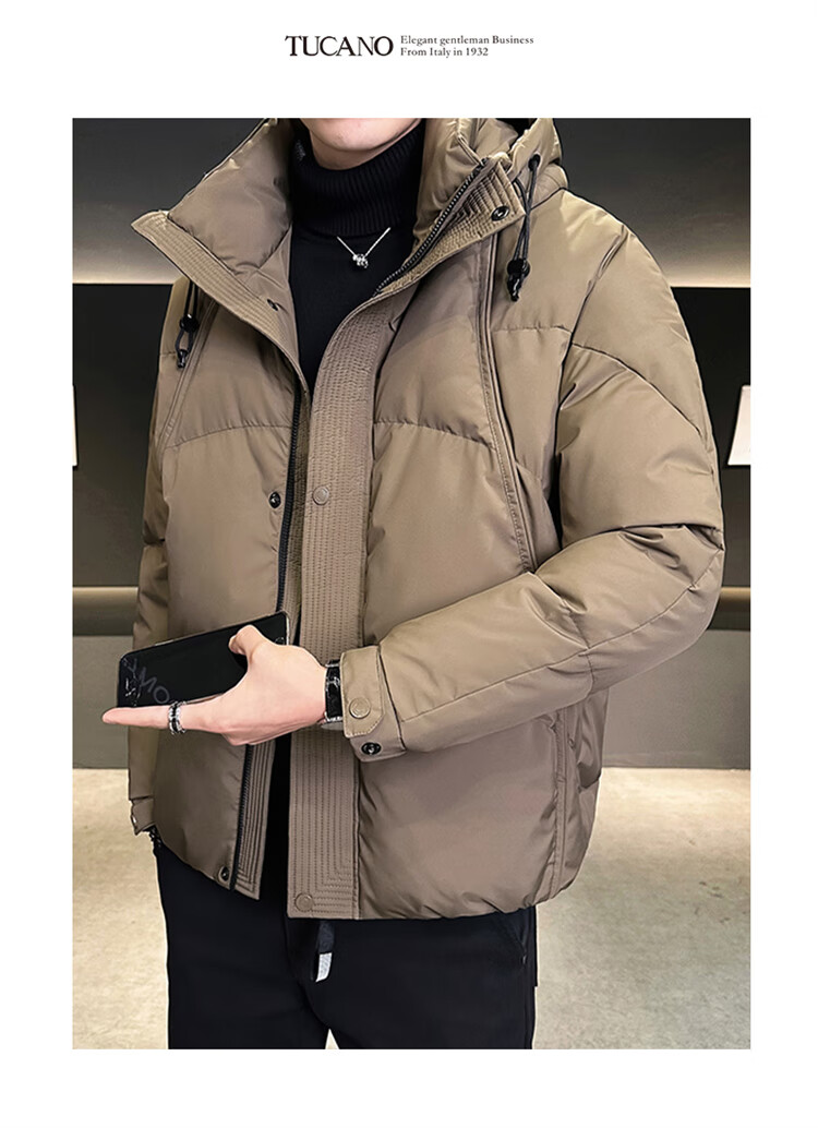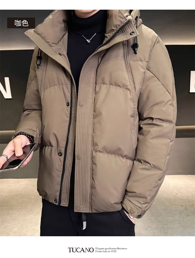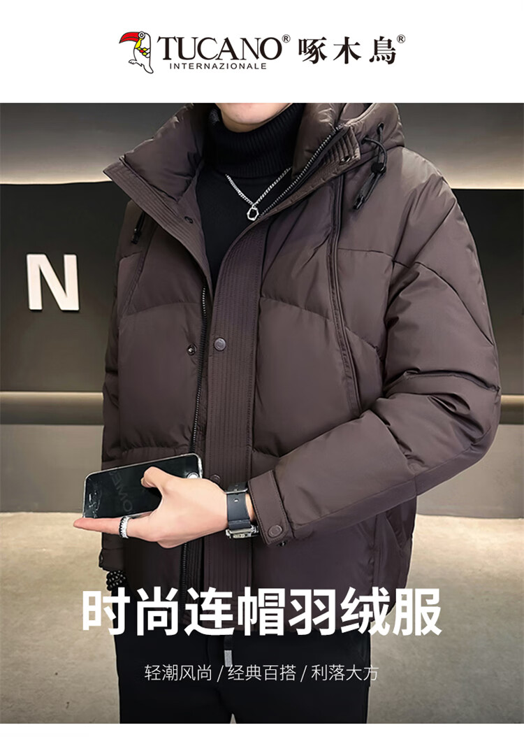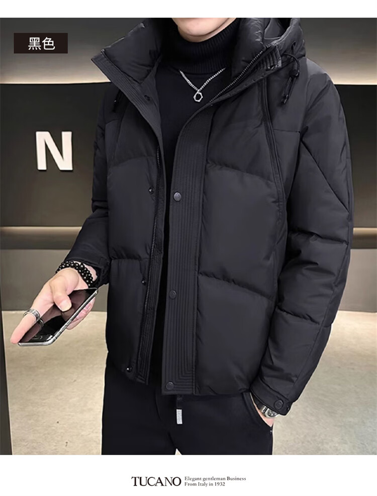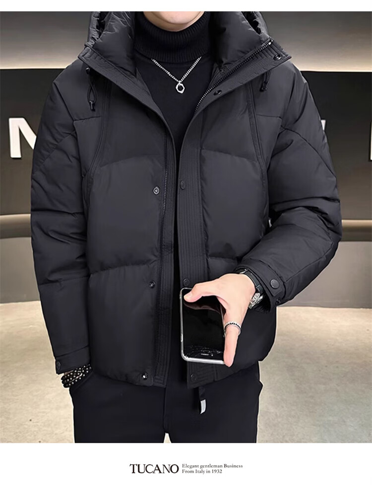 Woodpecker (TUCANO) Down Jacket Men's Winter Casual Jacket Hooded Thickened Short Bread Jacket Cold-proof and Warm Men's Clothing Black XL