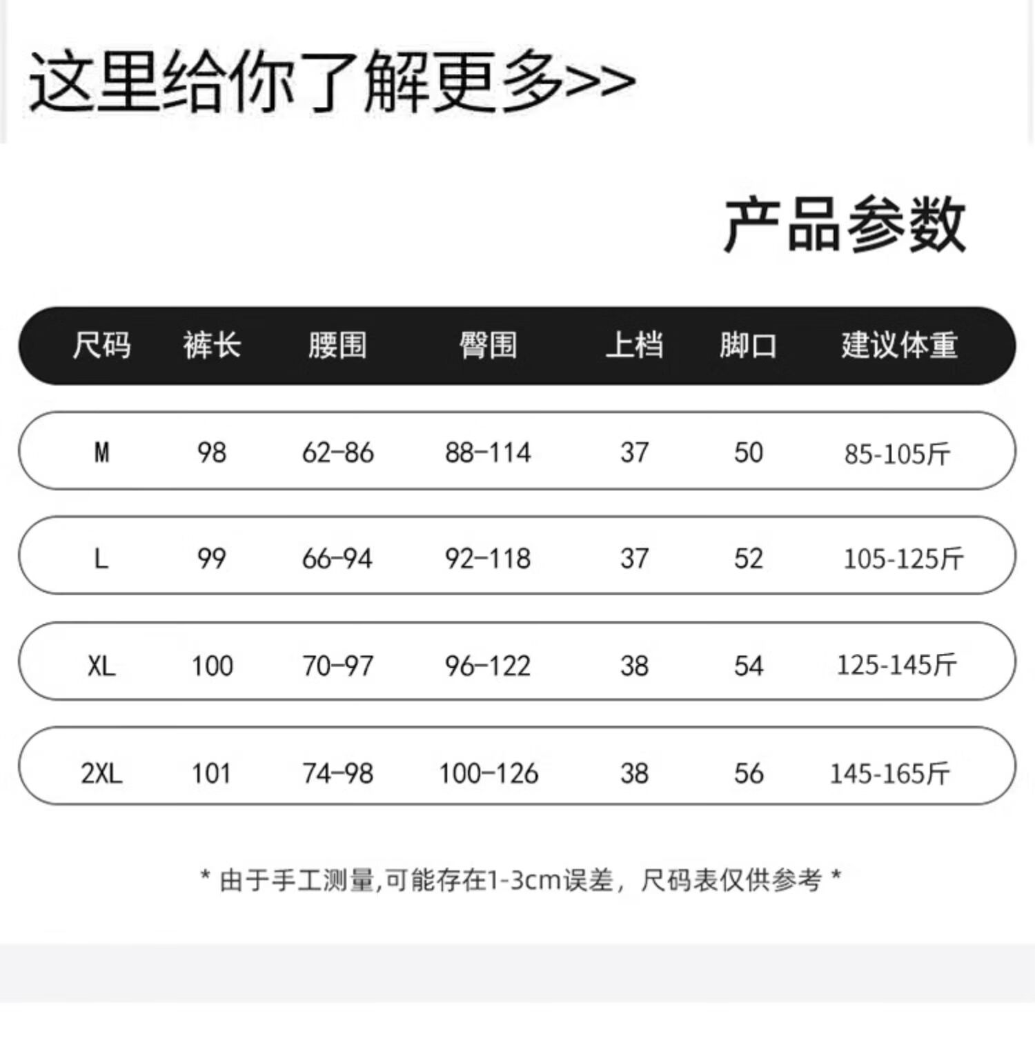 Outseam (cm) 99 cm 101.5 cm 104 cm 106.5 cm 109 cm