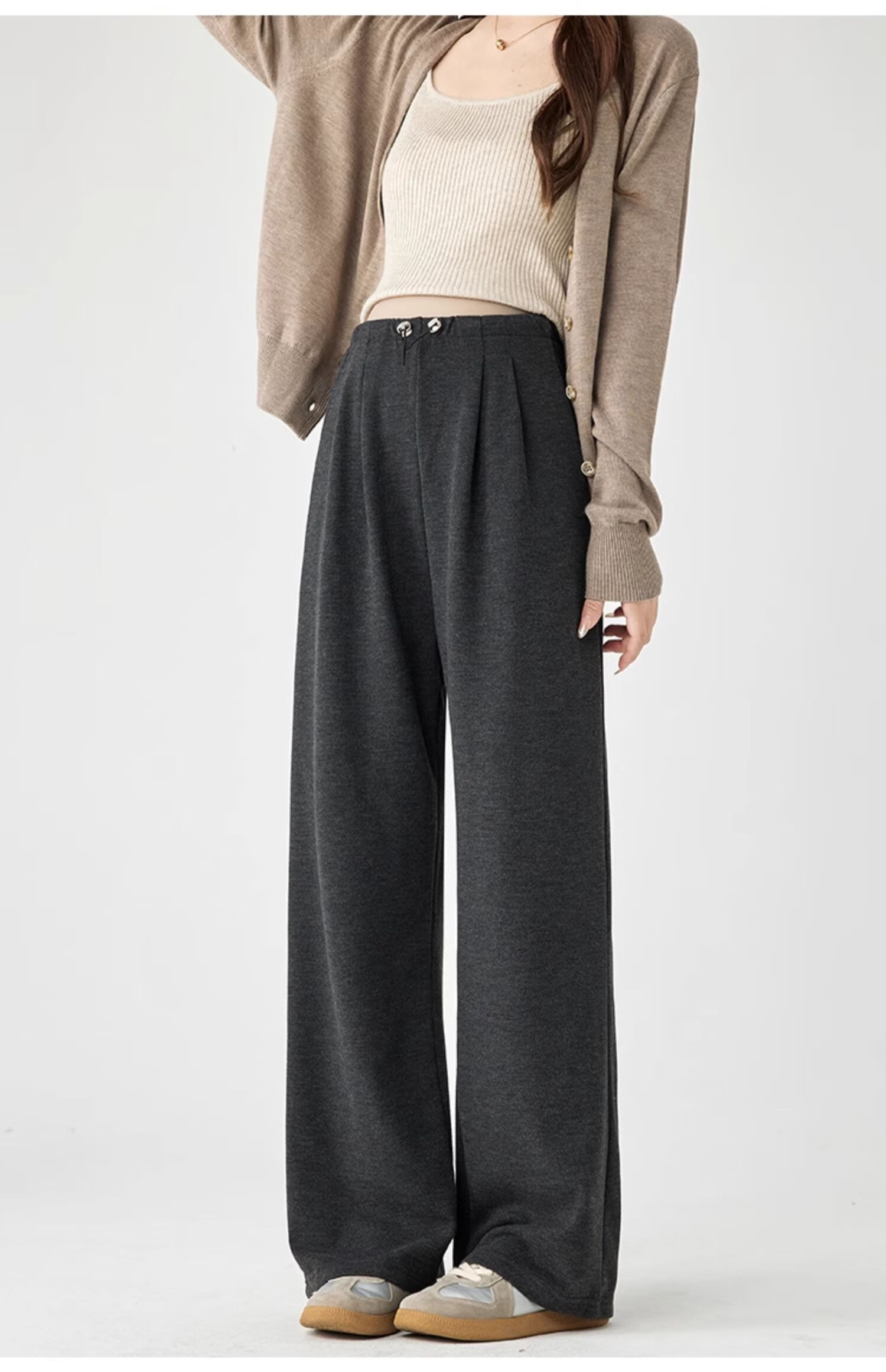 JOYNCLEON Maternity Pants Winter Outerwear Velvet Wide Leg Pants Trousers Belly-Free Maternity Wear Dark Gray XL Jyk203991