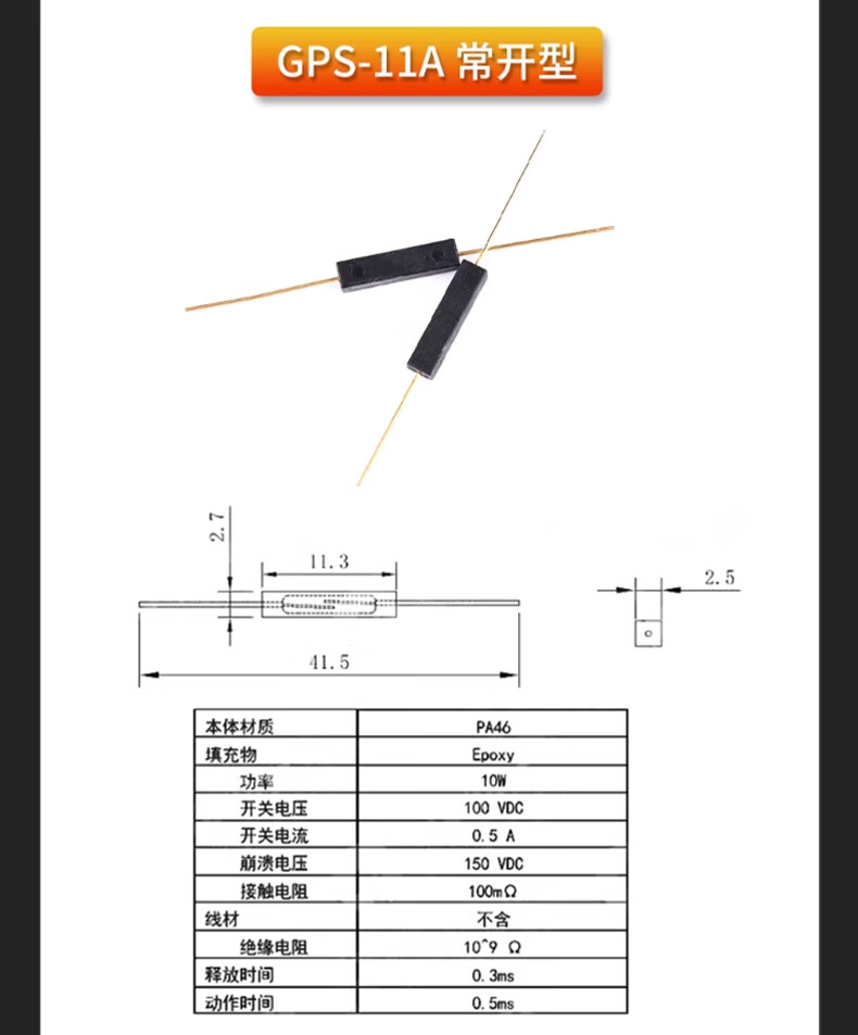 ZAVE reed switch normally open normally closed anti-vibration and anti-damage magnetic switch MKA50202 white tube silver pin normally open