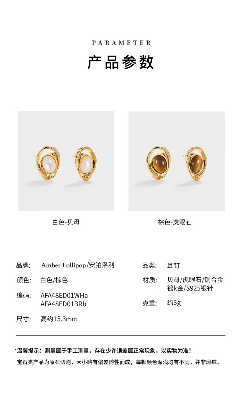 Amber Lollipop tiger eye stone earrings for women niche earrings light luxury earrings earrings anniversary birthday gifts for girlfriend and wife