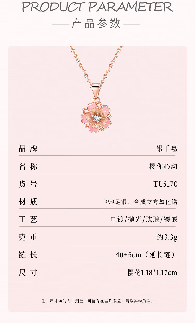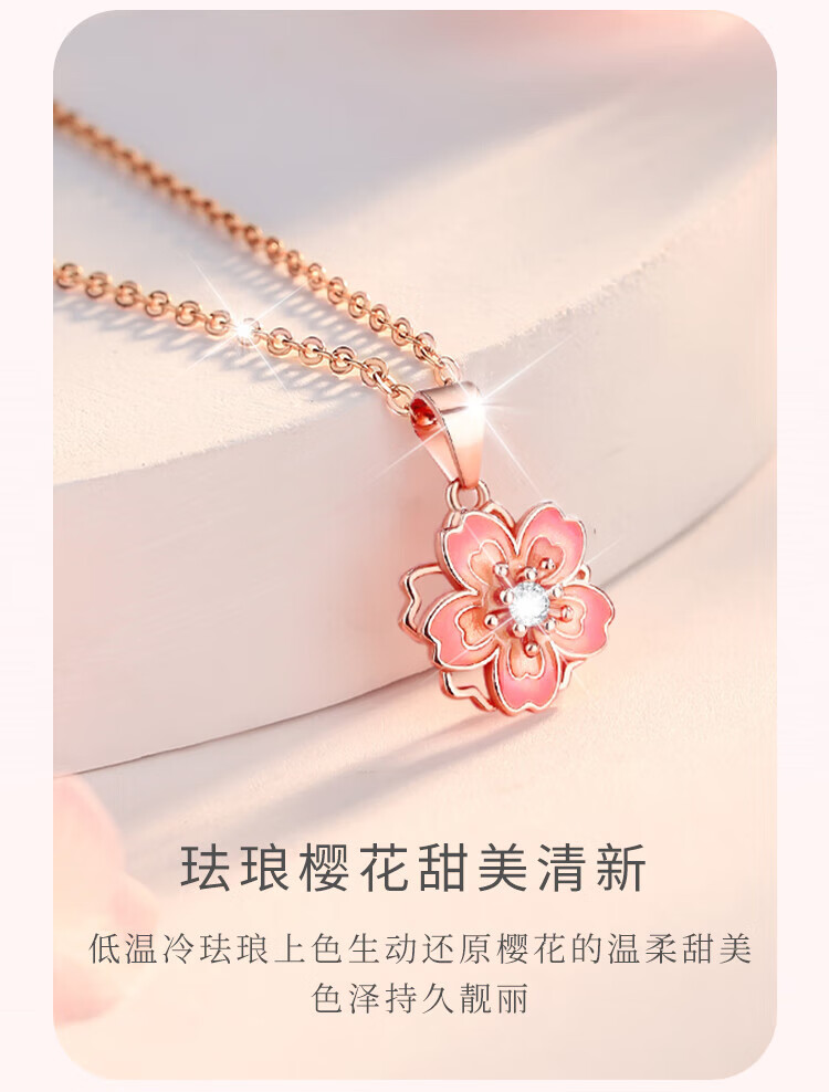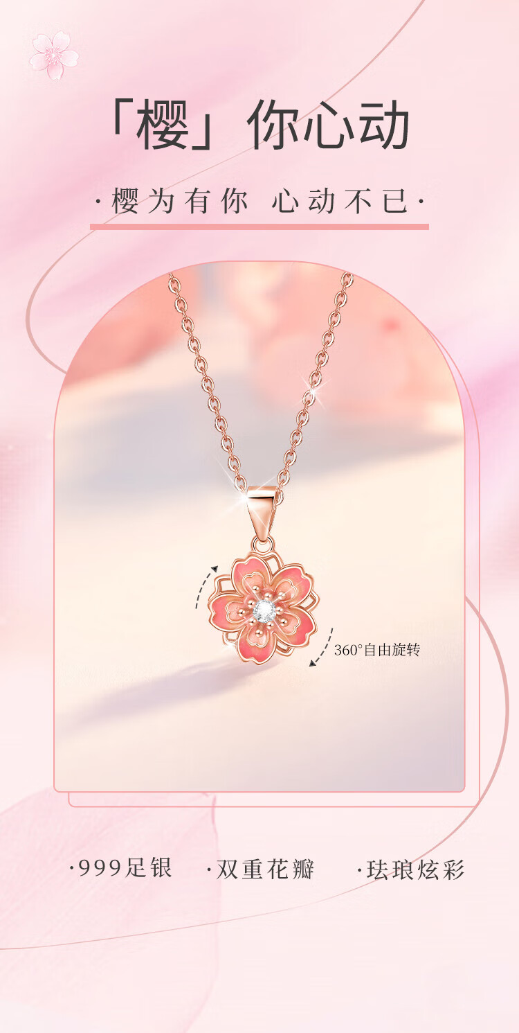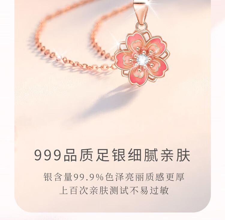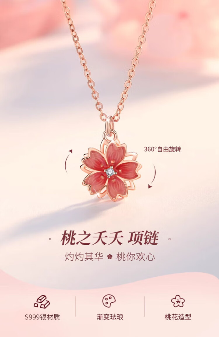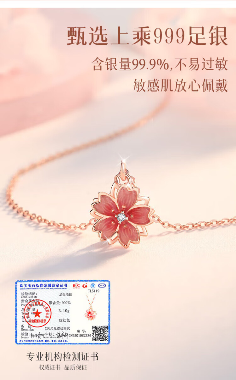 Gin Qianhui 999 sterling silver necklace female peach blossom pendant clavicle chain 2025 new light luxury Valentine's Day birthday gift for girlfriend