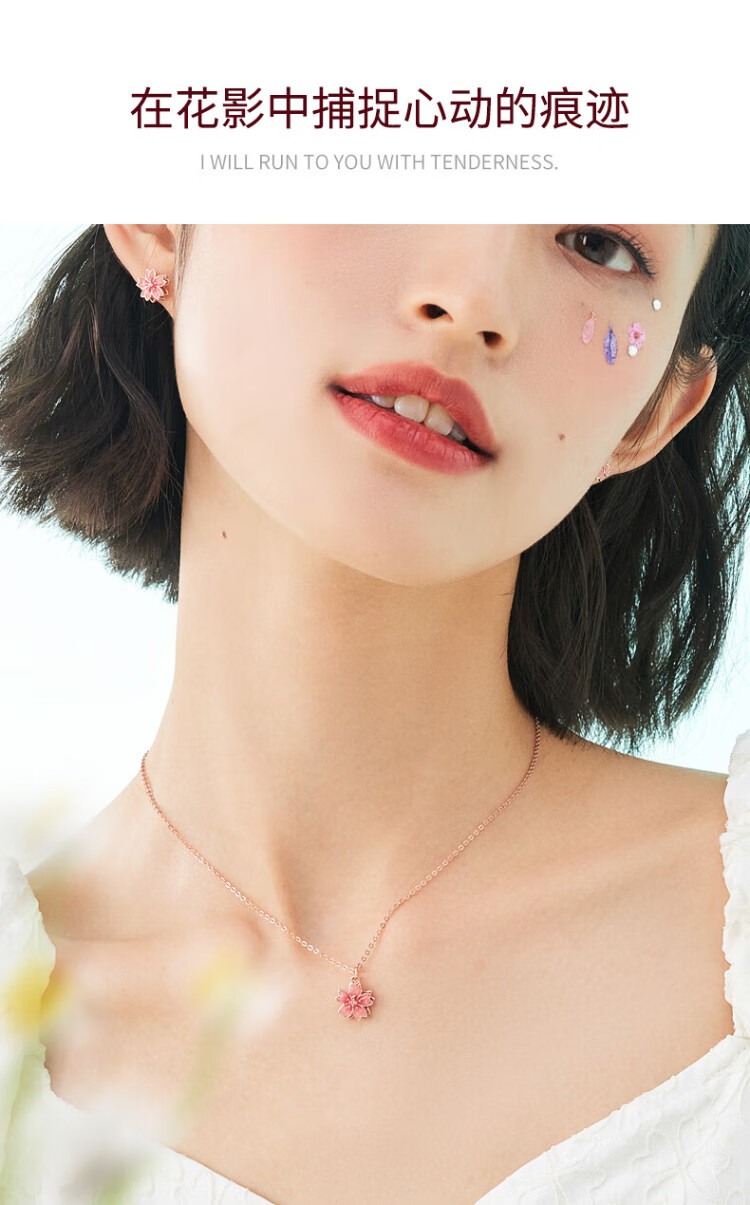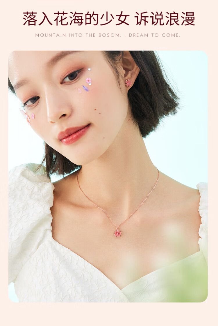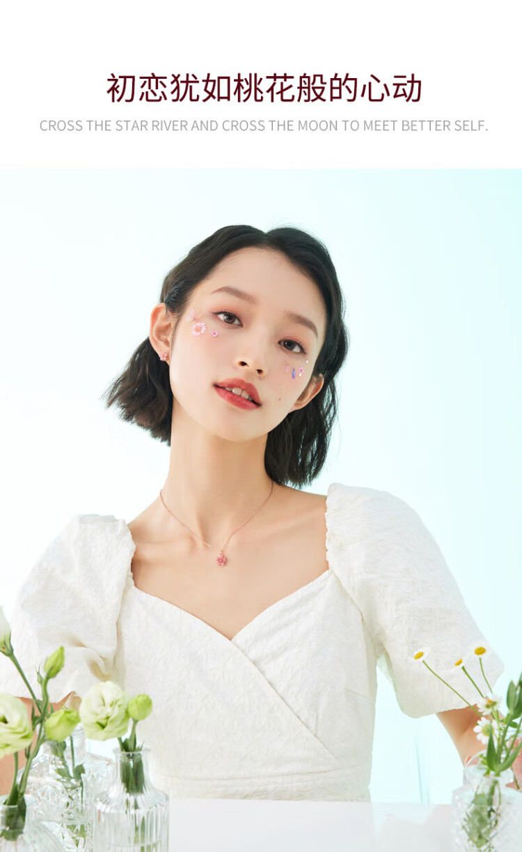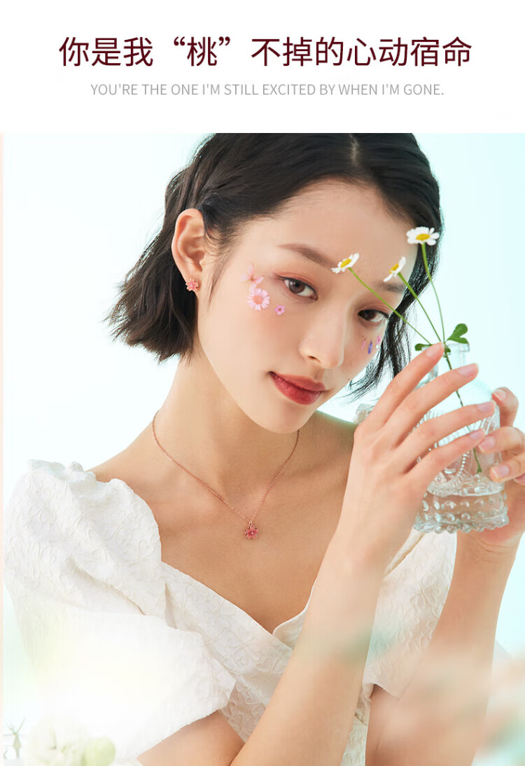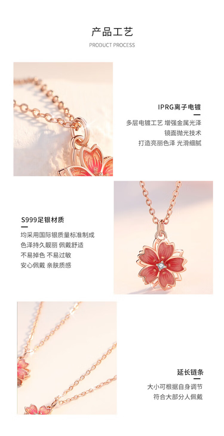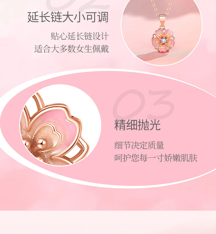 Gin Qianhui 999 sterling silver necklace female peach blossom pendant clavicle chain 2025 new light luxury Valentine's Day birthday gift for girlfriend
