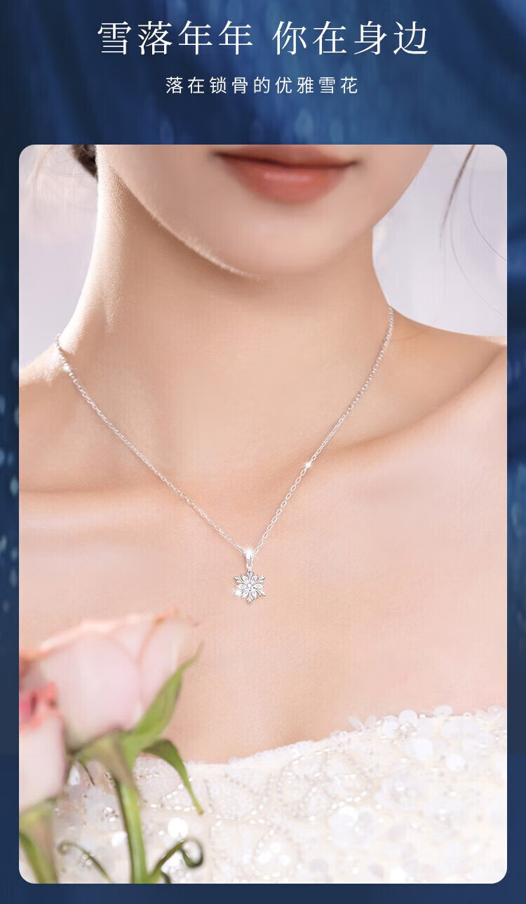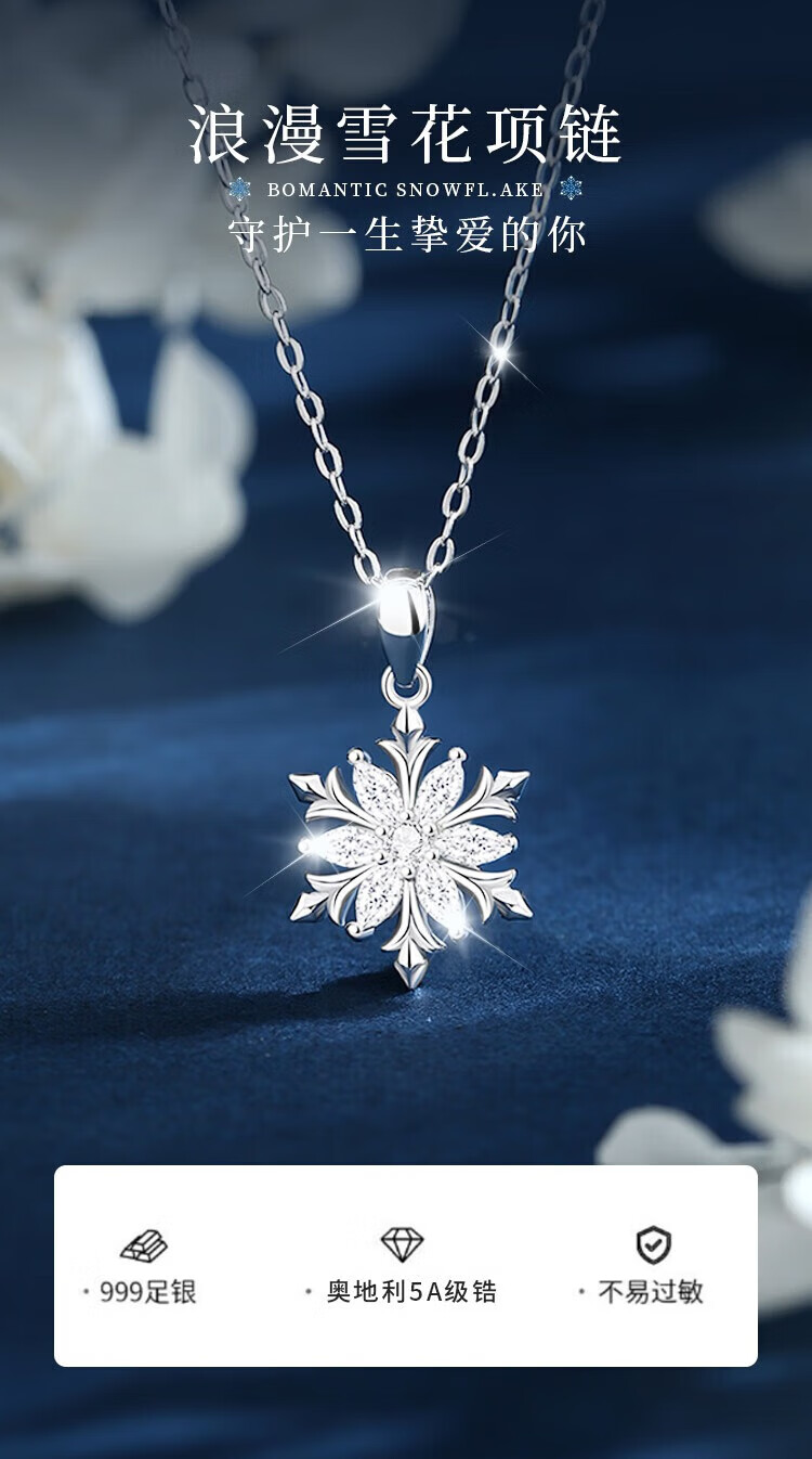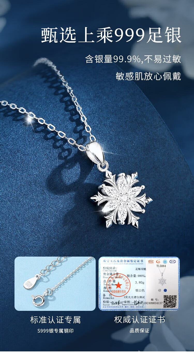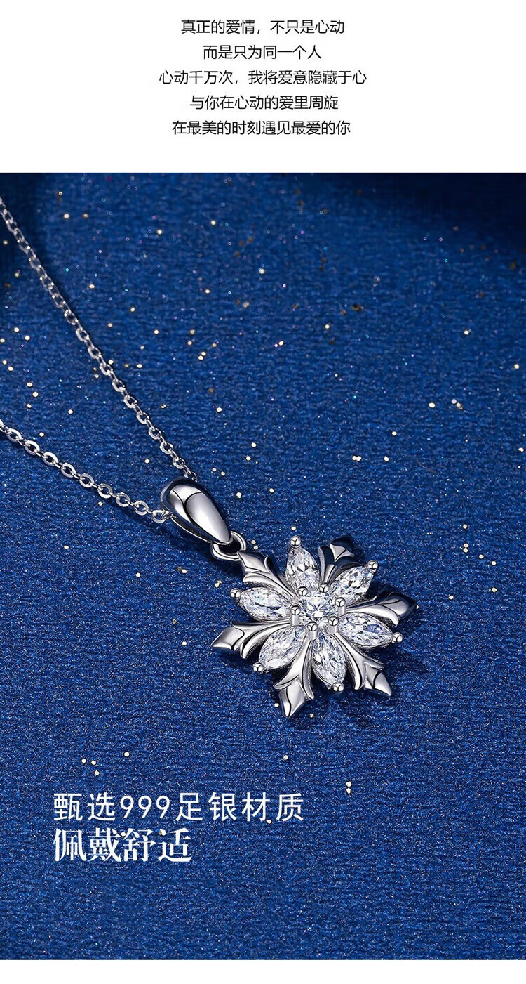 Gin Qianhui 999 sterling silver snowflake necklace women's light luxury pendant 2025 new Valentine's Day birthday gift for girlfriend