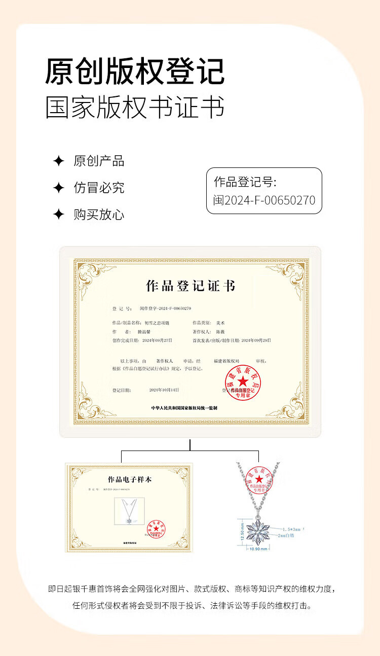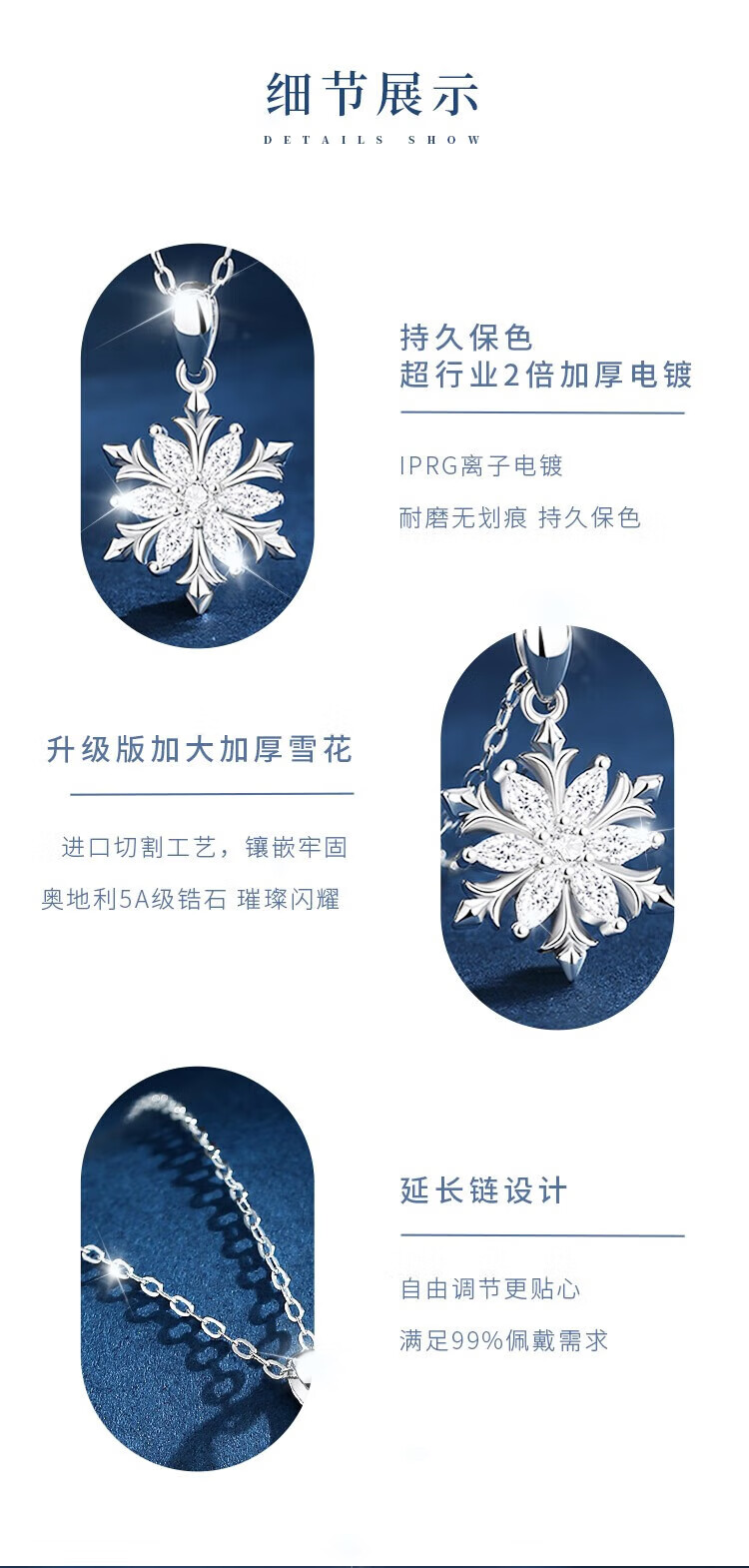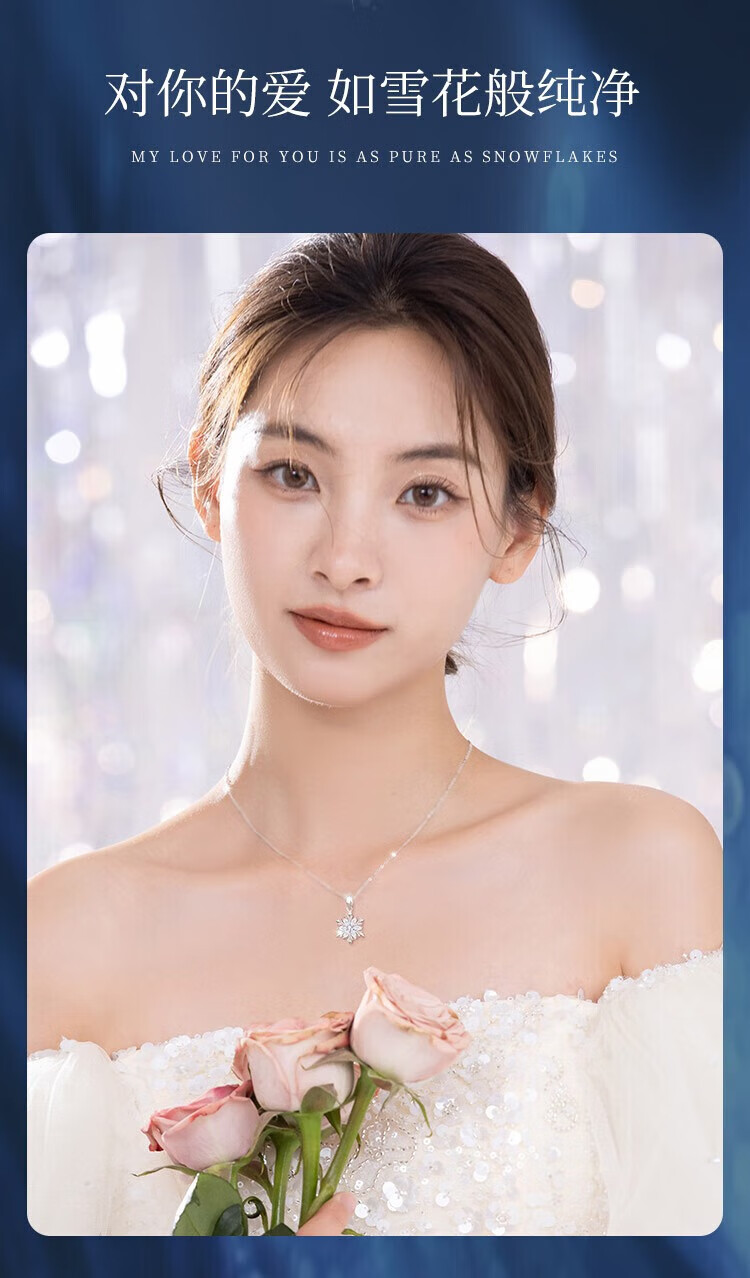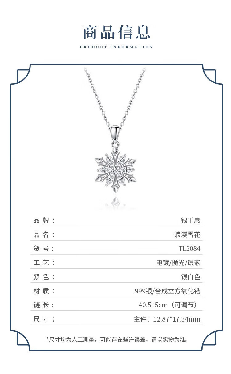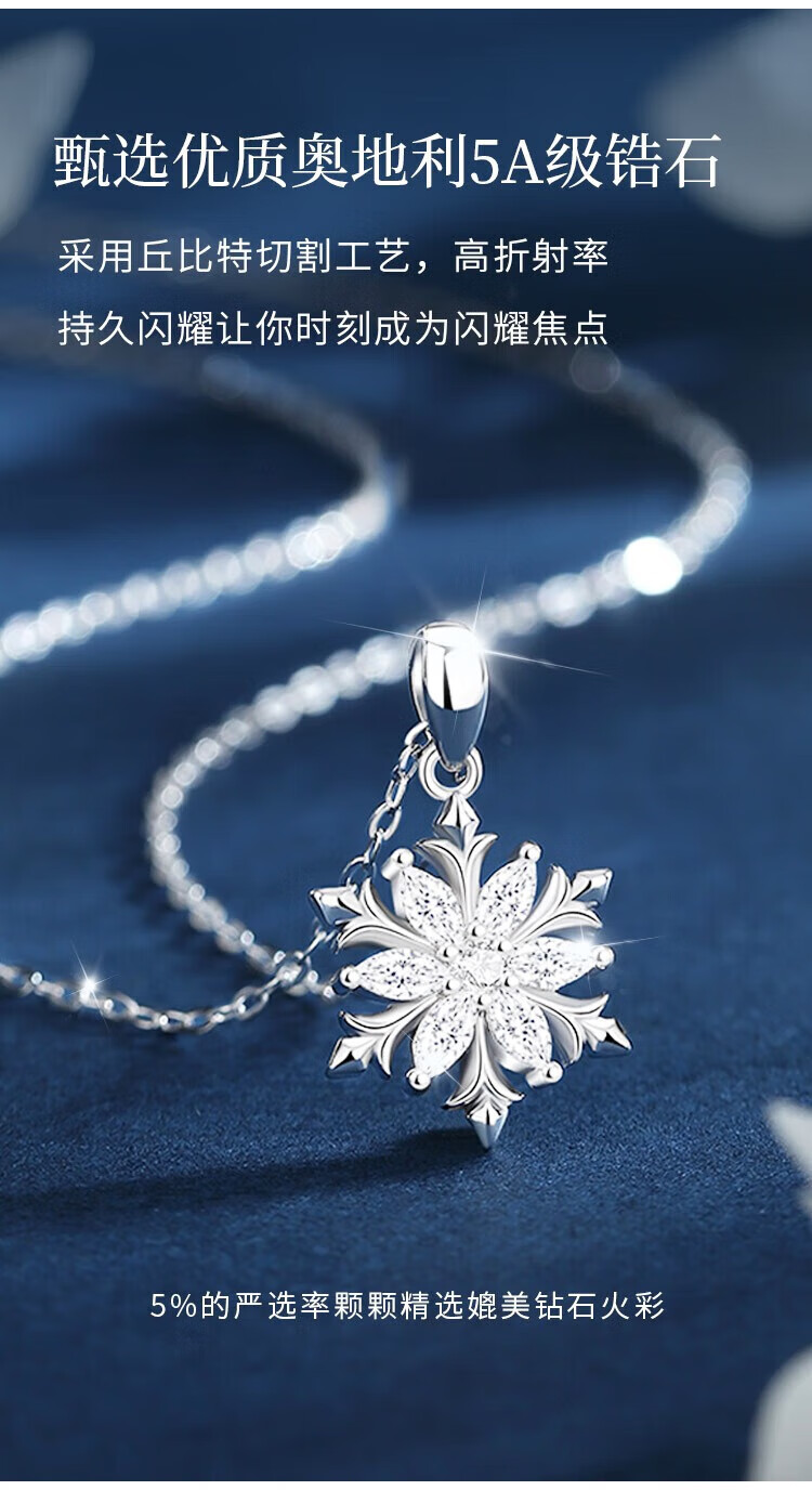 Gin Qianhui 999 sterling silver snowflake necklace women's light luxury pendant 2025 new Valentine's Day birthday gift for girlfriend