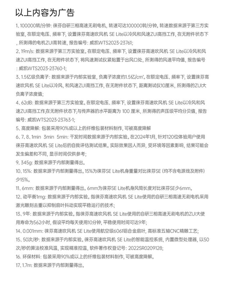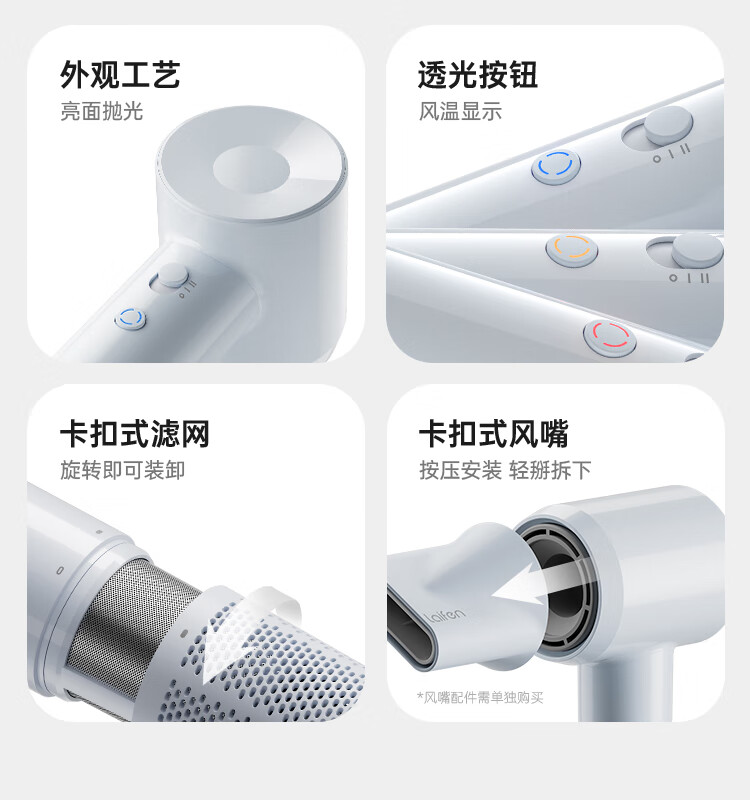 Laifen high-speed hair dryer, quick-drying hair care home hair dryer, negative ion hair dryer, birthday gift, SE lite blue gray + nozzle + stand