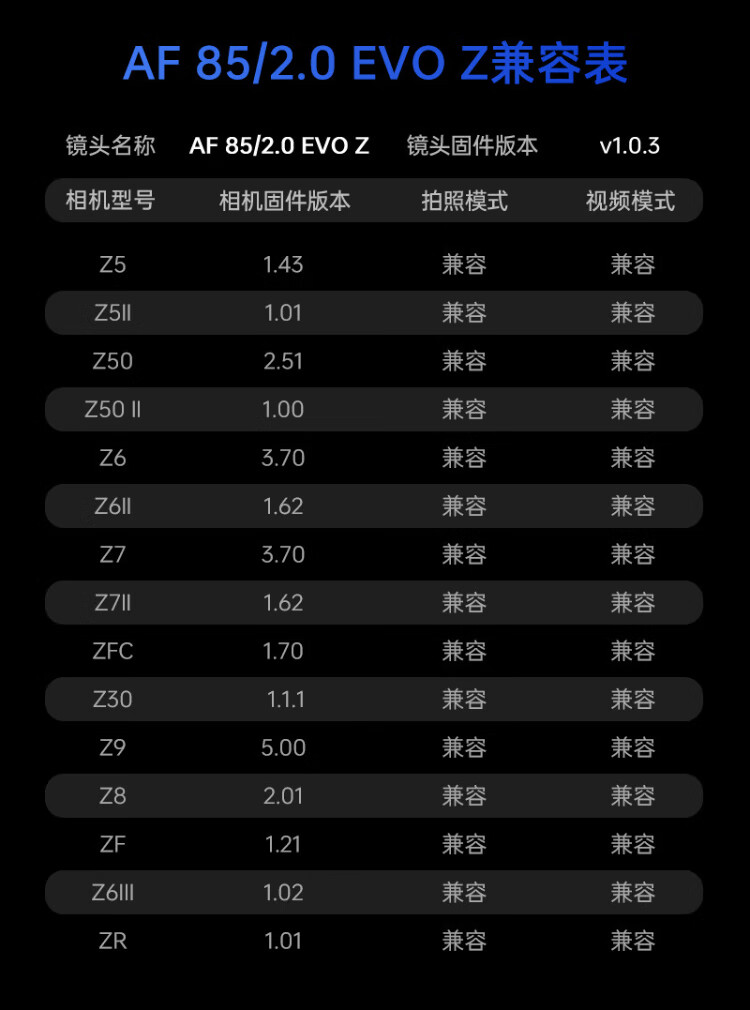 VILTROX AF 85mm F2.0 EVO Z Nikon port full-frame large aperture autofocus mid-telephoto fixed focus portrait photography lens suitable for ZF Z5II mirrorless camera