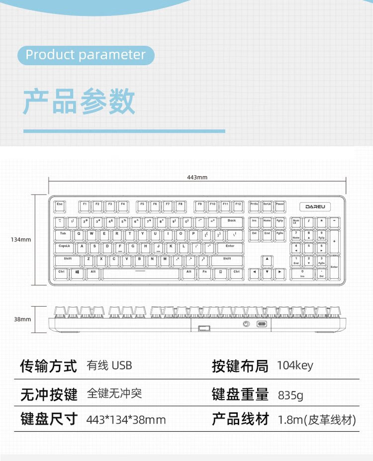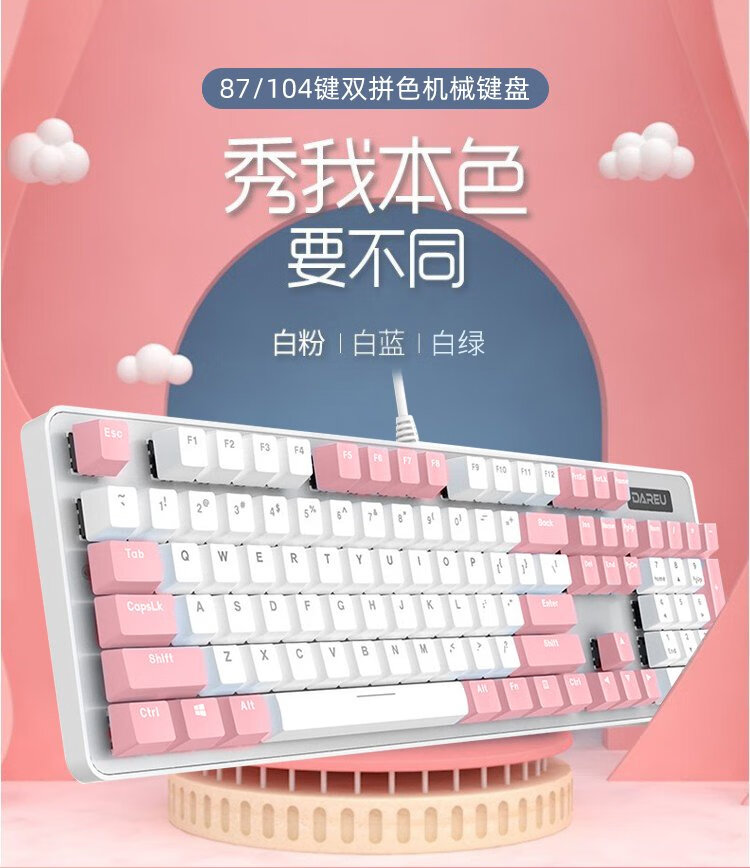 Daryou EK815 (LK175) wired mechanical alloy version two-color mechanical keyboard e-sports game home office full key no punch CF chicken LOL 104 keys green white green axis