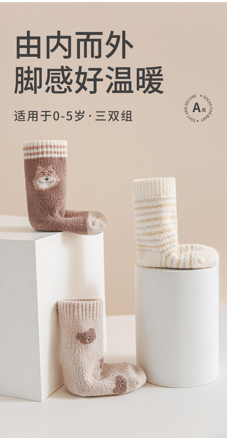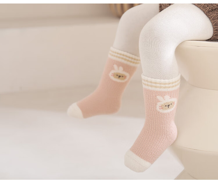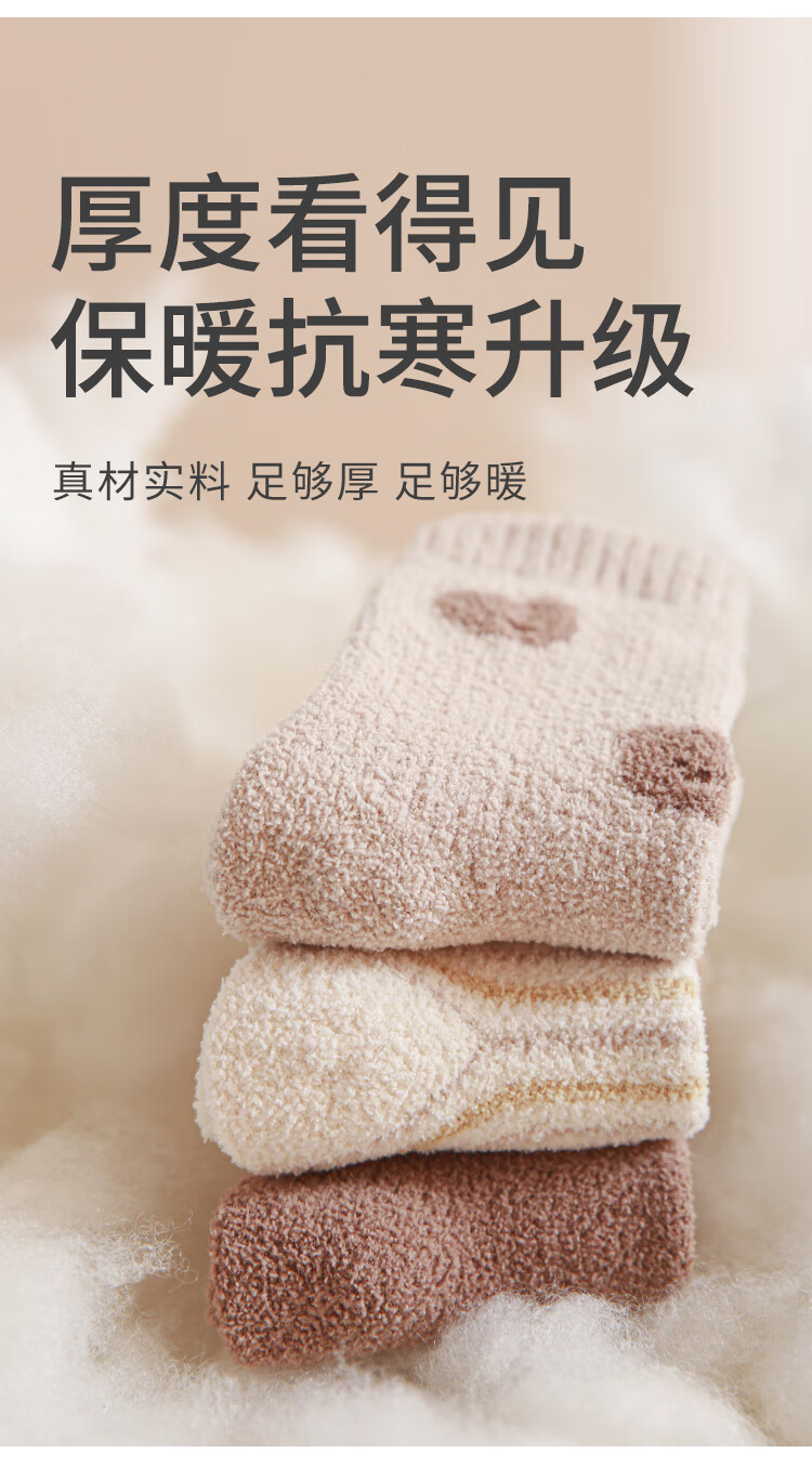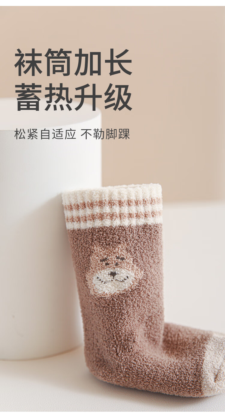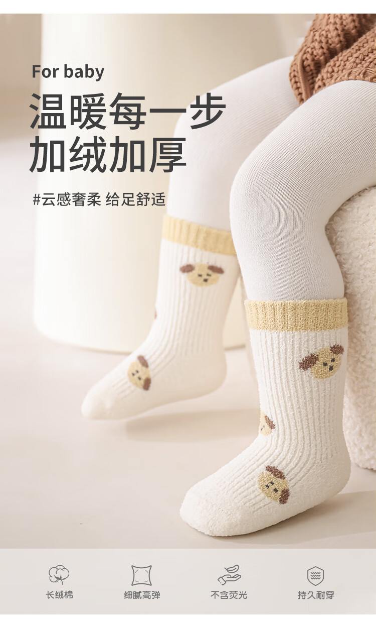 Wuduo cotton 3 pairs of baby socks cartoon 10A antibacterial children's mid-calf socks plus velvet warm infant socks