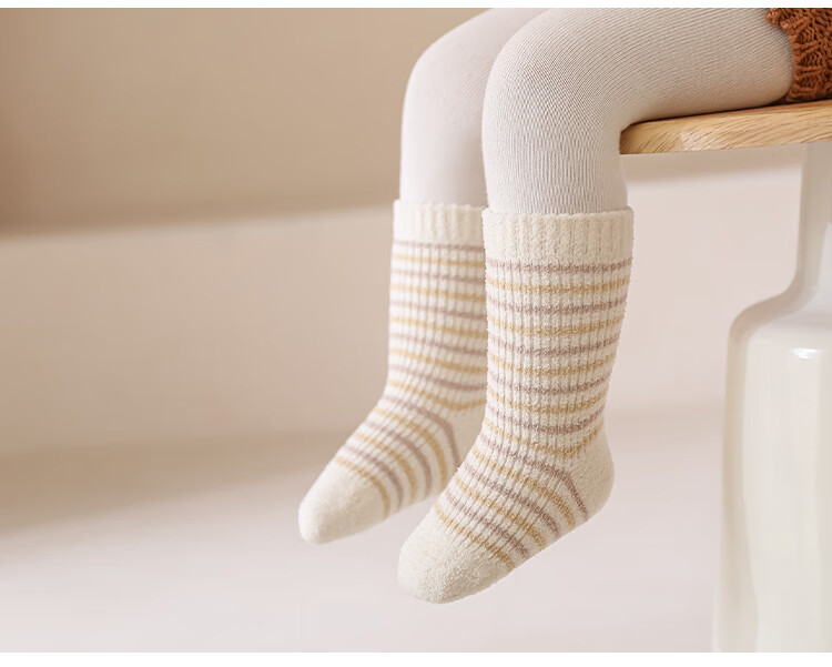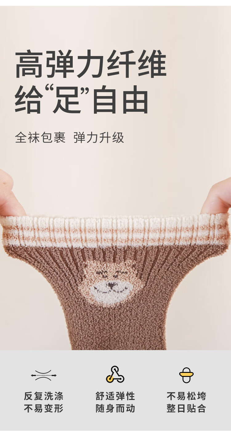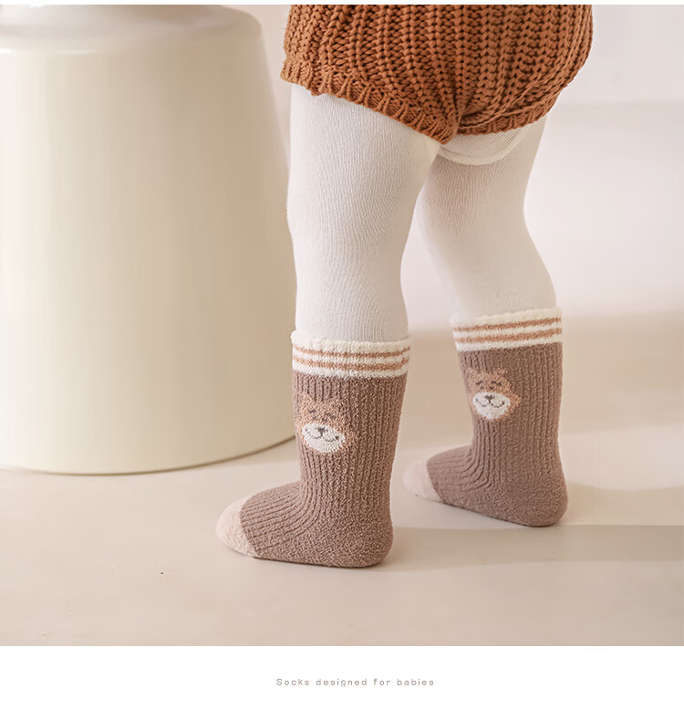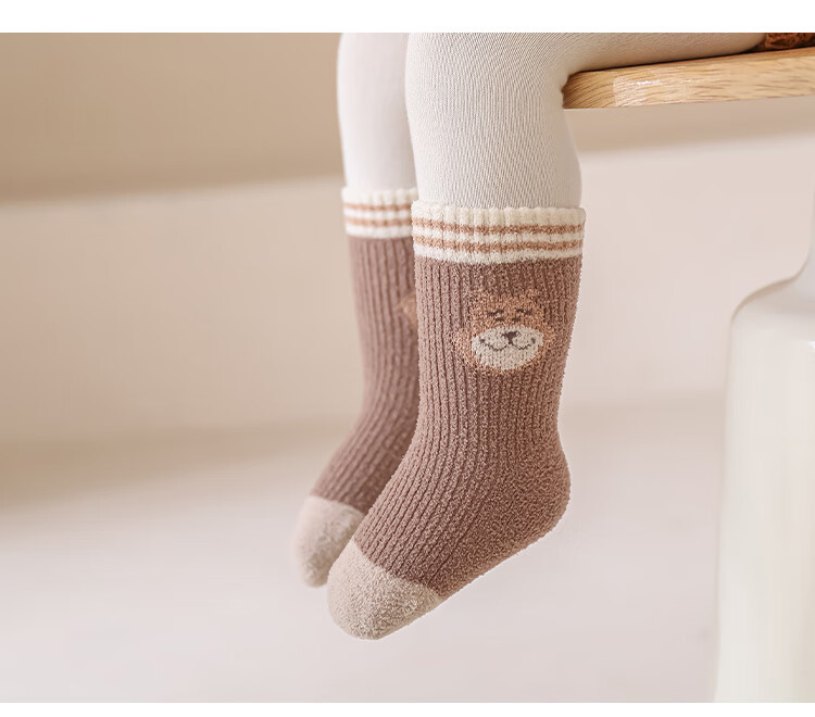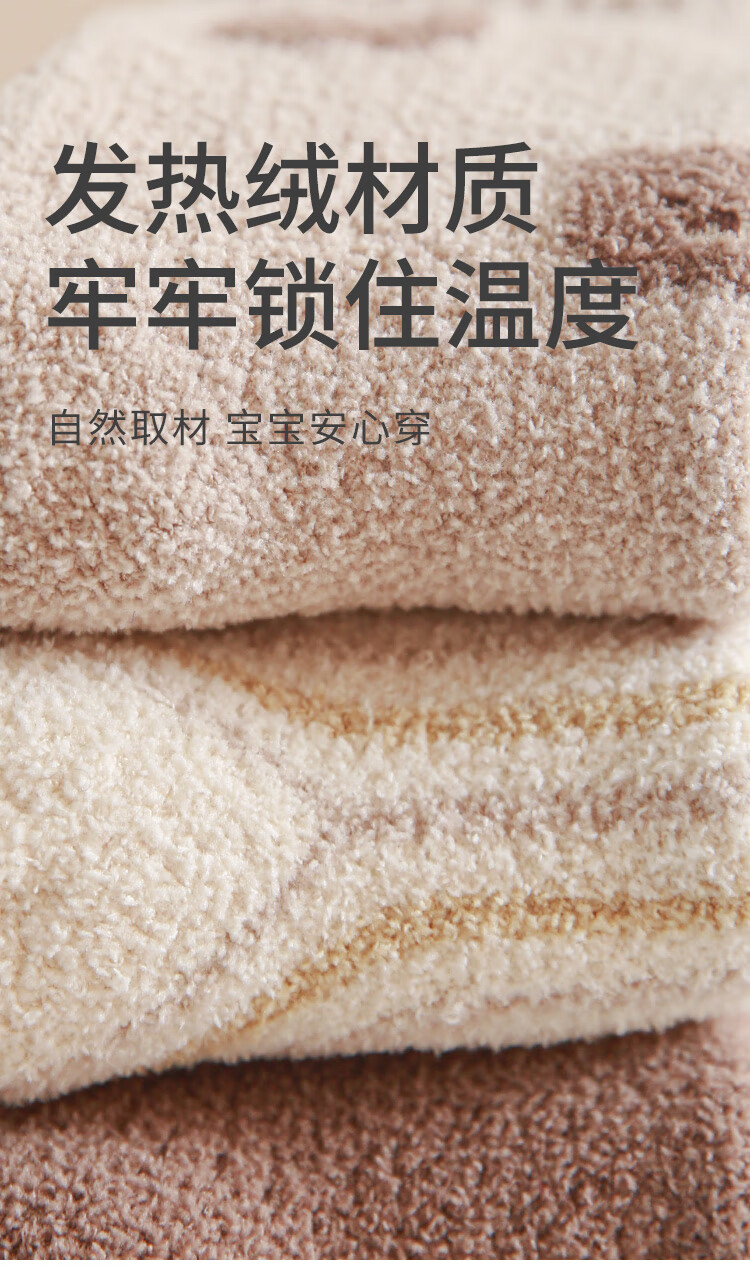 Wuduo cotton 3 pairs of baby socks cartoon 10A antibacterial children's mid-calf socks plus velvet warm infant socks