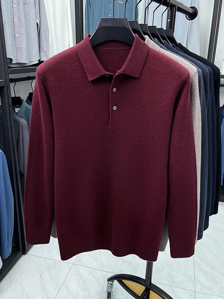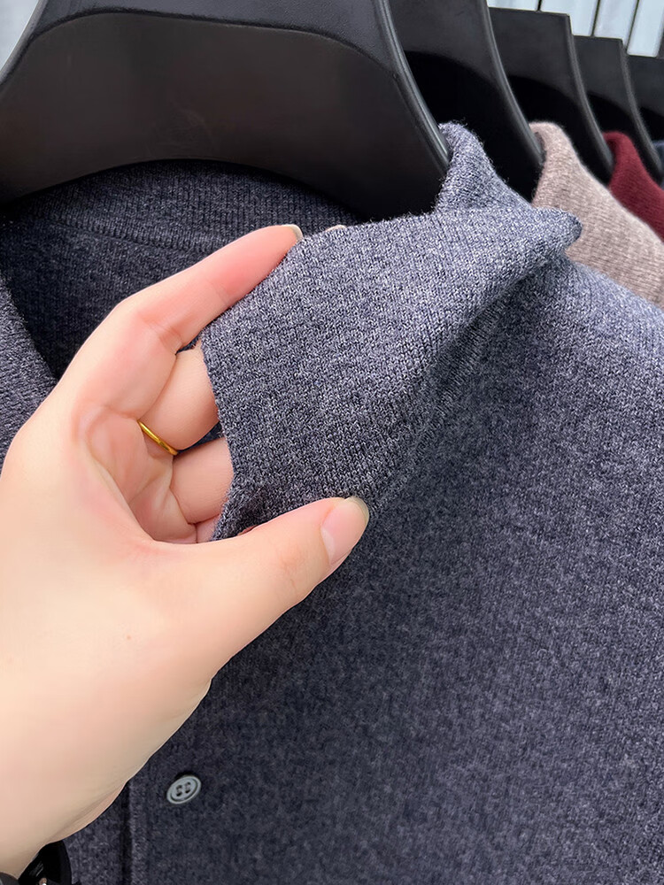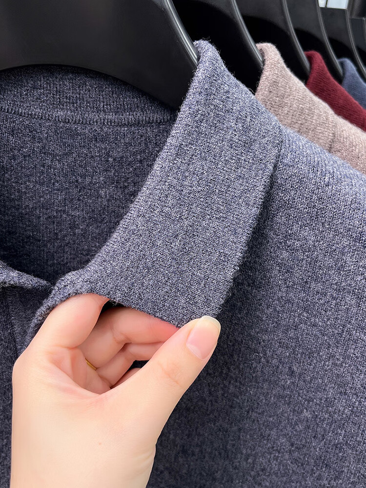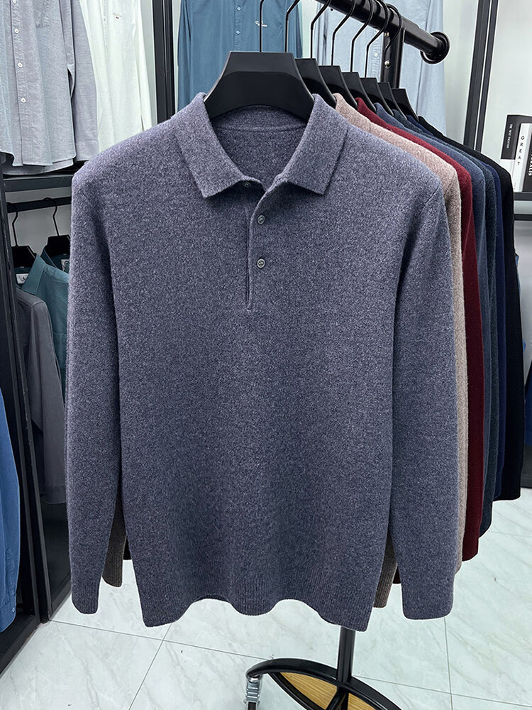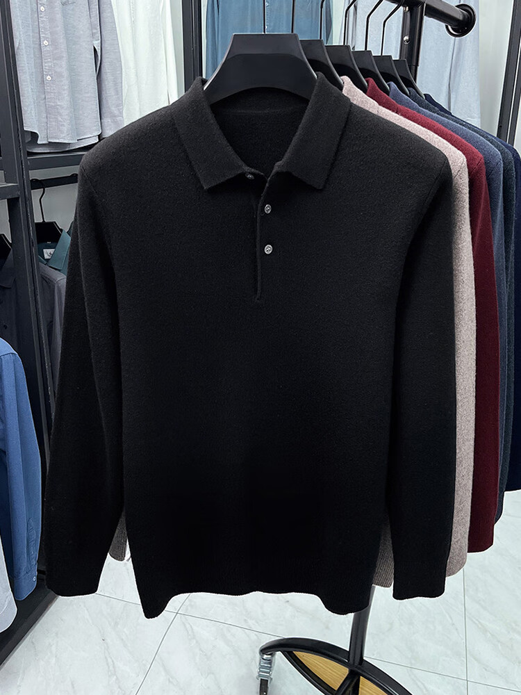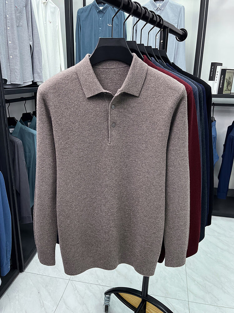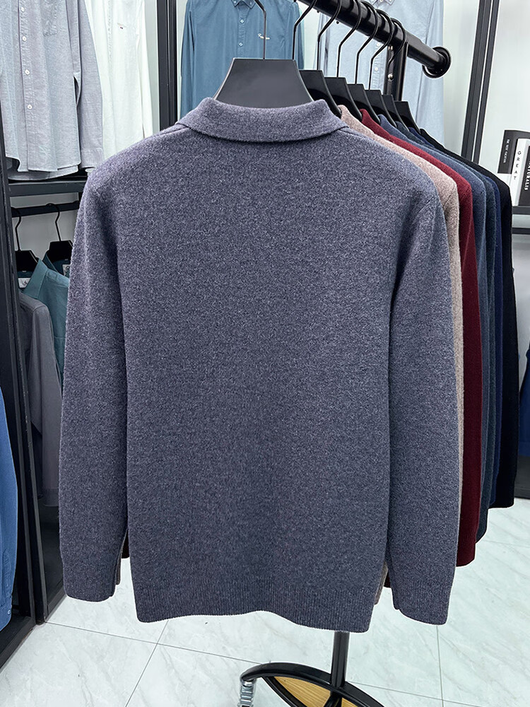 Hengyuanxiang 100, мужской однотонный свитер среднего возраста из чистой шерсти с лацканами на осень и зиму, свитер с утолщенным низом