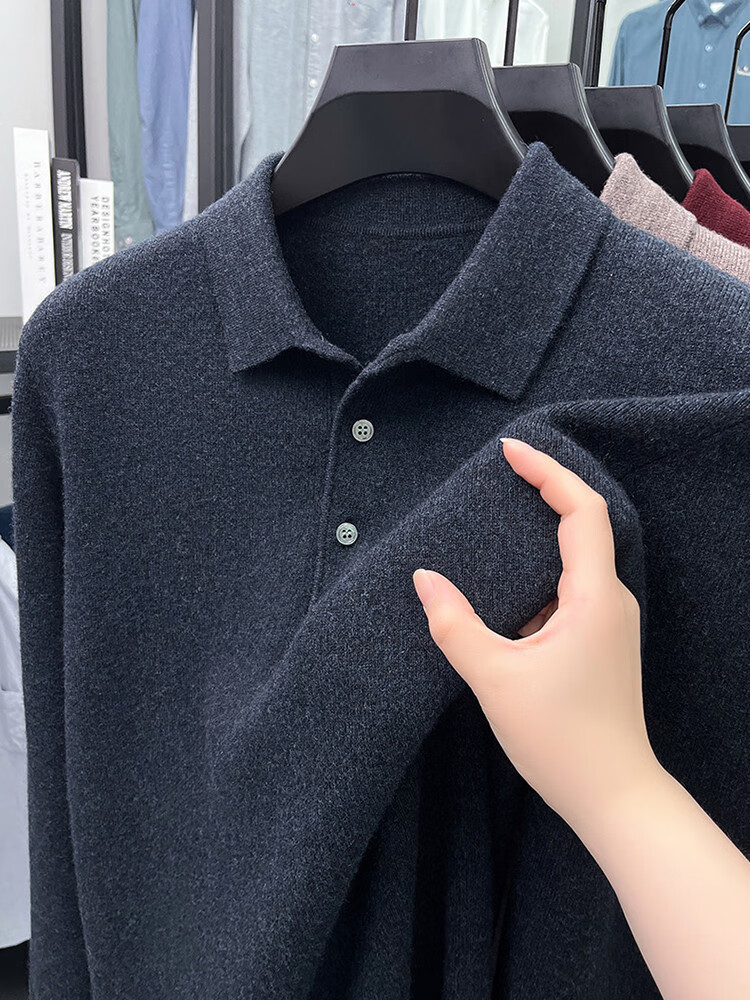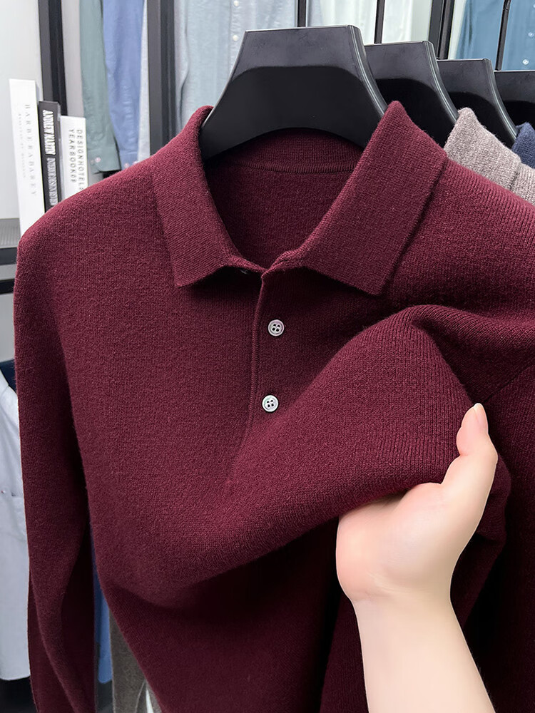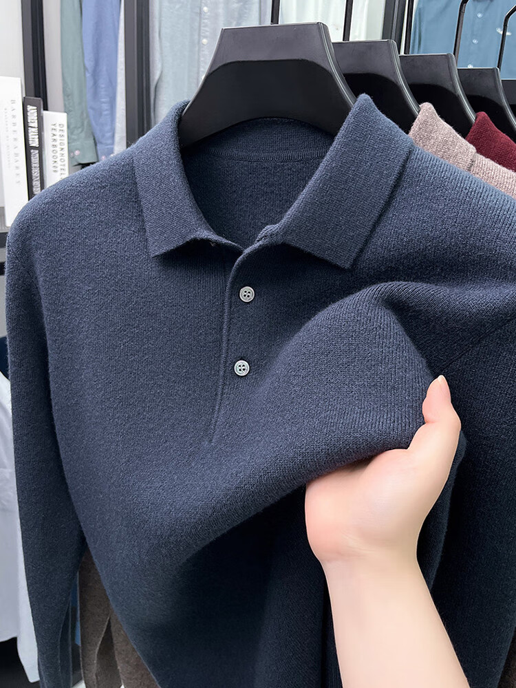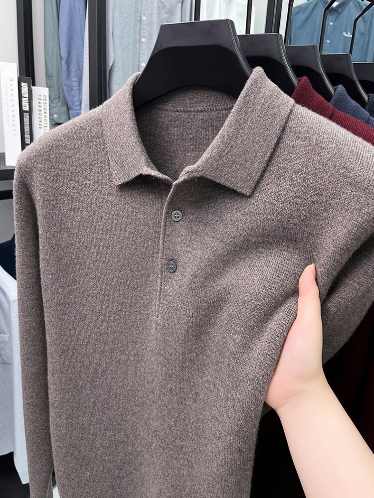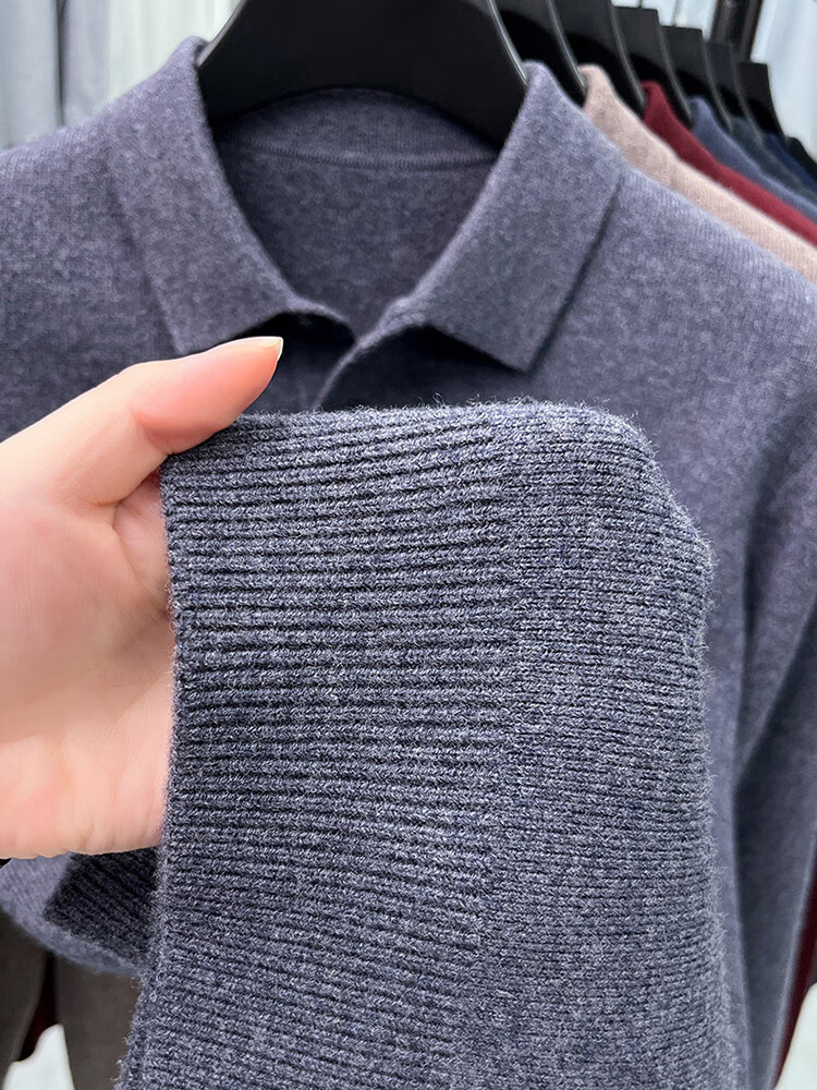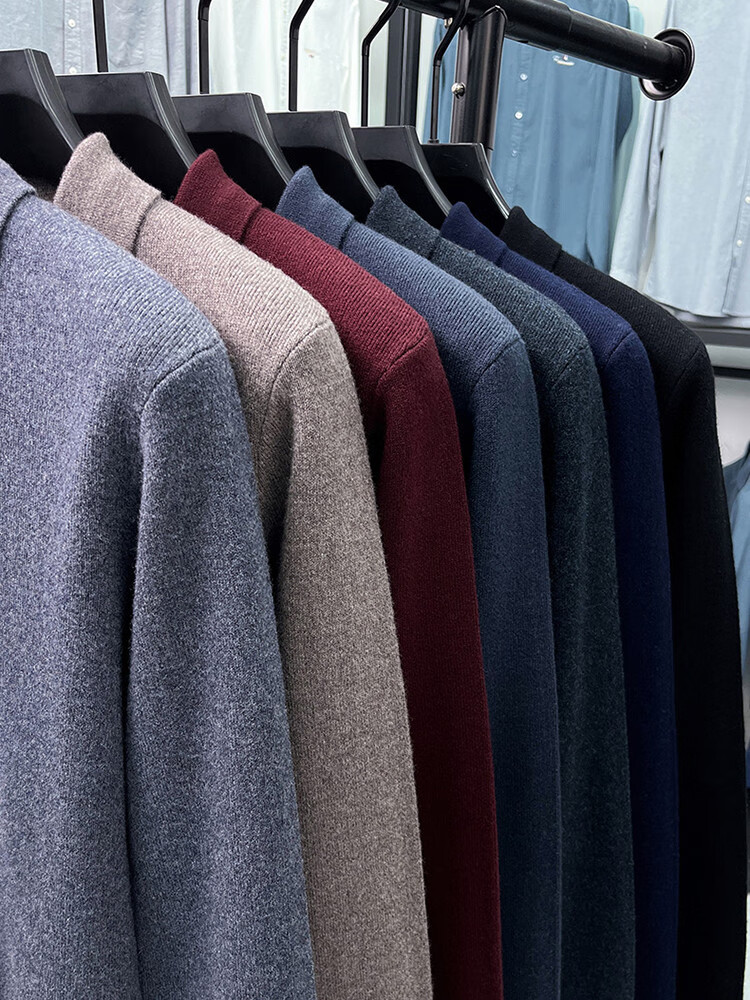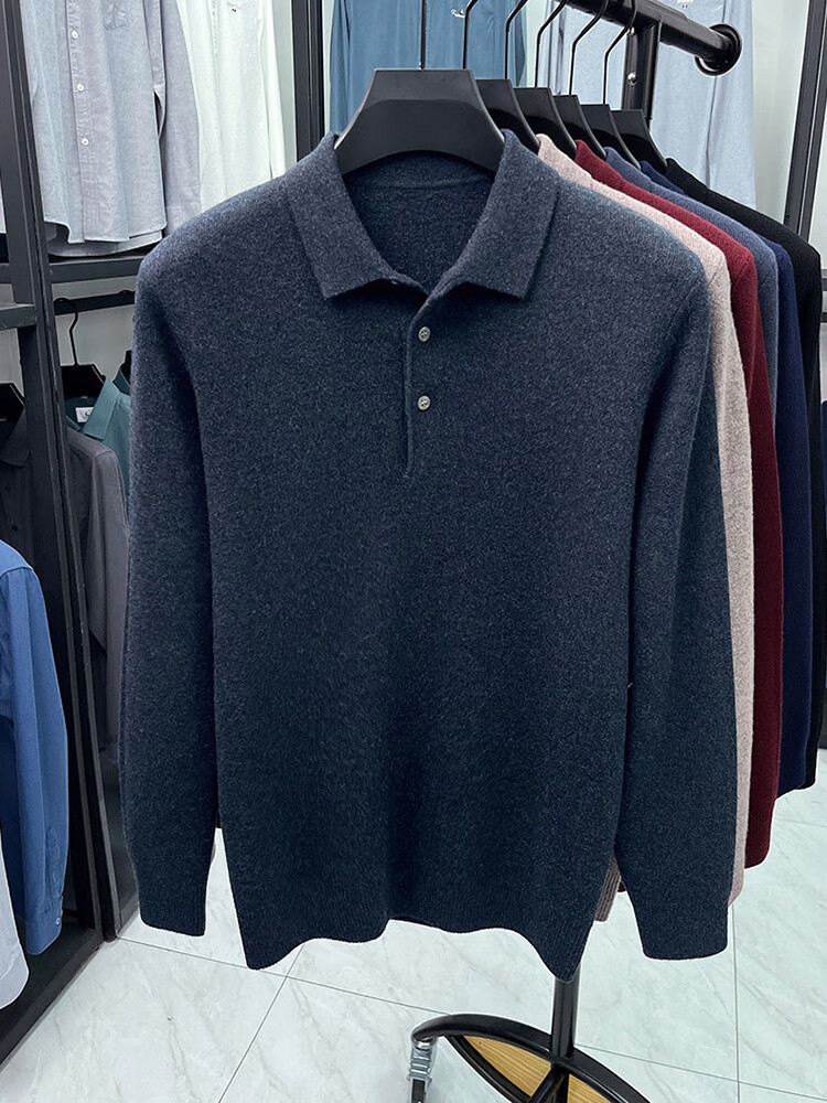 Hengyuanxiang 100, мужской однотонный свитер среднего возраста из чистой шерсти с лацканами на осень и зиму, свитер с утолщенным низом