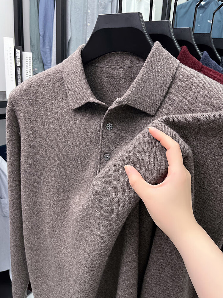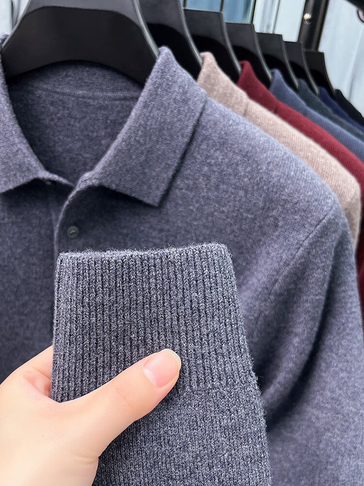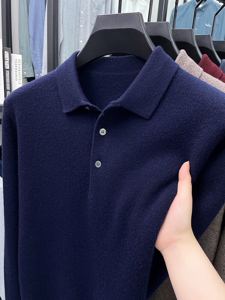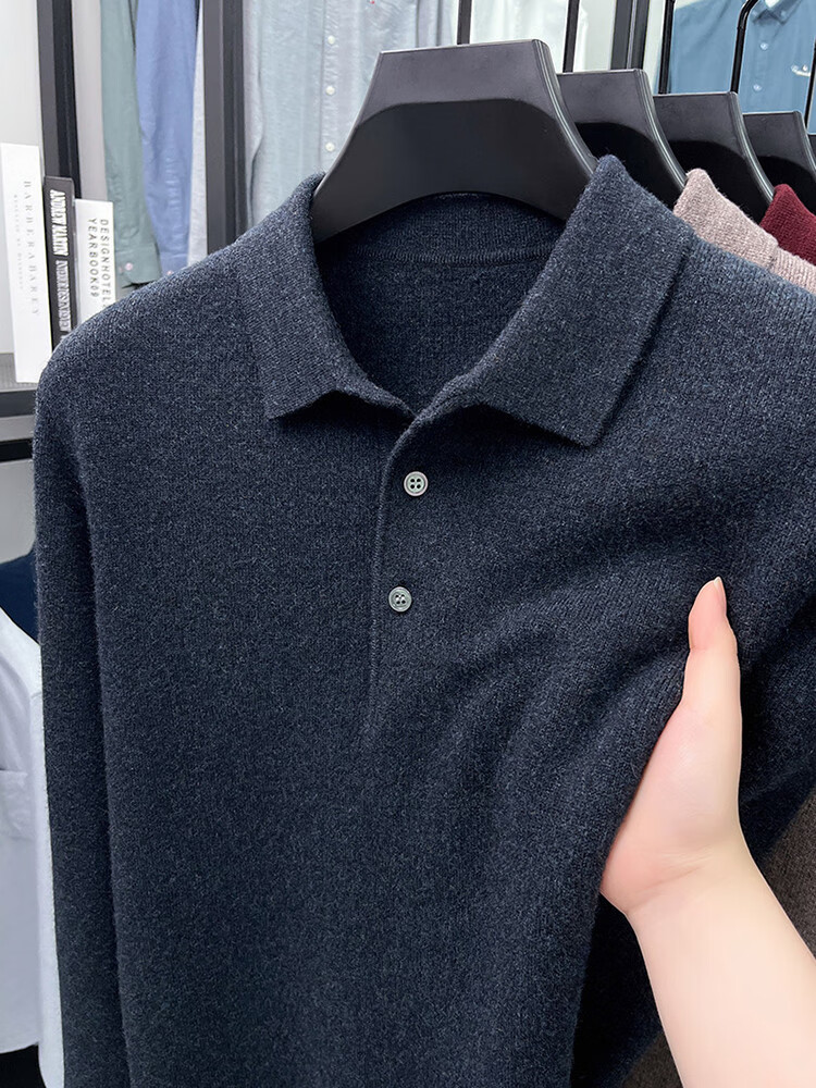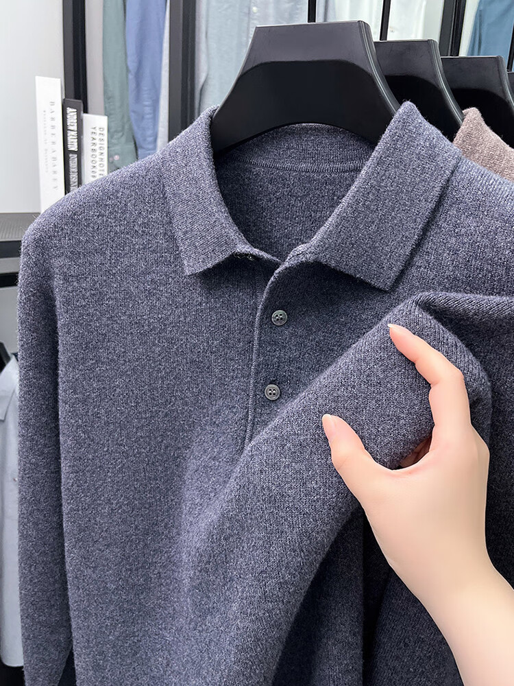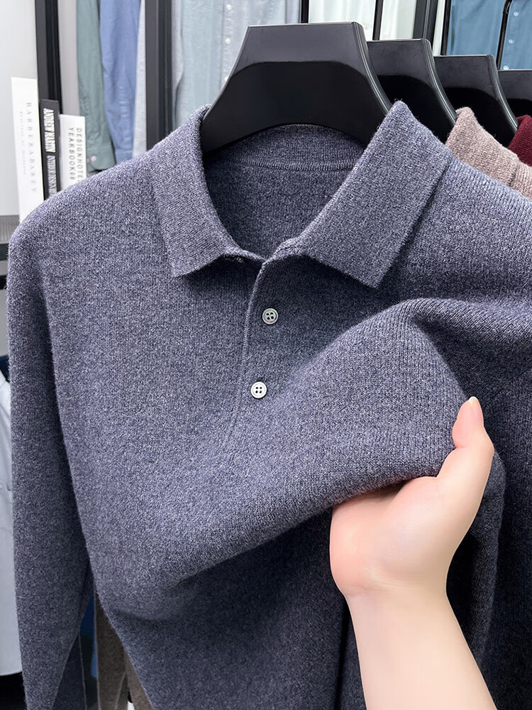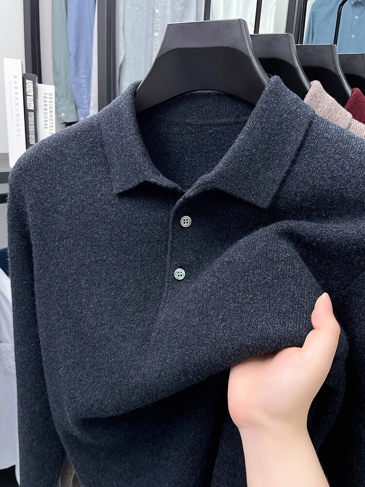 Hengyuanxiang 100, мужской однотонный свитер среднего возраста из чистой шерсти с лацканами на осень и зиму, свитер с утолщенным низом