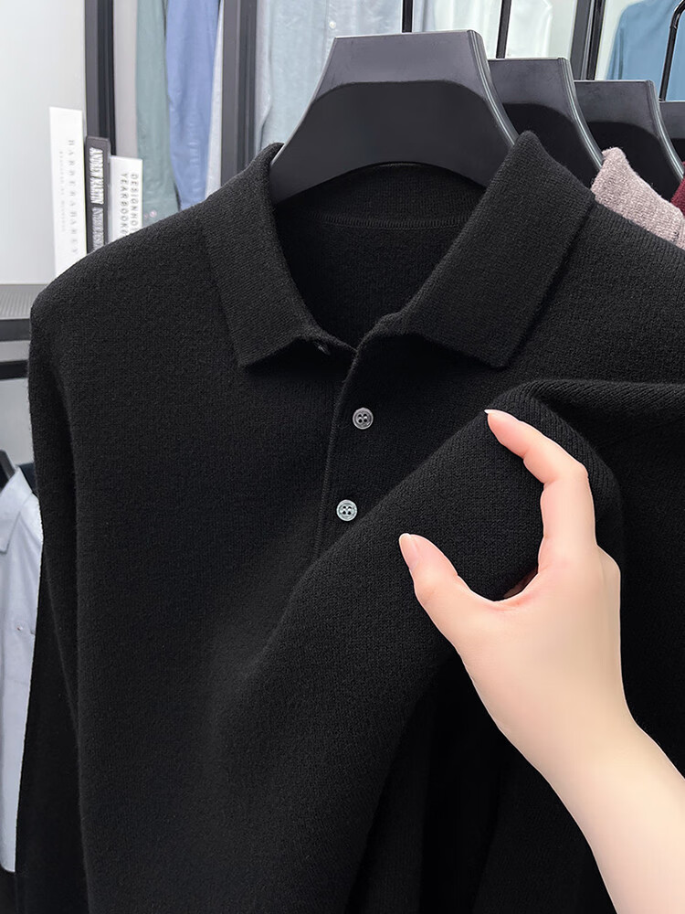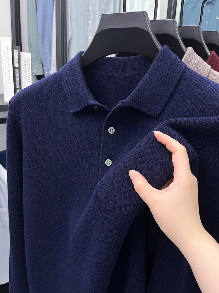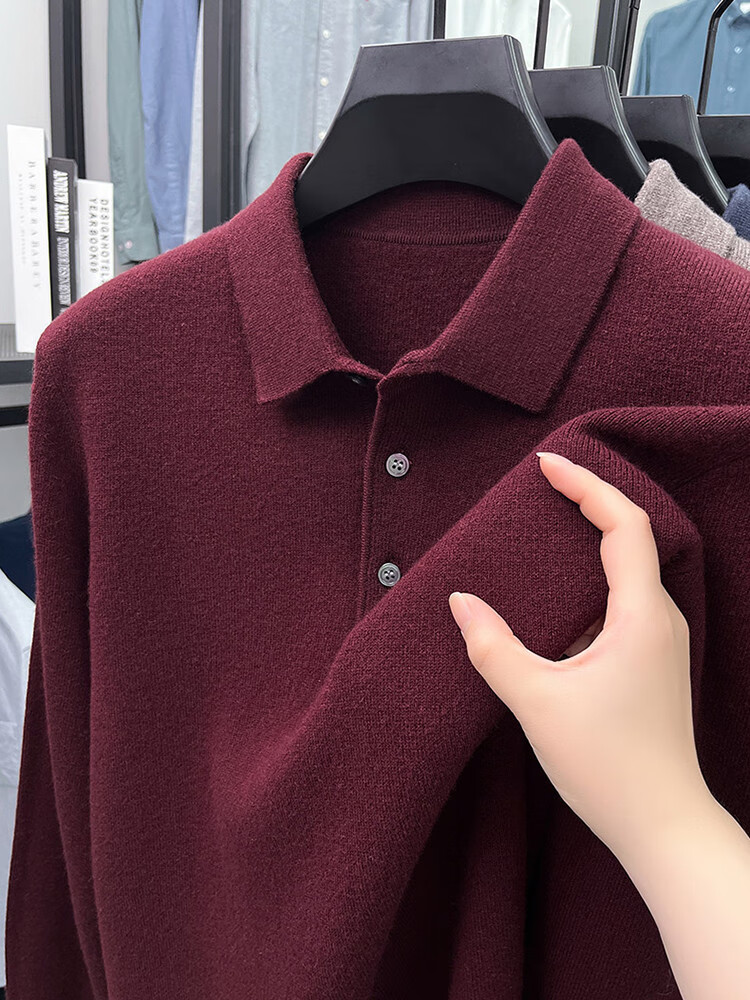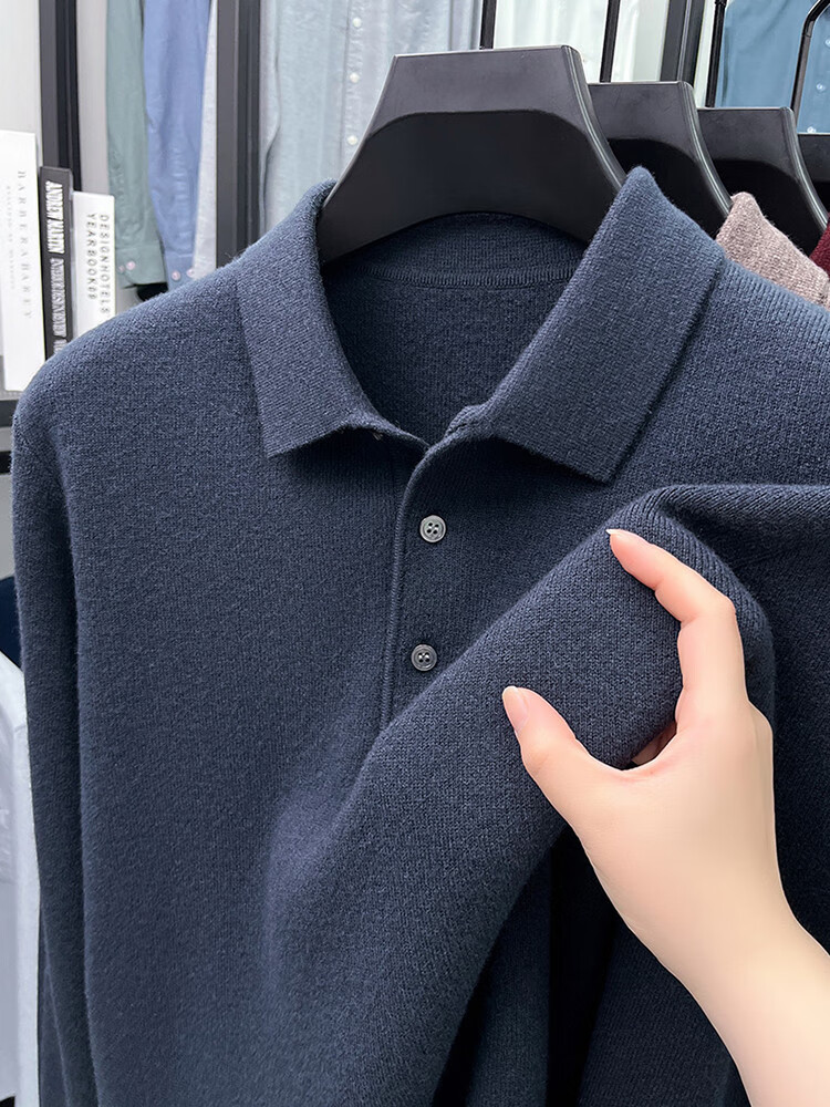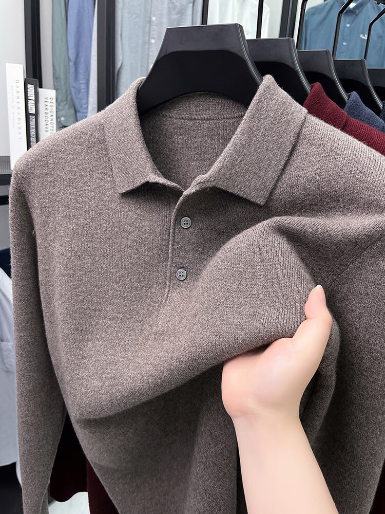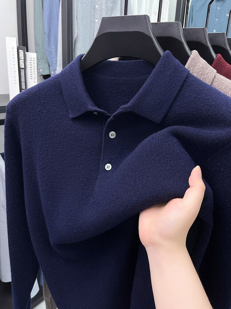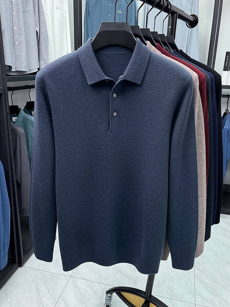 Hengyuanxiang 100, мужской однотонный свитер среднего возраста из чистой шерсти с лацканами на осень и зиму, свитер с утолщенным низом