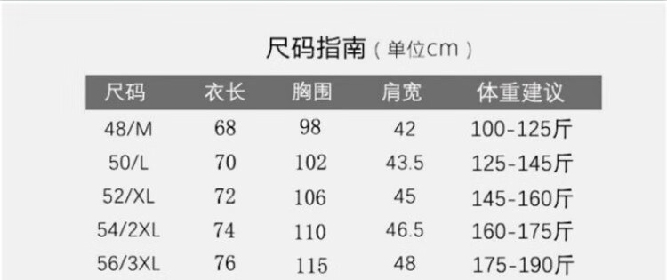 China (cm) 165 / 88-90 170 / 96-98 175 / 108-110 180 / 118-122 185 / 126-130
