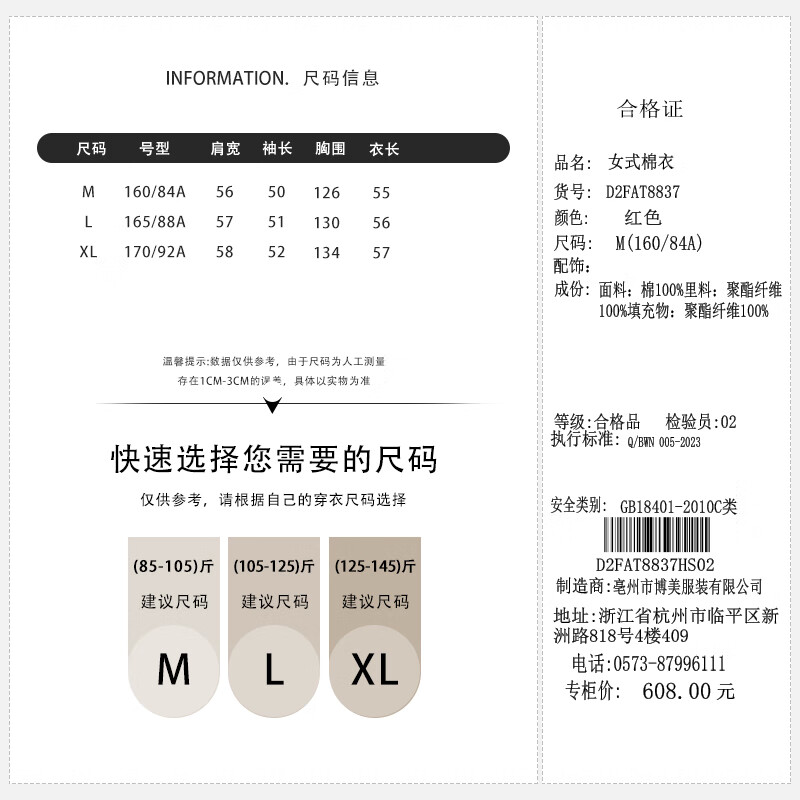 China (cm) 160-165/84-86 165-170 / 88-90 167-172 / 92-96 168-173 / 98-102 170-176 / 106-110