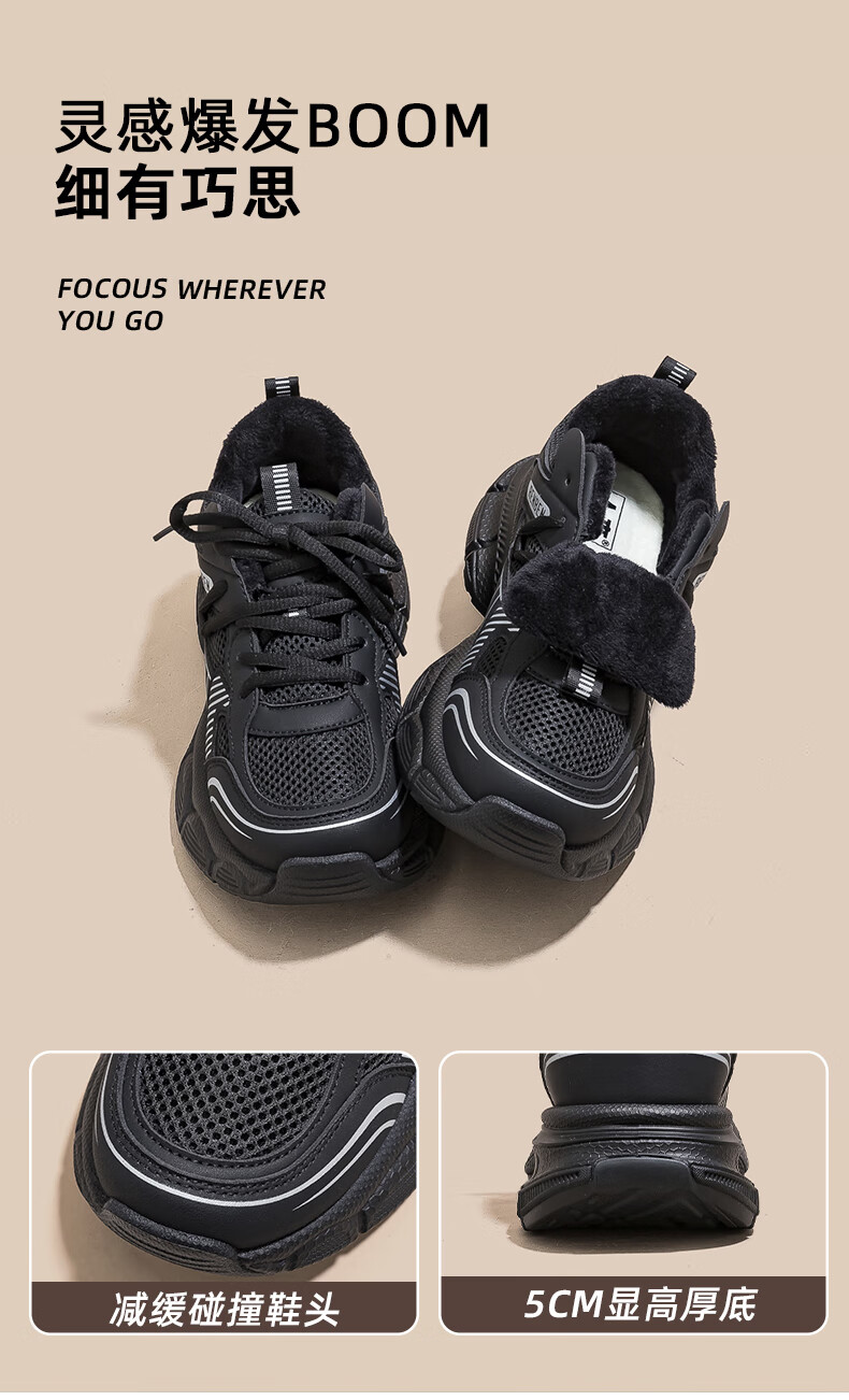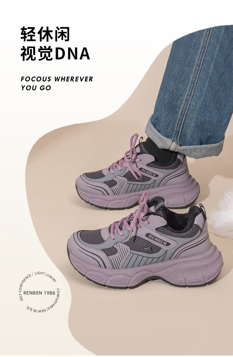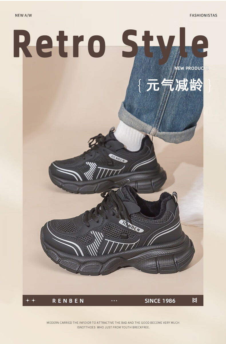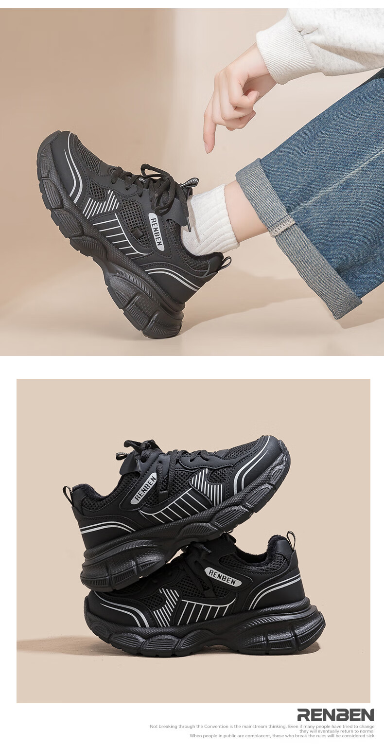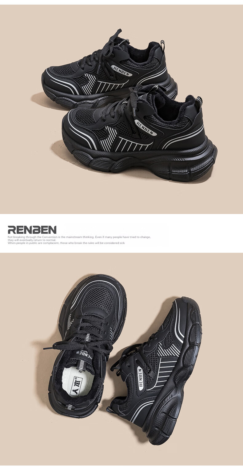 RENBEN women's winter warm plus fleece shoes 2025 new versatile student casual sports shoes