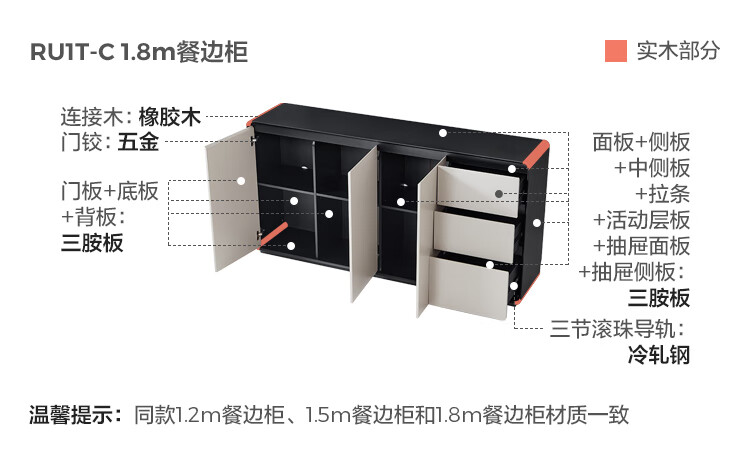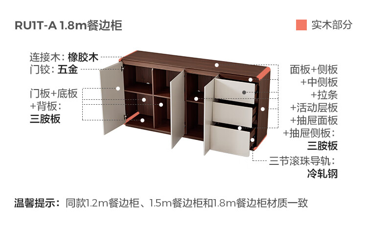 Lin's home sideboard integrated wall storage storage cabinet bucket cabinet living room kitchen household Lin's Wood Industry RU1T