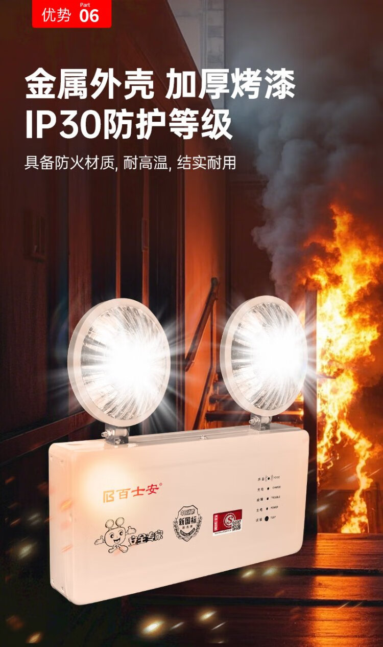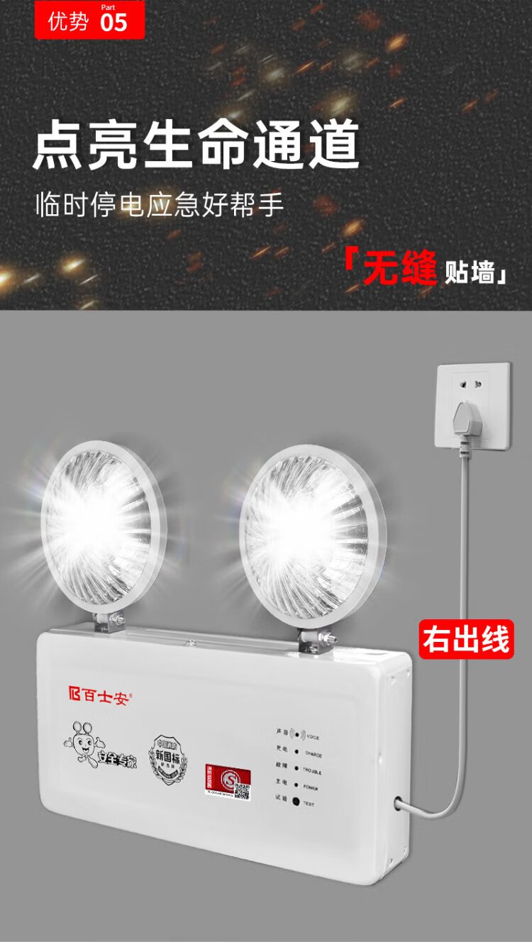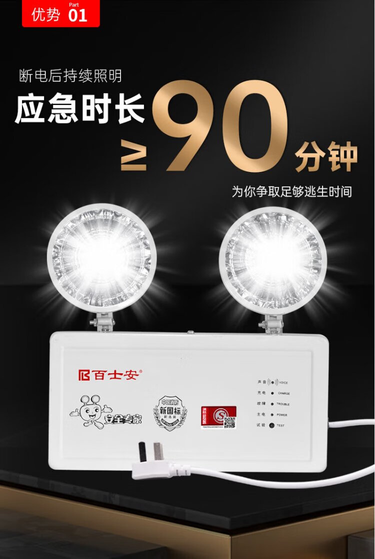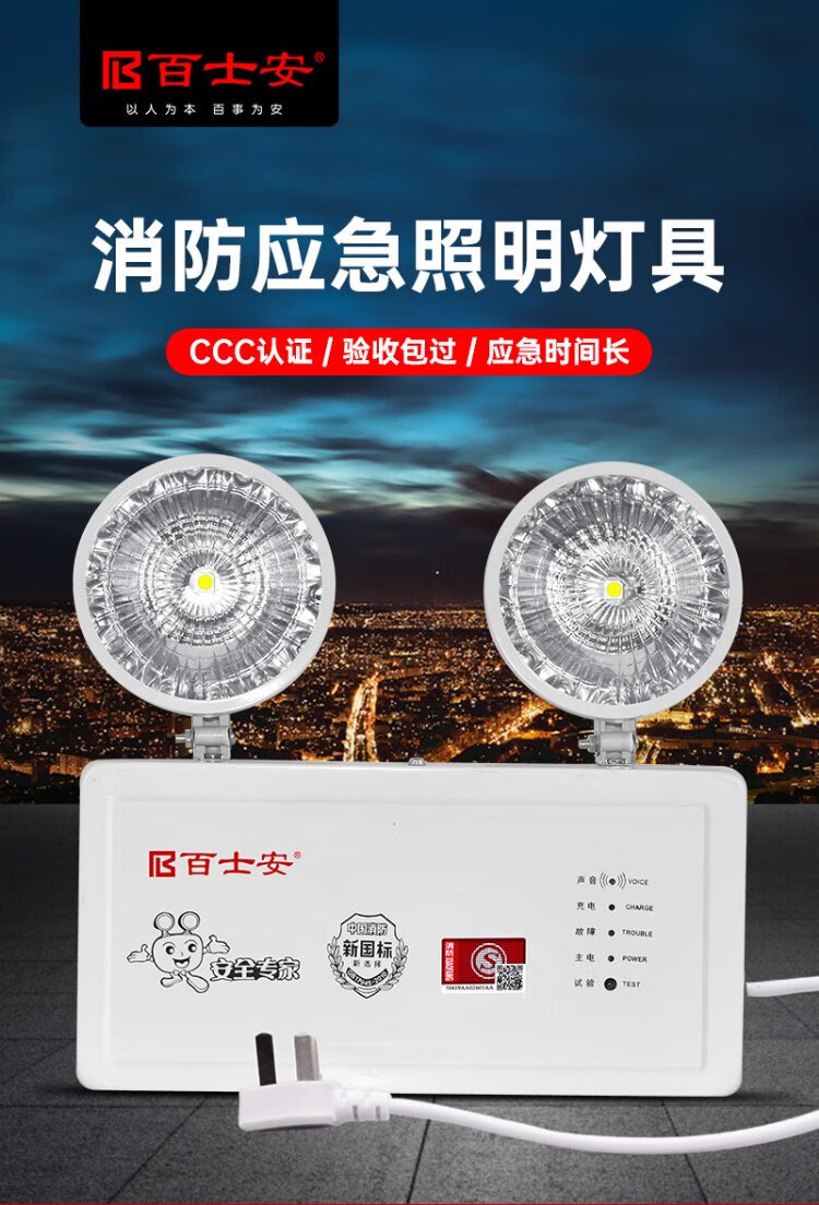 Baishian Emergency Lighting National Standard Fire Emergency Light Double-head Rechargeable Lighting Commercial School Hotel Corridor Evacuation Safety Exit Indicator
