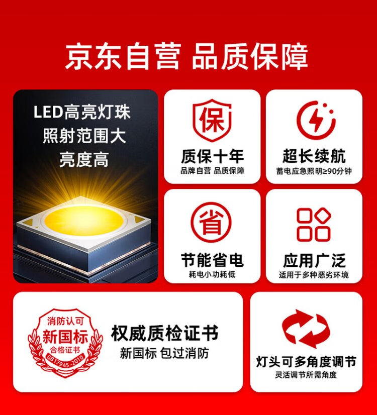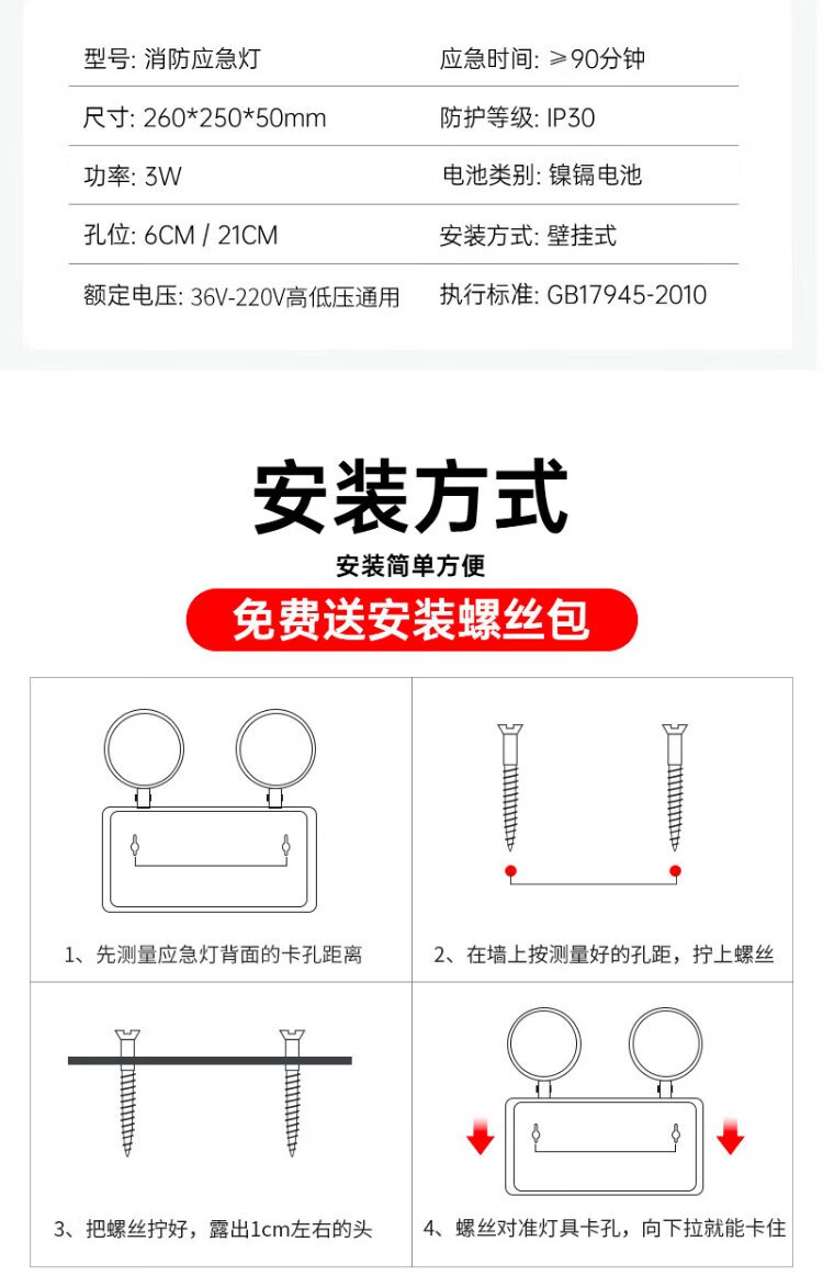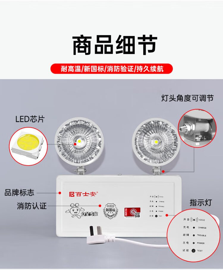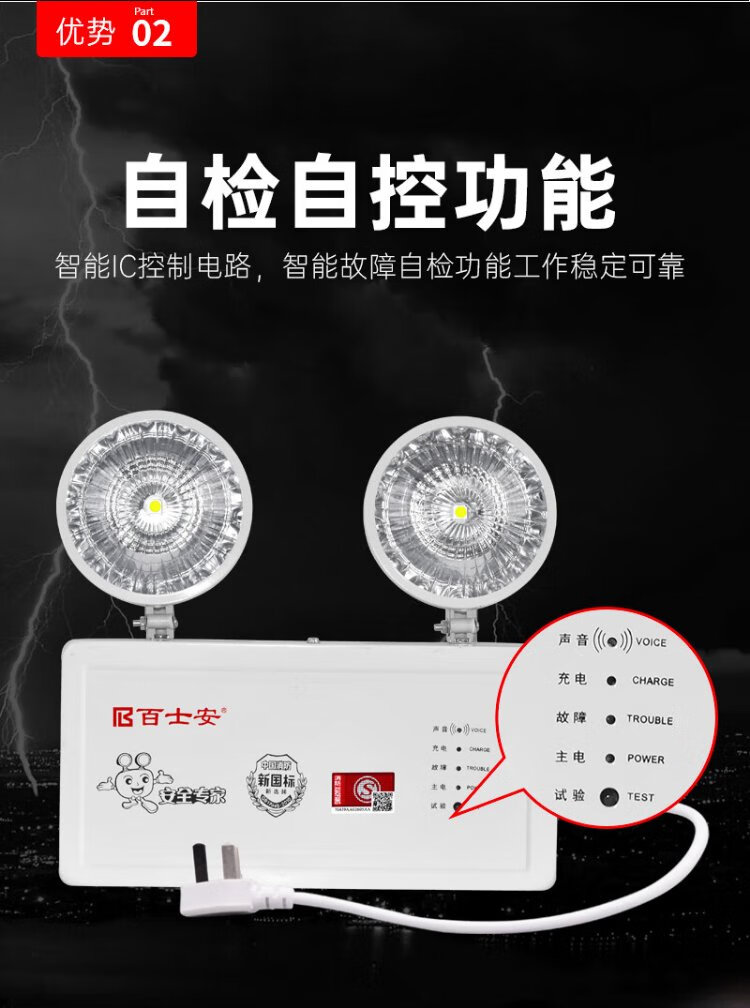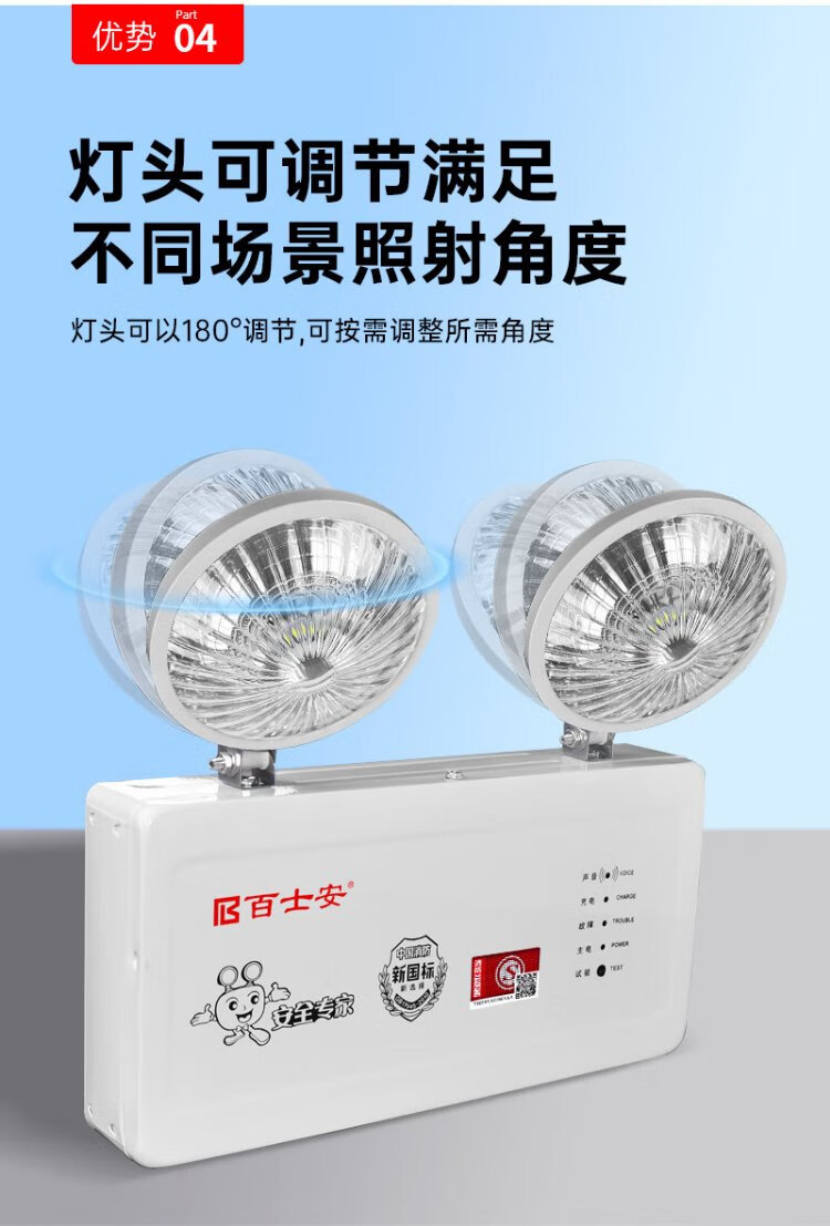 Baishian Emergency Lighting National Standard Fire Emergency Light Double-head Rechargeable Lighting Commercial School Hotel Corridor Evacuation Safety Exit Indicator