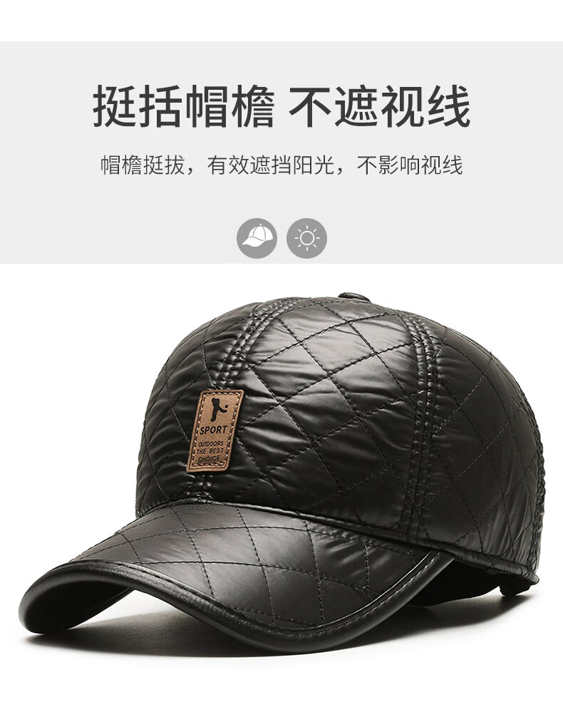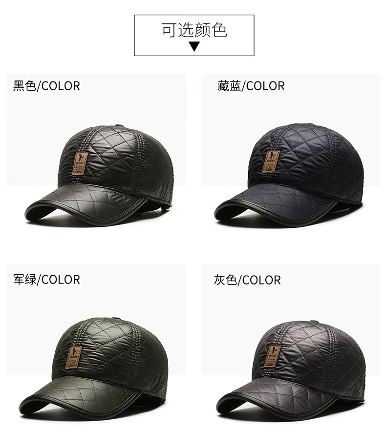 Colorful hat men's autumn and winter baseball cap plus velvet warm peaked cap to protect against cold and ear protection middle-aged casual leather hat dad and grandpa