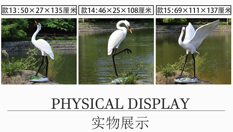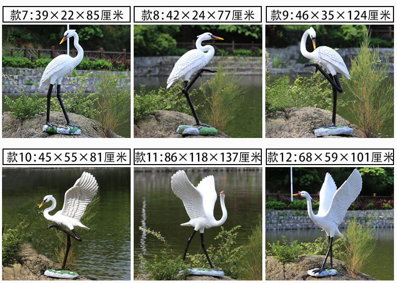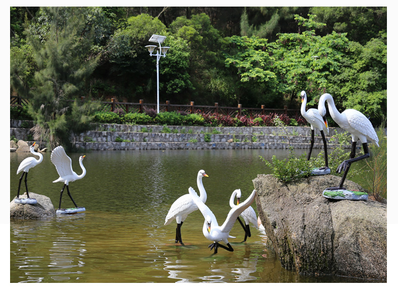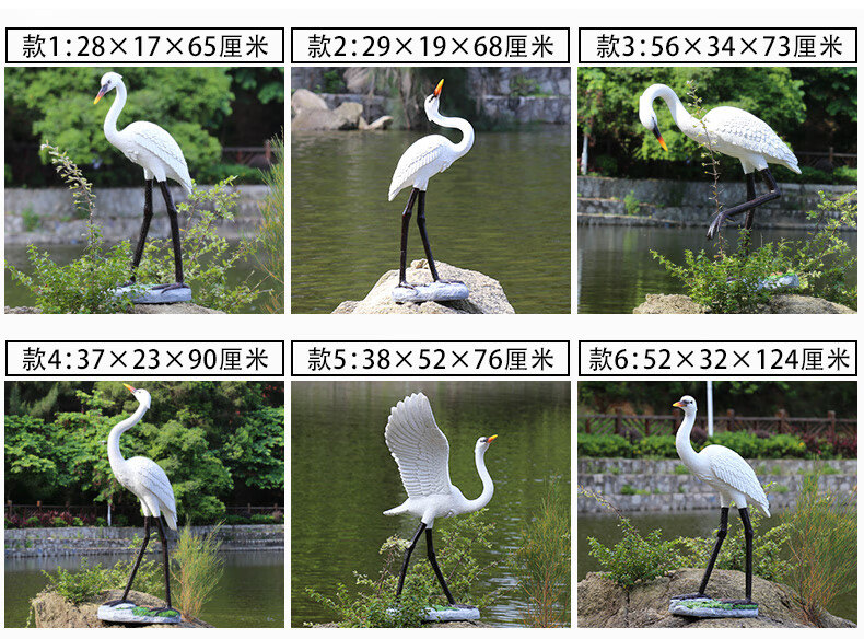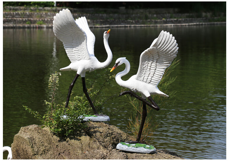 Hongri Guanghui fiberglass simulated crane sculpture outdoor garden forest landscape pool rockery landscaping decoration red-crested egret ornaments style 1 (0.65 meters high)