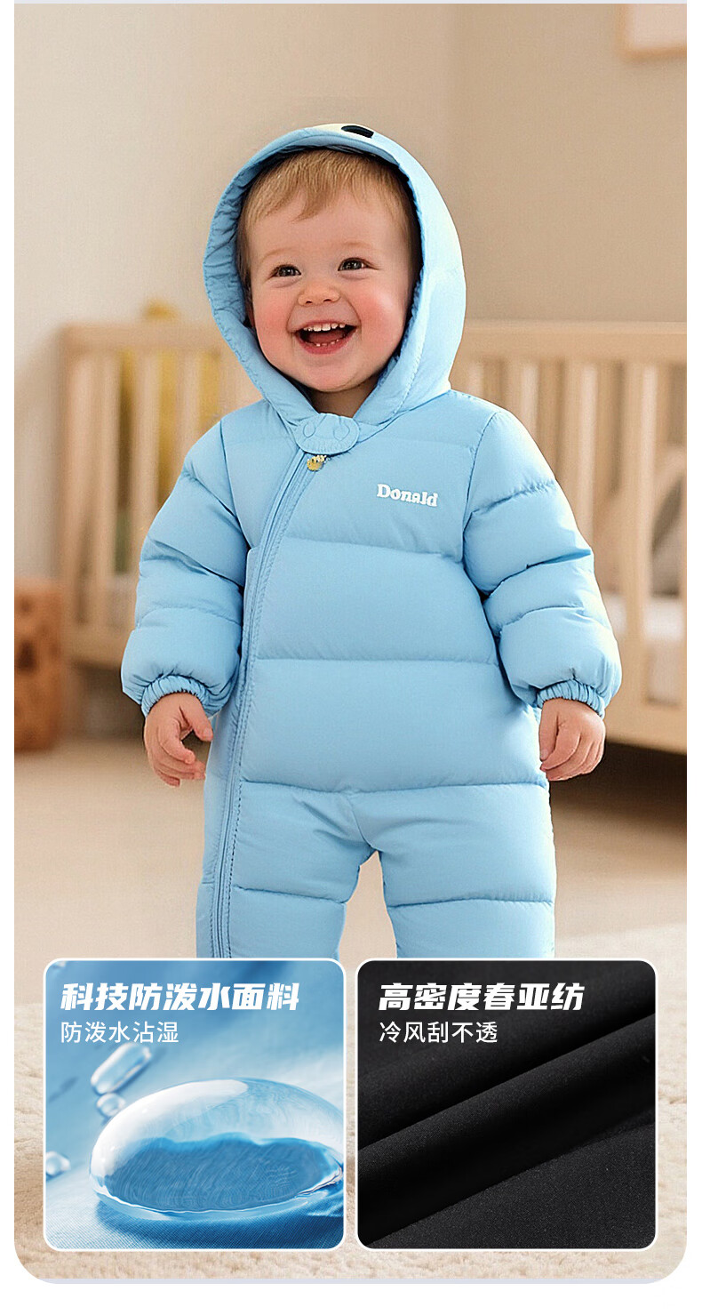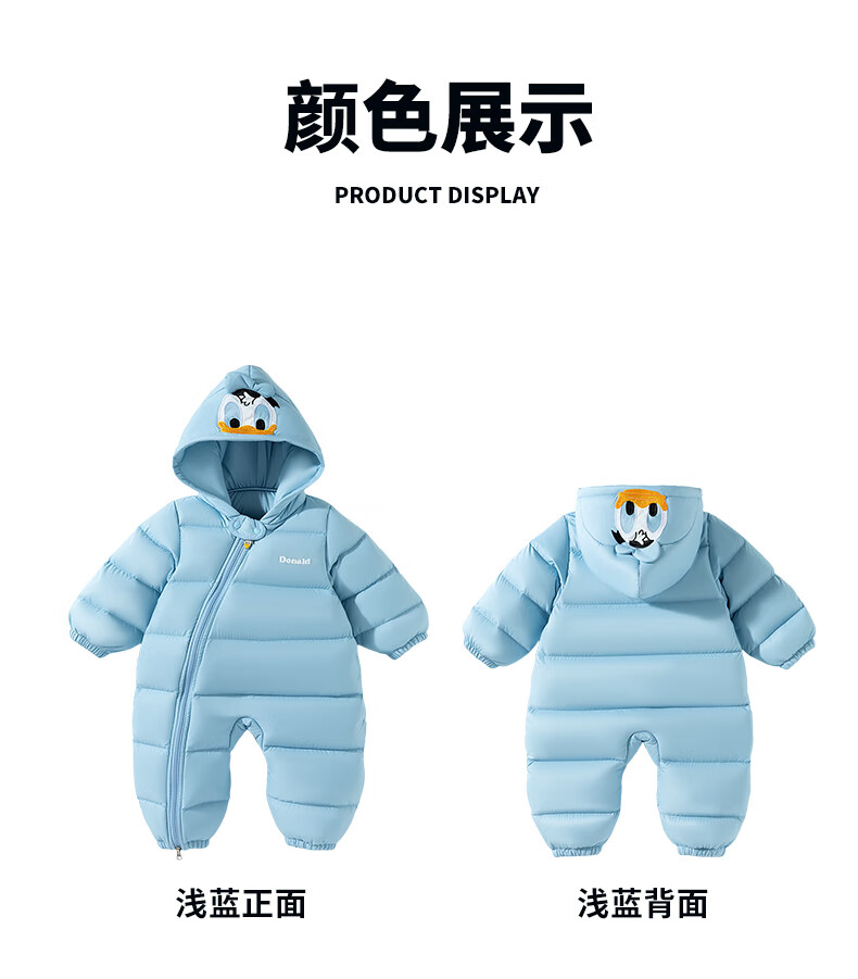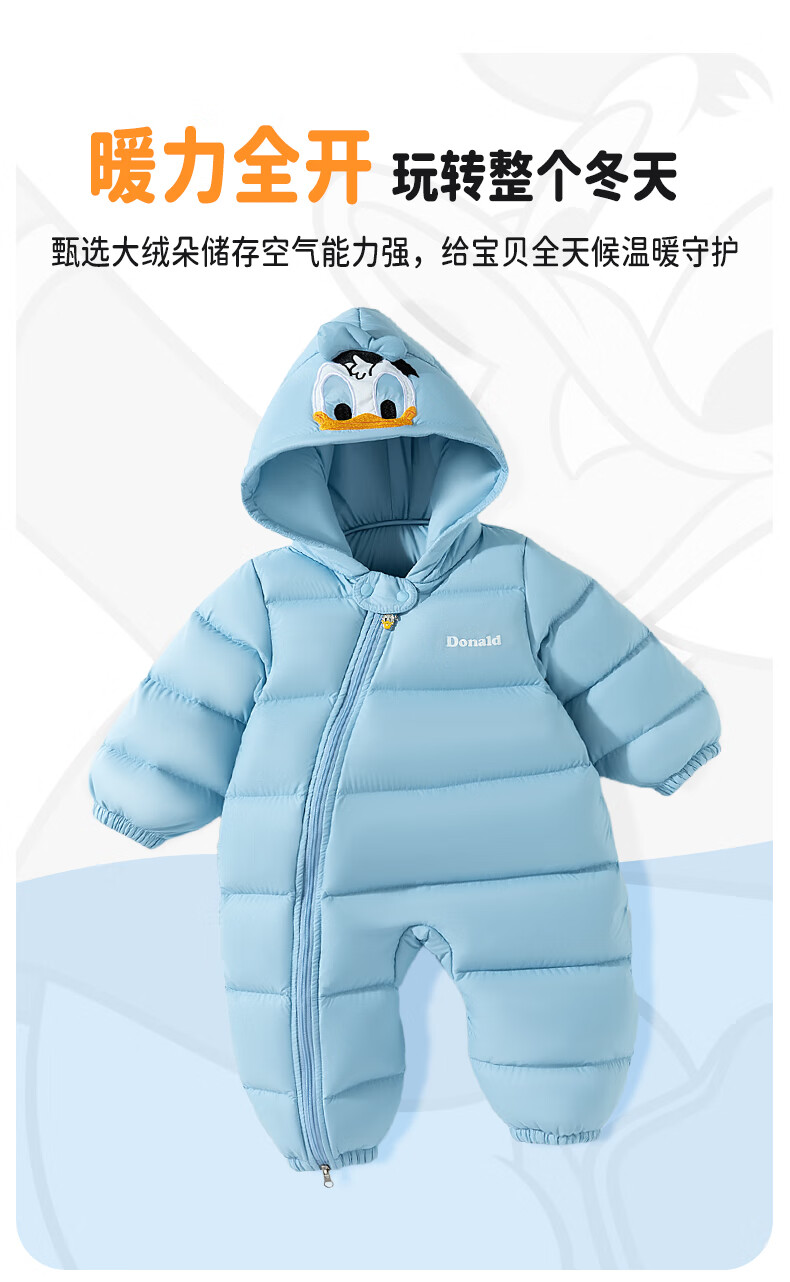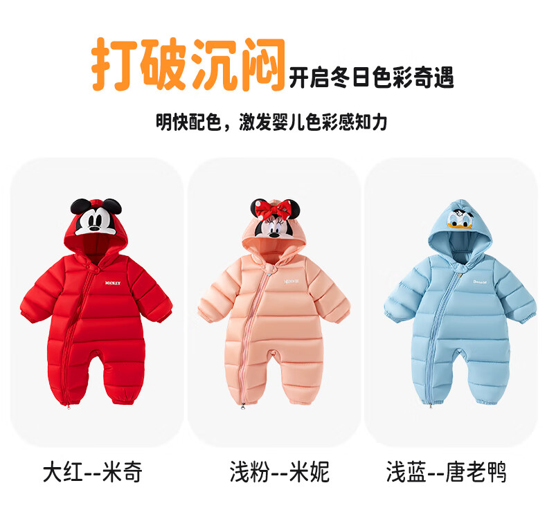 Disney (Disney) winter children's clothing for boys and girls, down jumpsuit, comfortable and warm outdoor hooded romper, red 73cm
