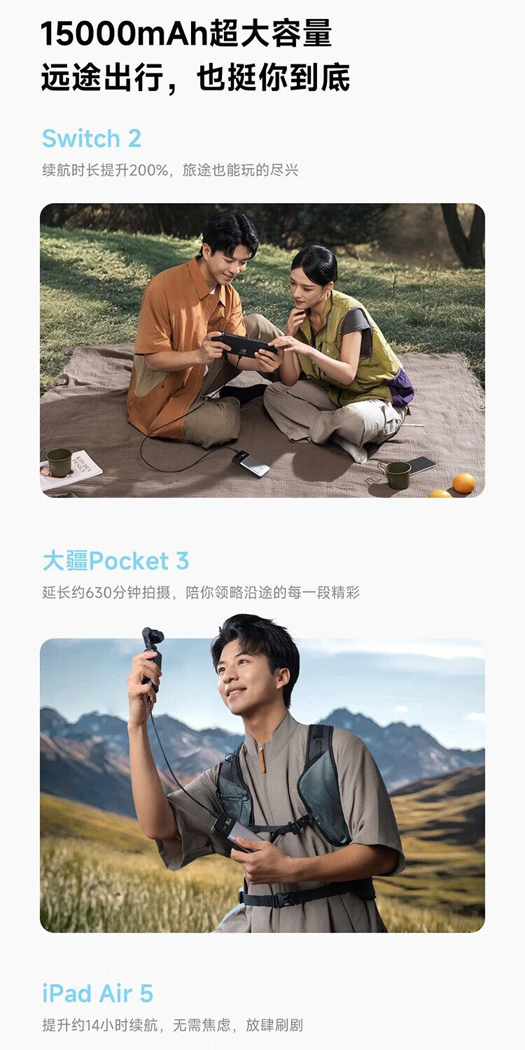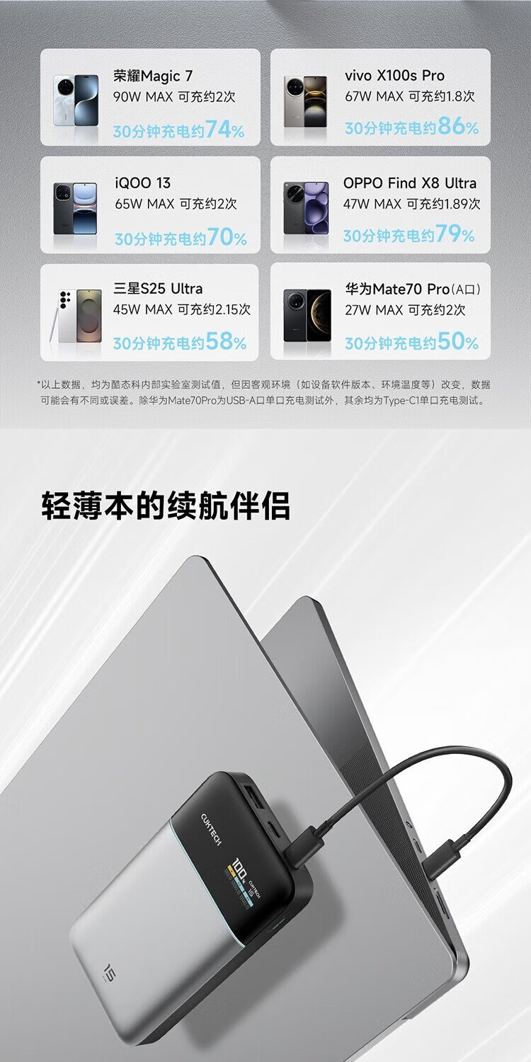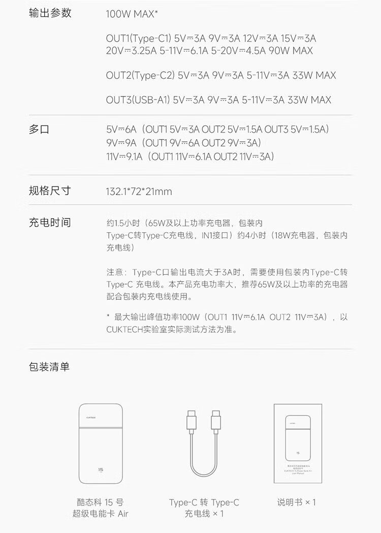 CUKTECH 3C certified for boarding aircraft No. 15 super power card Air power bank 15000 mAh multi-port 100W thin and light suitable for Apple 17 Xiaomi notebook