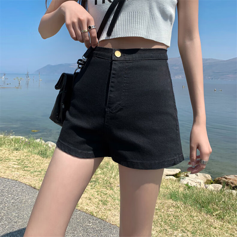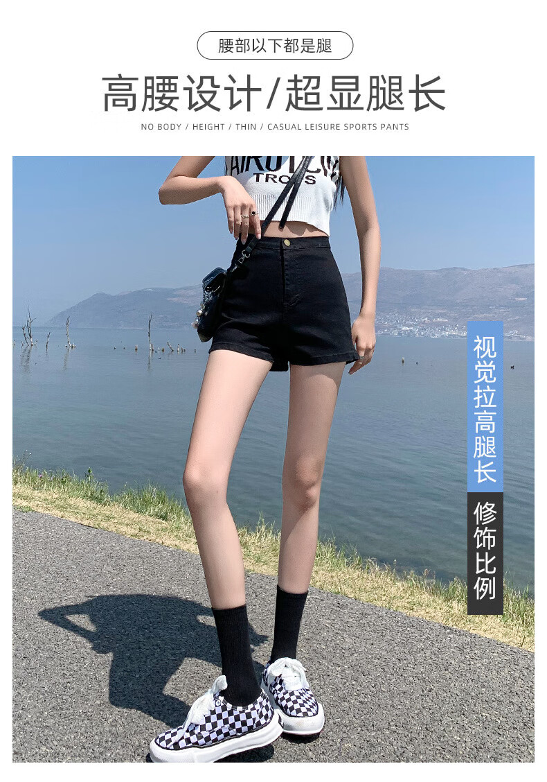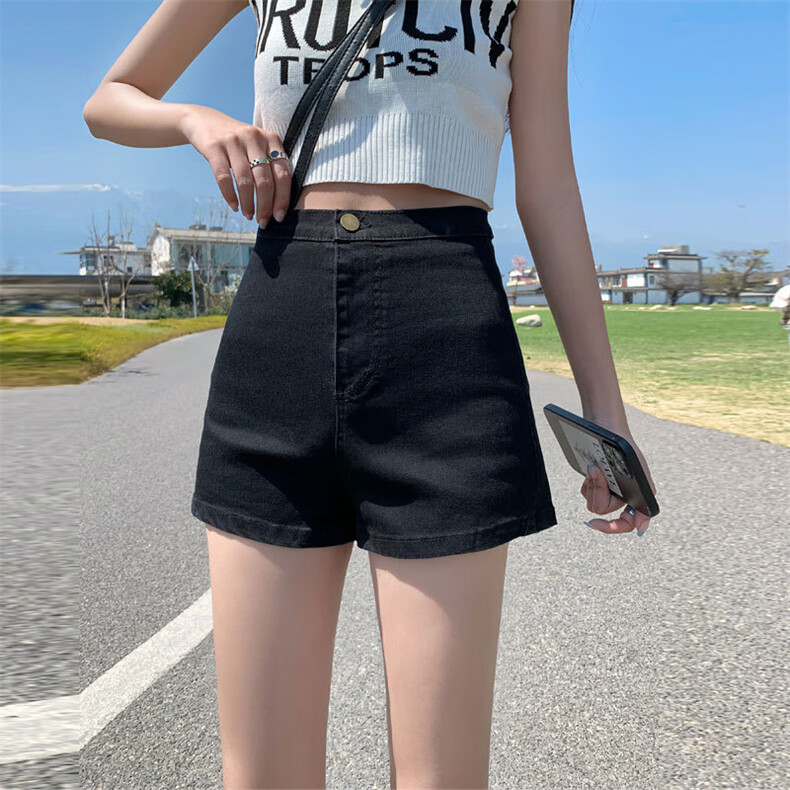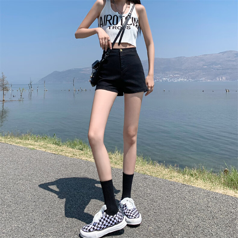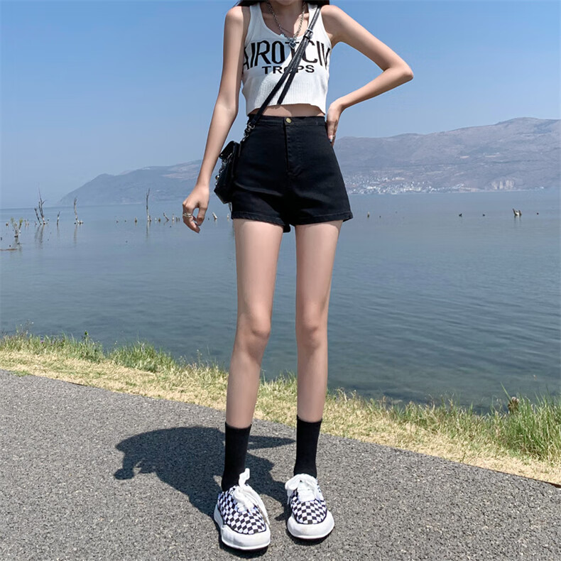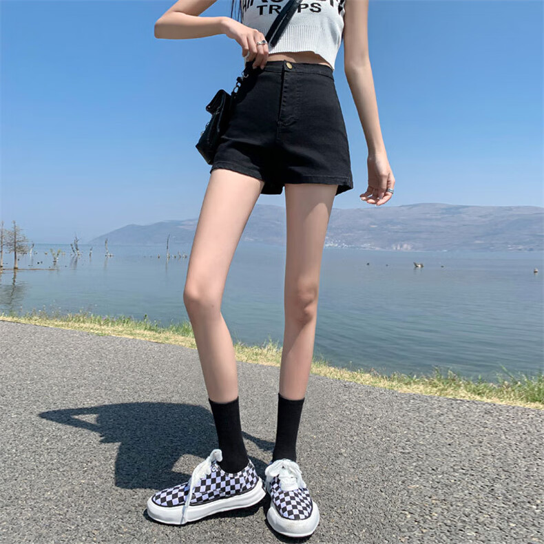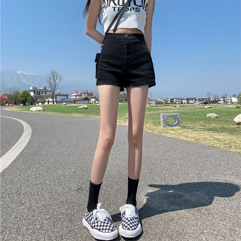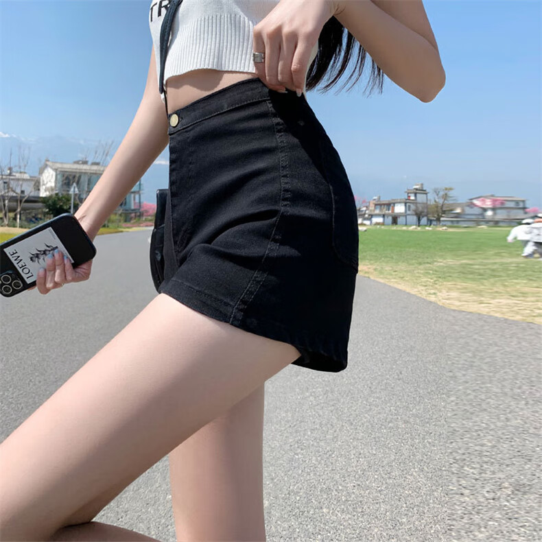Langsha black denim shorts for women summer 2025 new high waist slim ins hot girl style outer wear elastic hot pants