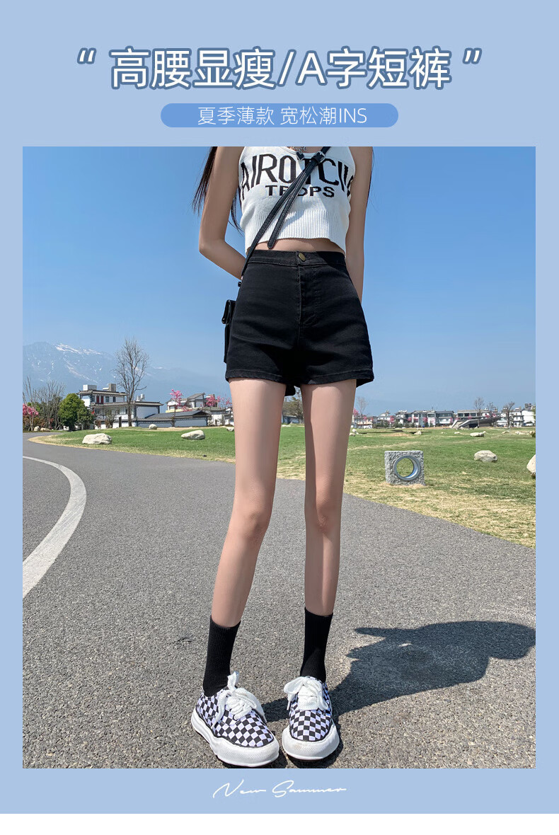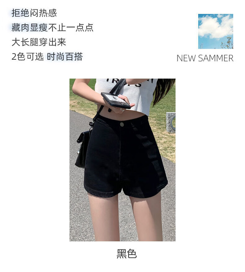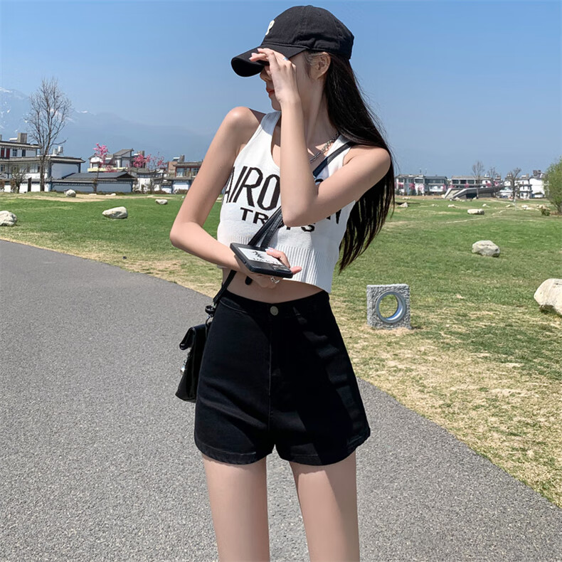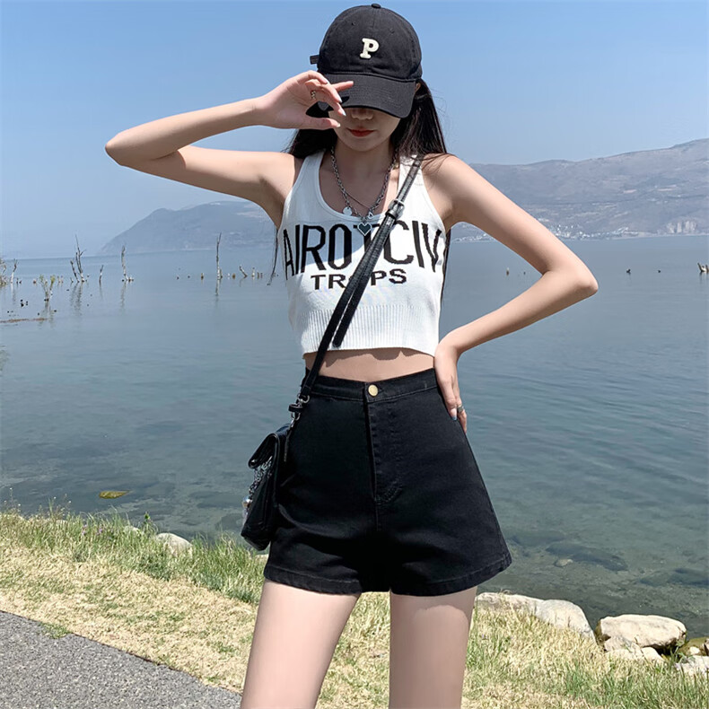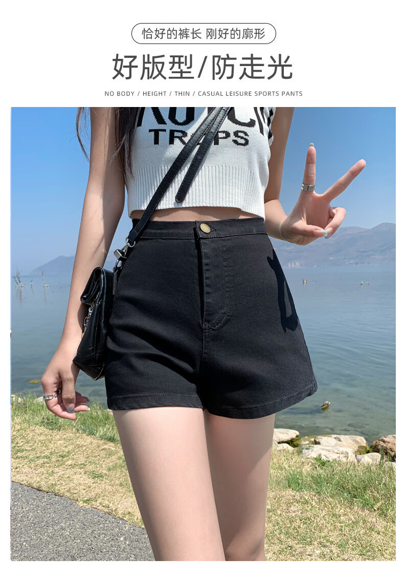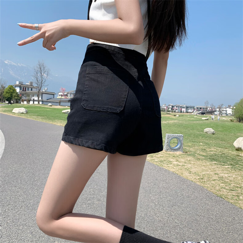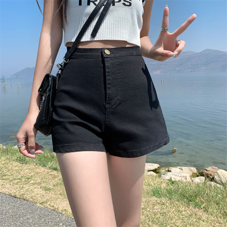 Langsha black denim shorts for women summer 2025 new high waist slim ins hot girl style outer wear elastic hot pants