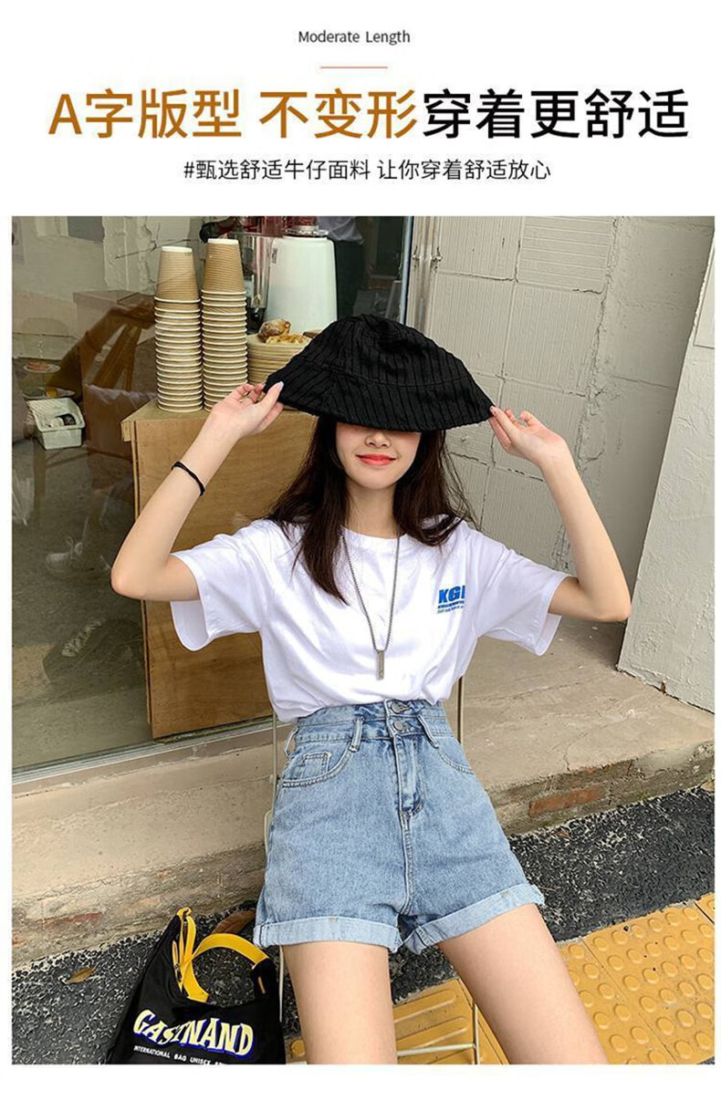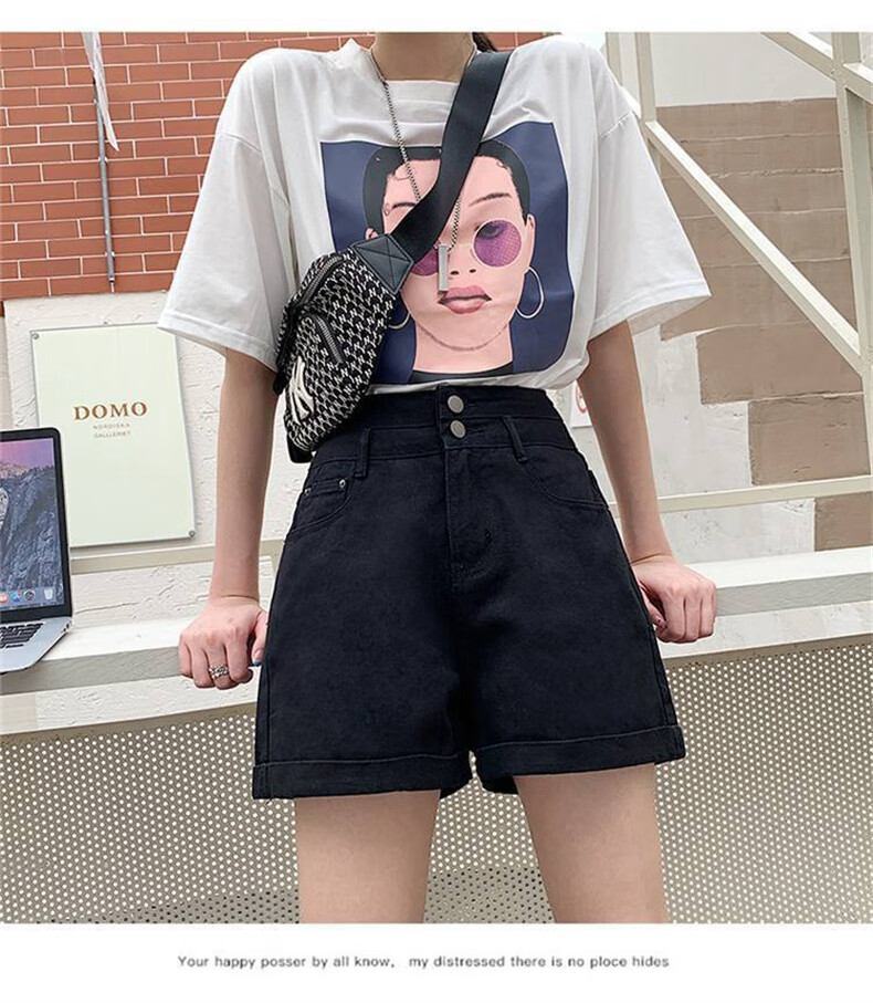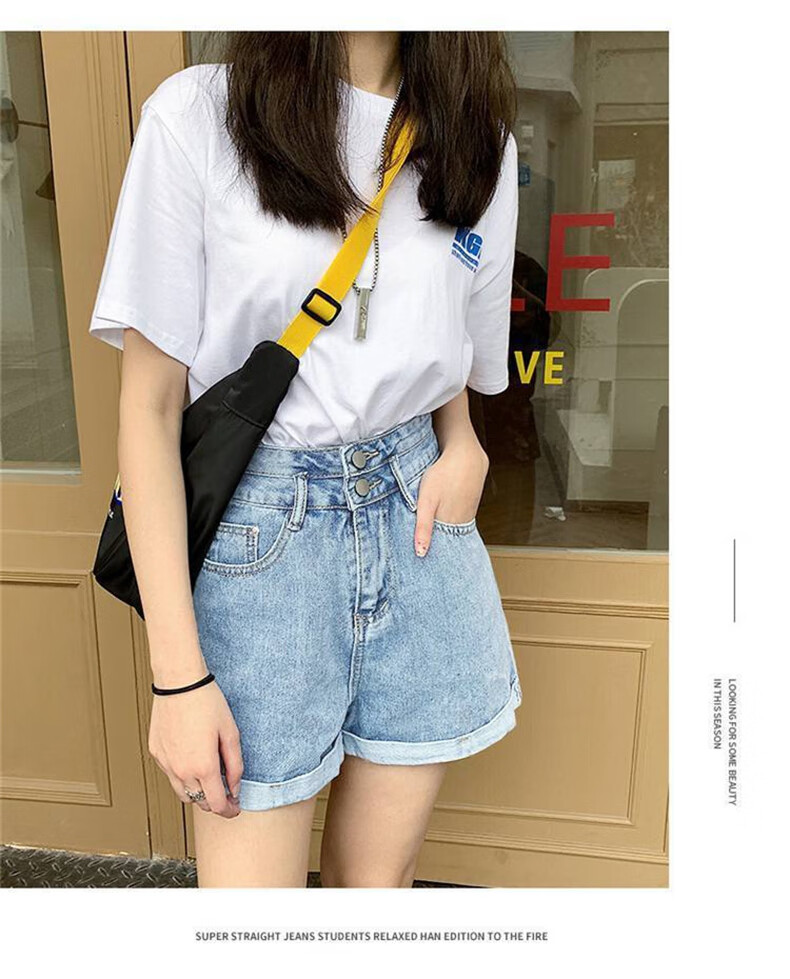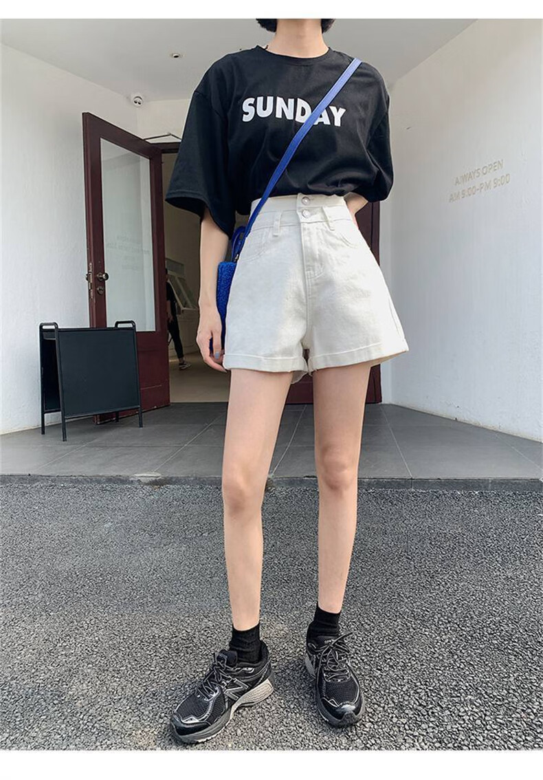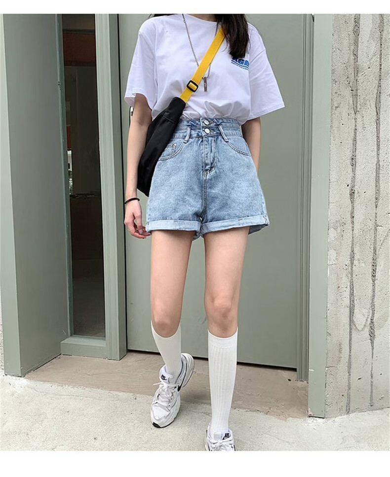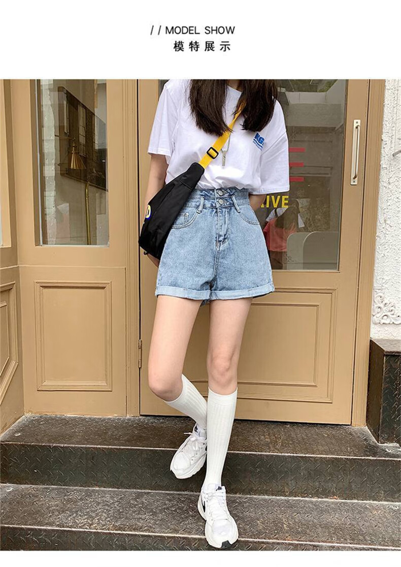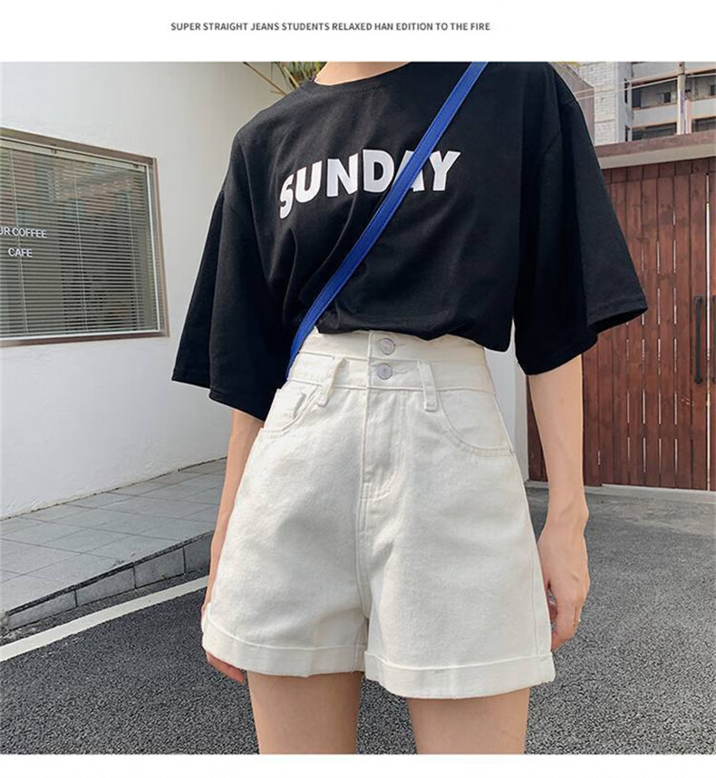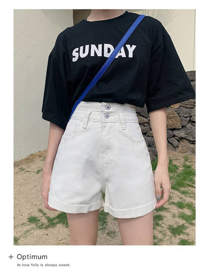 Langsha white denim shorts women's summer new high-waisted straight double-button loose wide-leg outer hot pants ins trend
