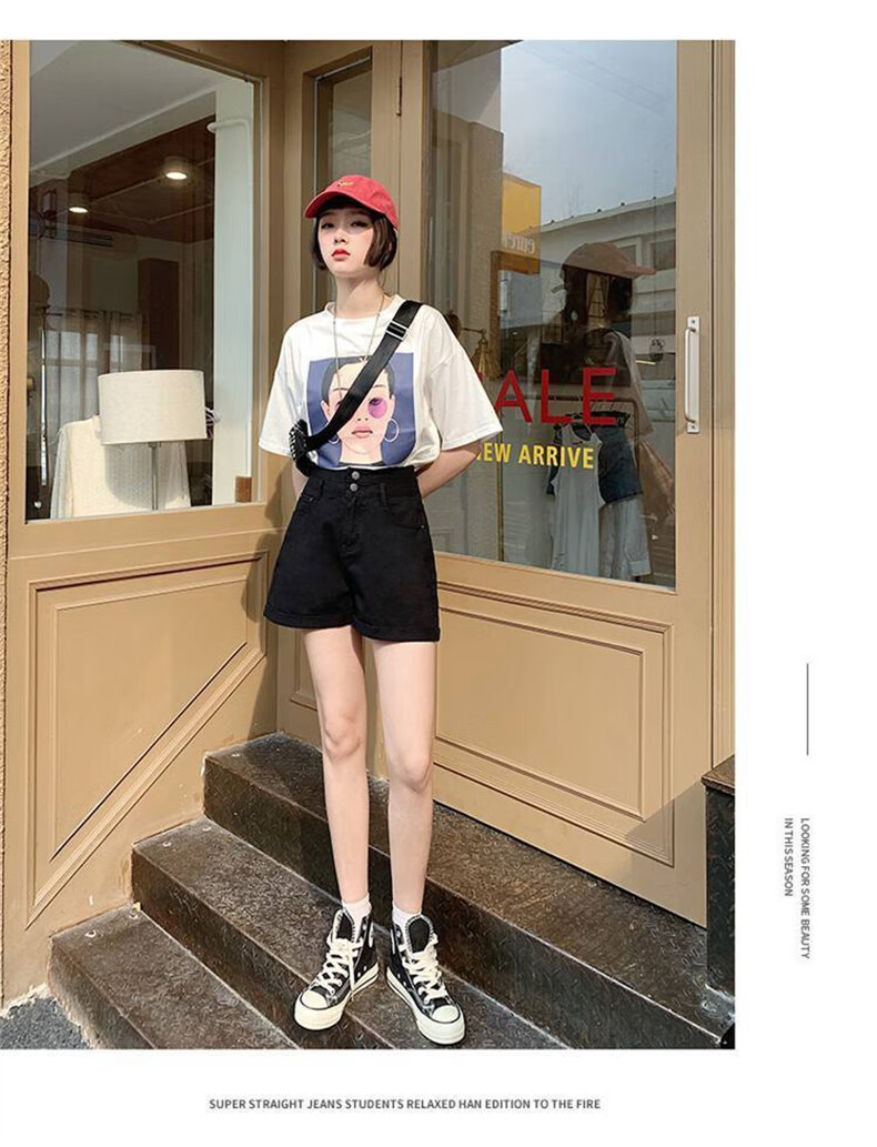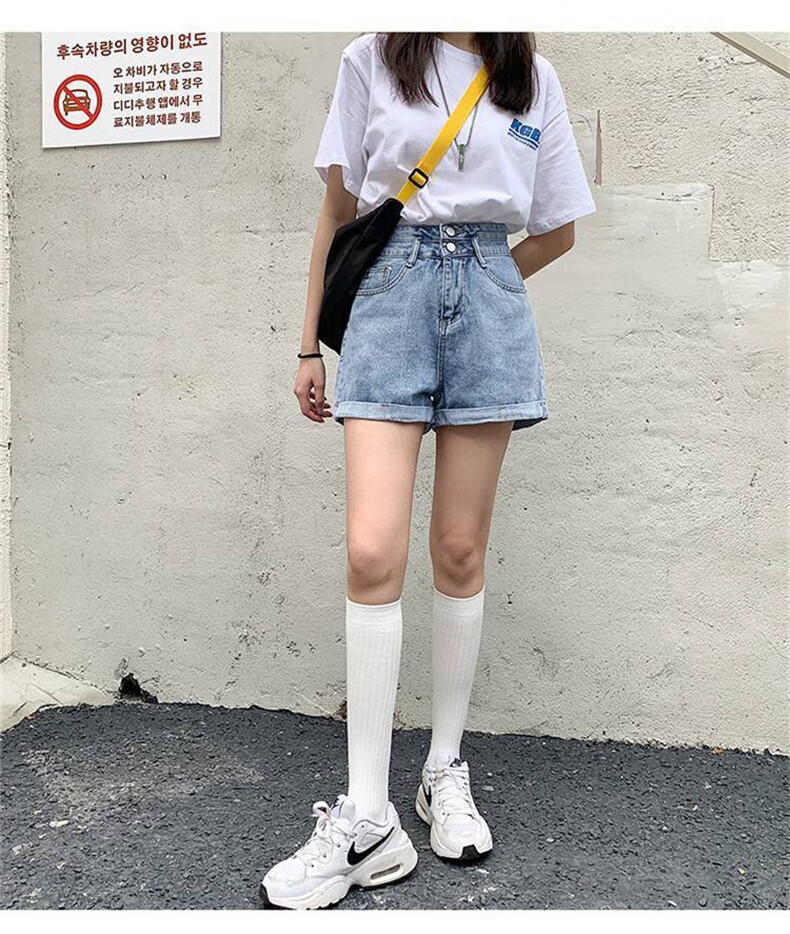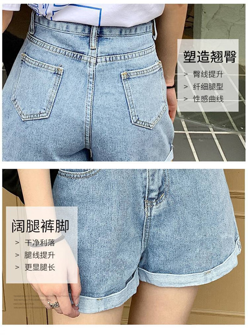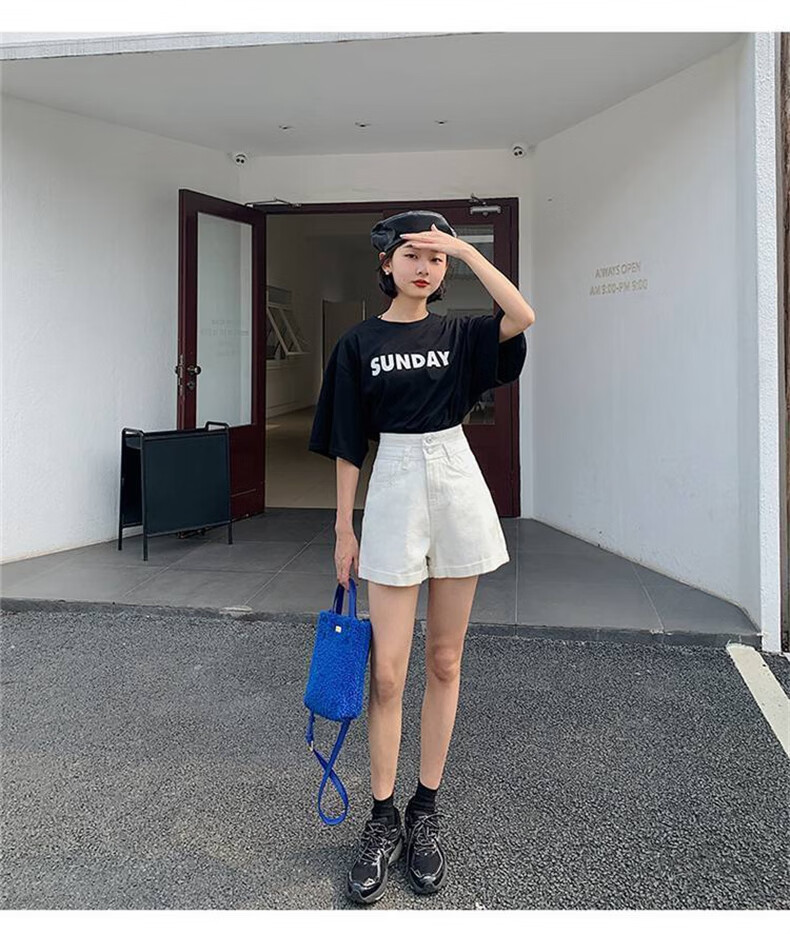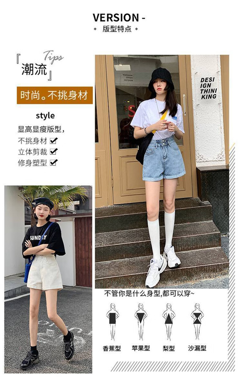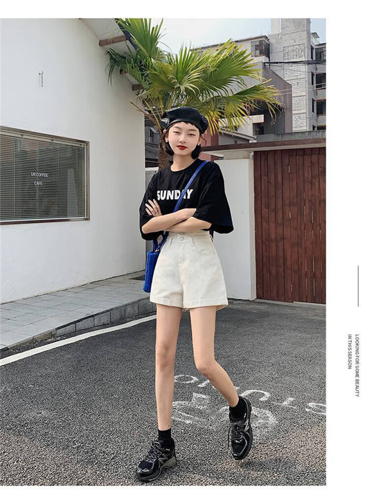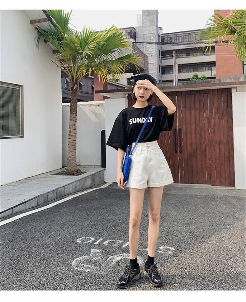 Langsha white denim shorts women's summer new high-waisted straight double-button loose wide-leg outer hot pants ins trend