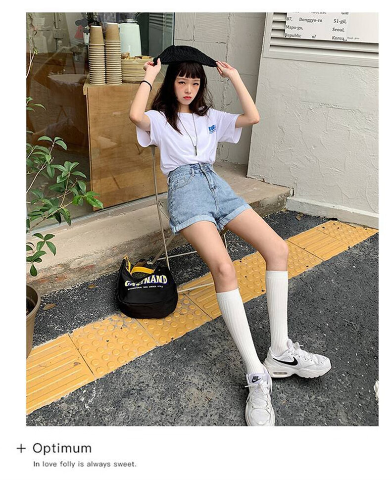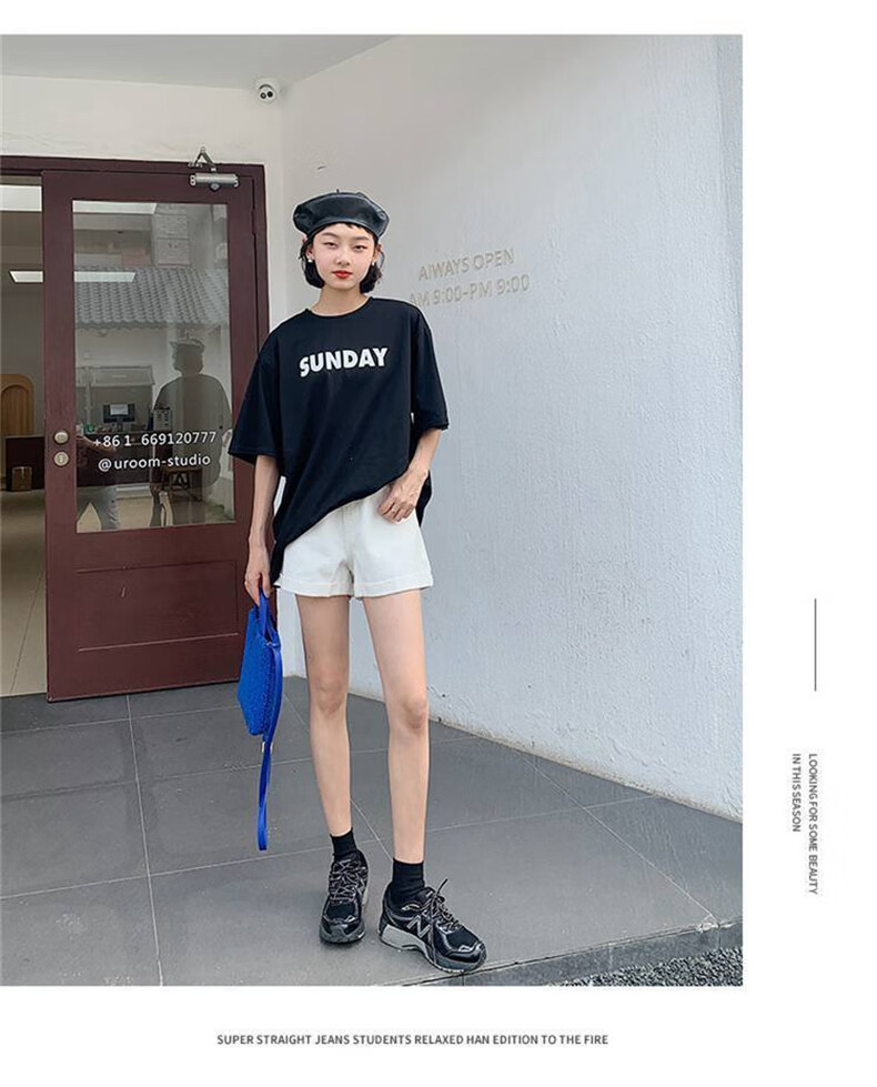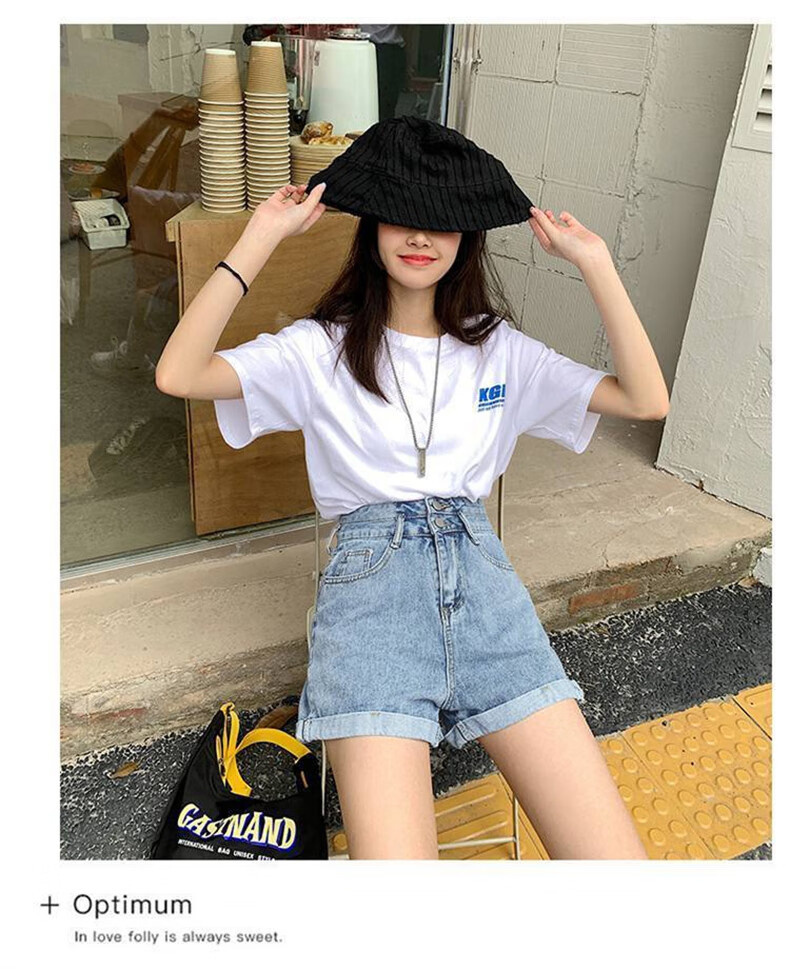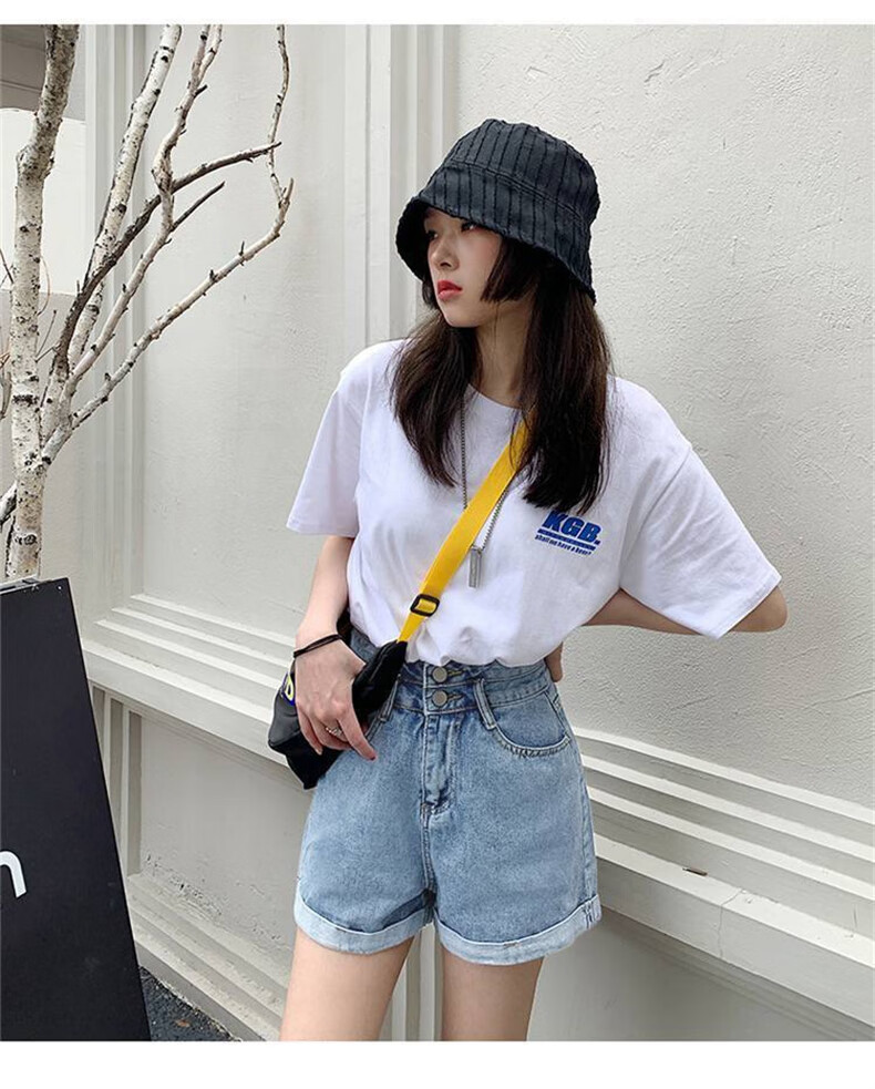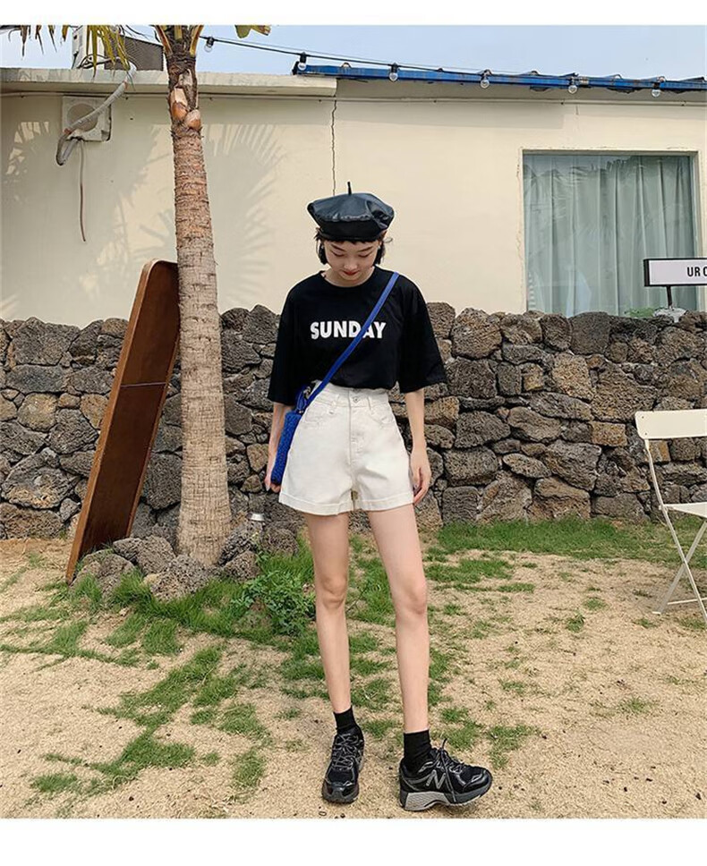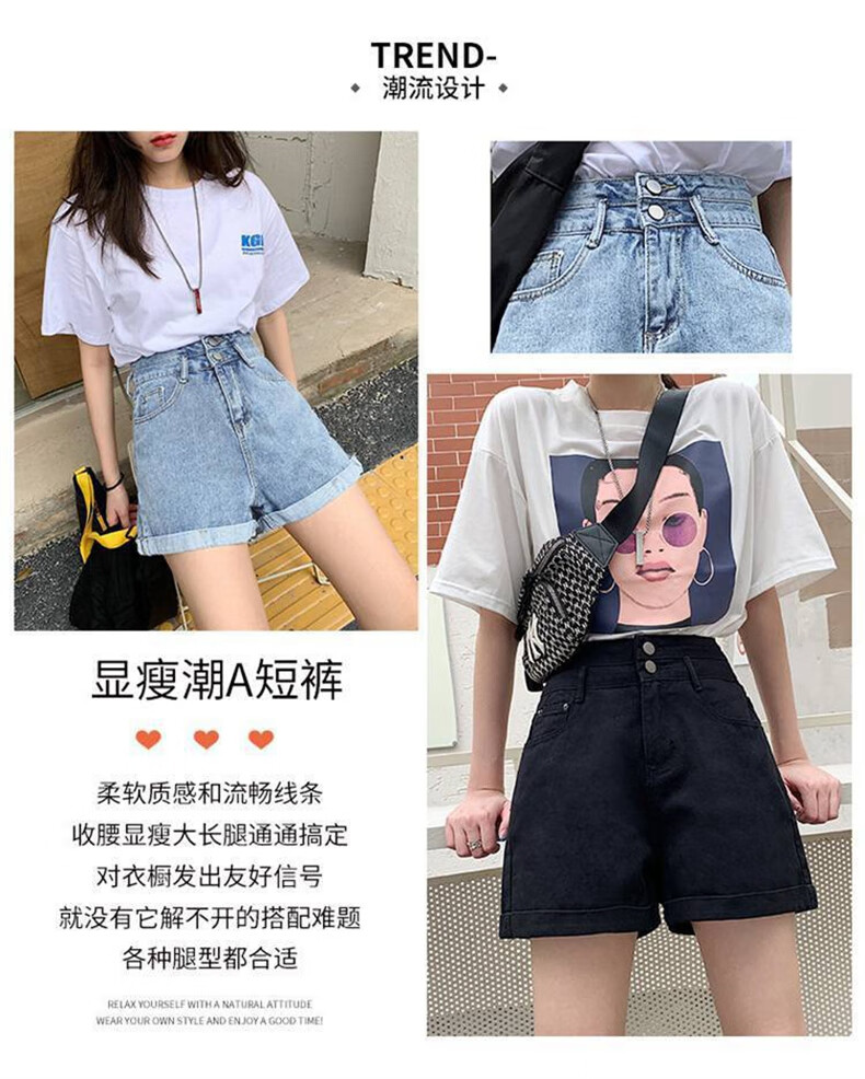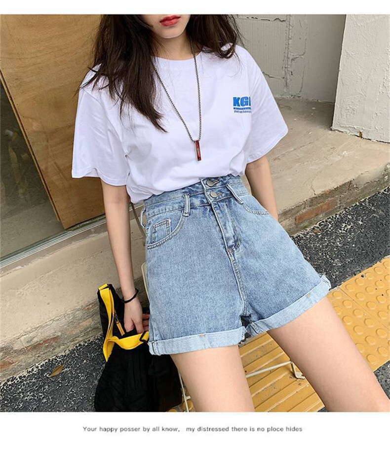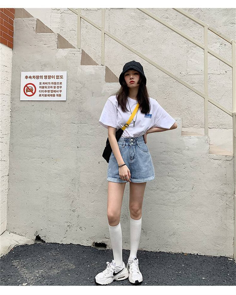 Langsha white denim shorts women's summer new high-waisted straight double-button loose wide-leg outer hot pants ins trend